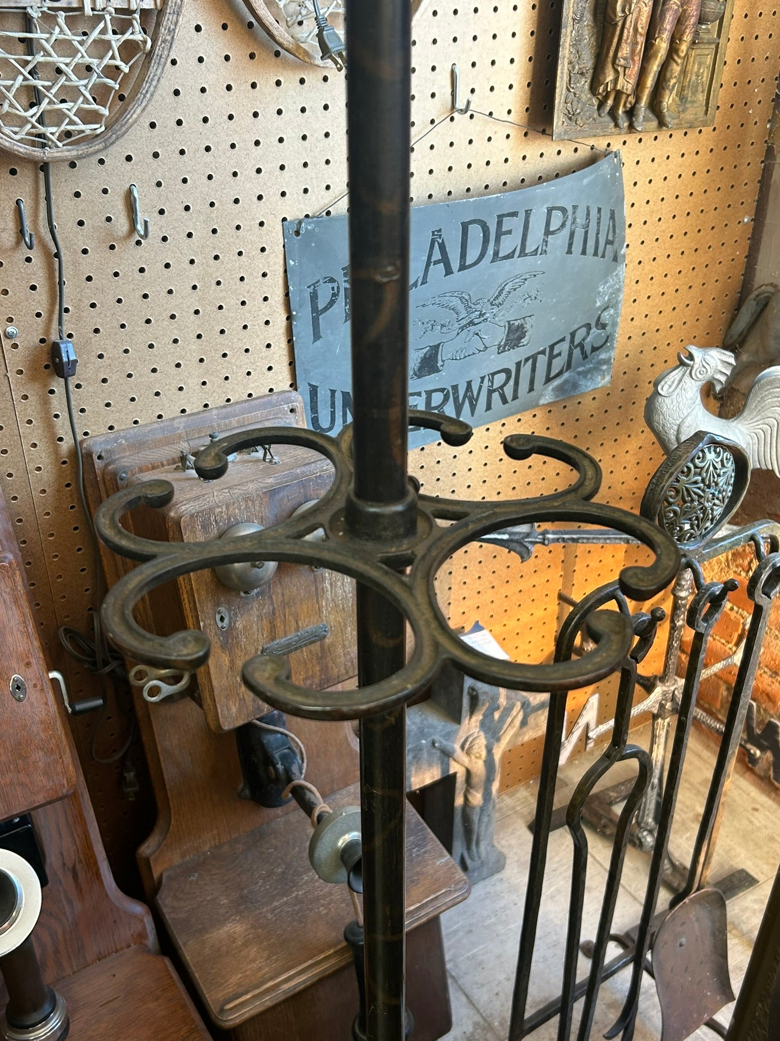 ANTIQUE CAST IRON COPPER FLASHED COAT RACK 75' TALL IN EXCELLENT SHAPE. CALL, TEXT, OR E-MAIL FOR MORE INFORMATION