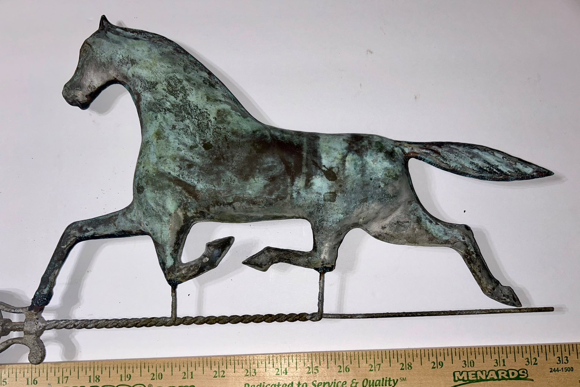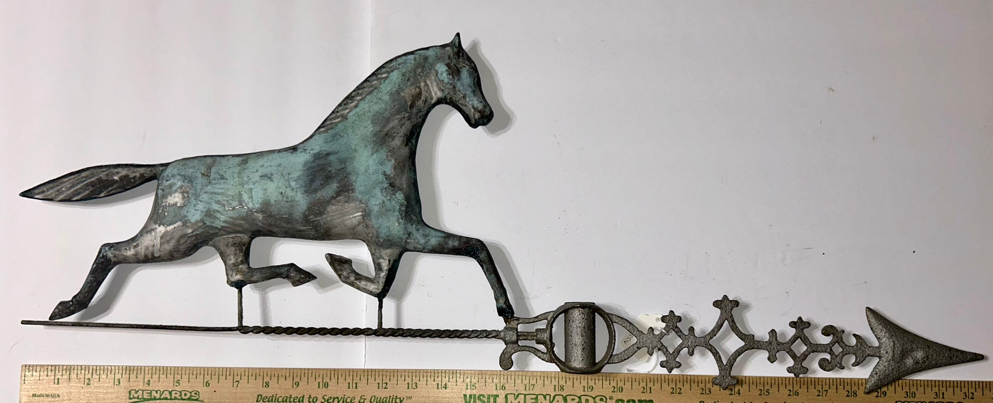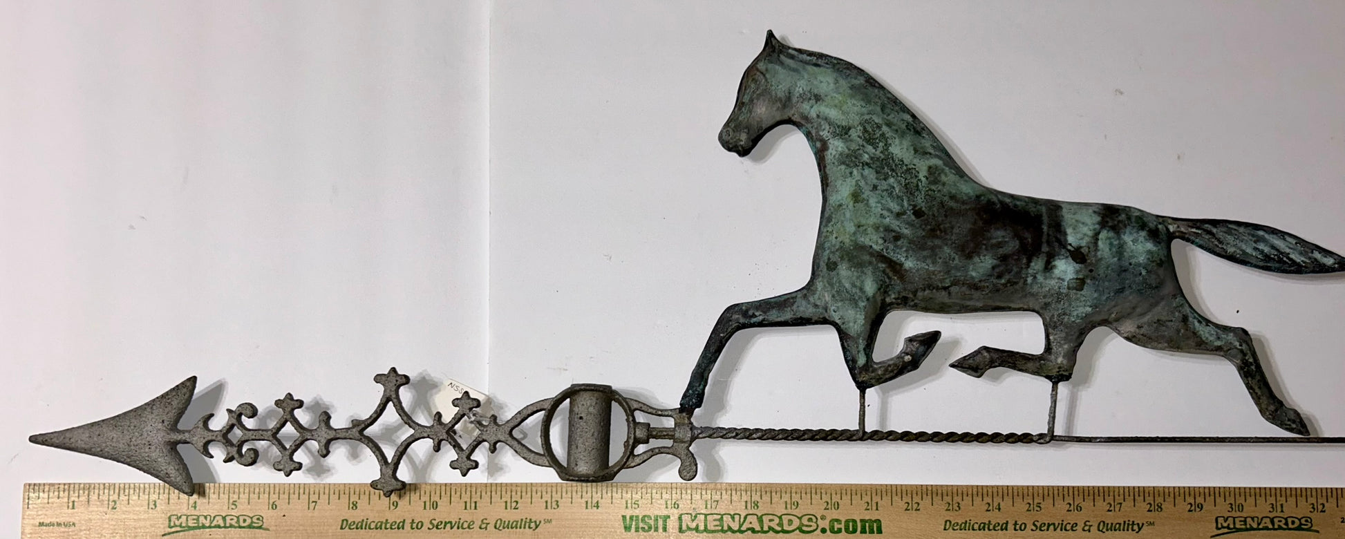 ANTIQUE COPPER RUNNING HORSE WEATHERVANE 33" LONG. CALL OR TEXT FOR MORE INFORMATION AND MENTION VANE #9