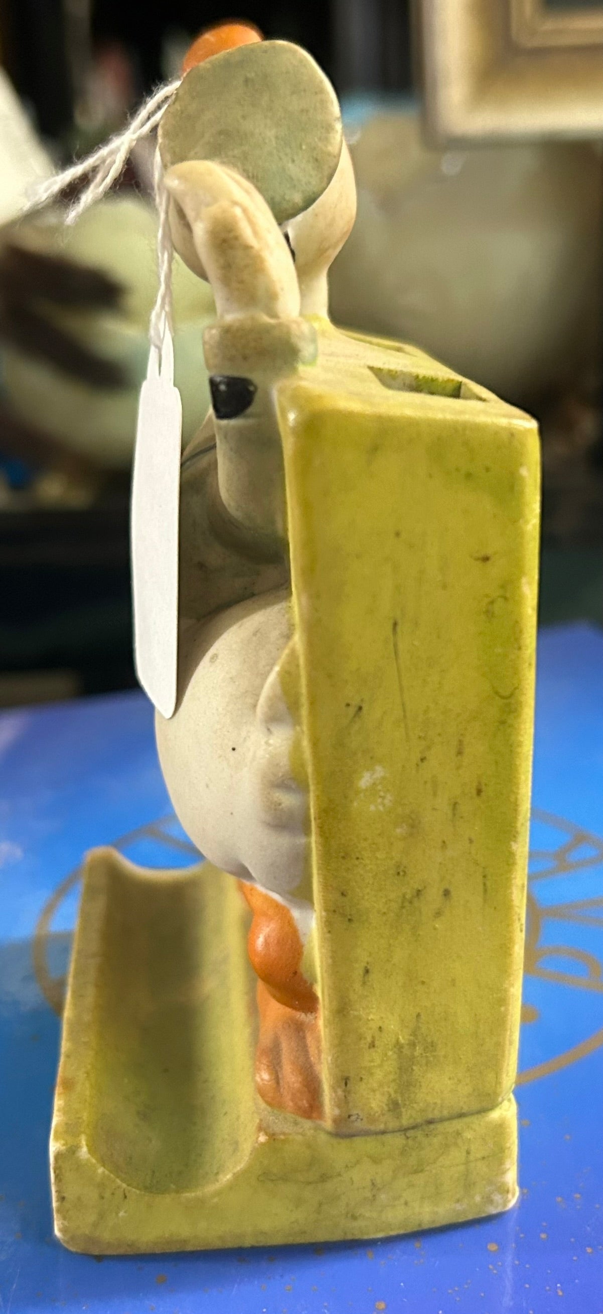 ANTIQUE DONALD DUCK BISQUE LONG BILLED TOOTH BRUSH HOLDER FROM 1930's 5" TALL. CALL OR TEXT FOR MORE INFORMATION