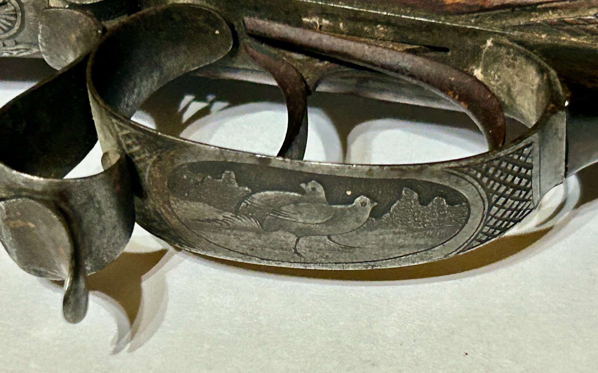 ANTIQUE DOUBLE BARREL SHOTGUN RECEIVER WITH FANCY ANIMAL ENGRAVINGS