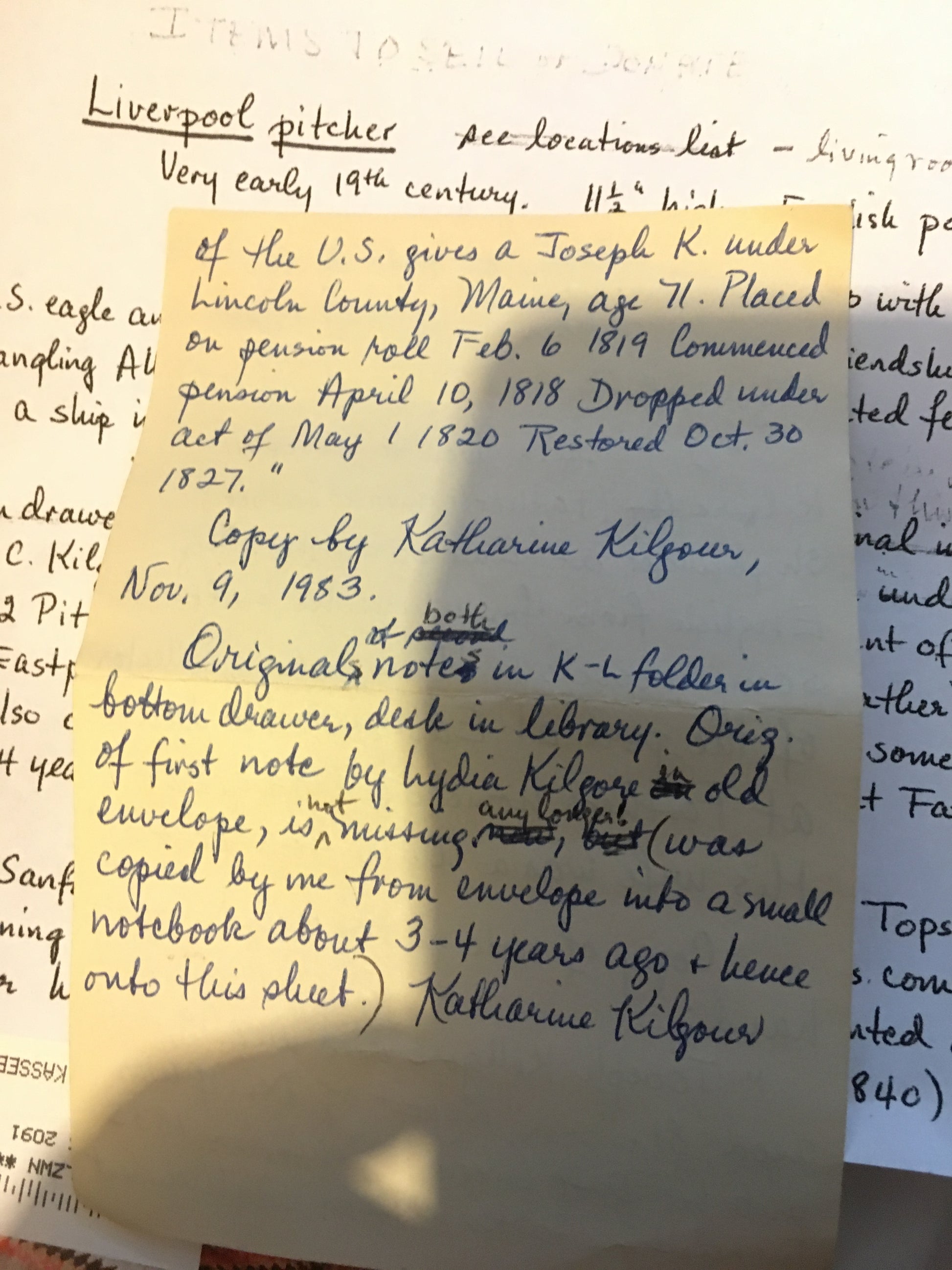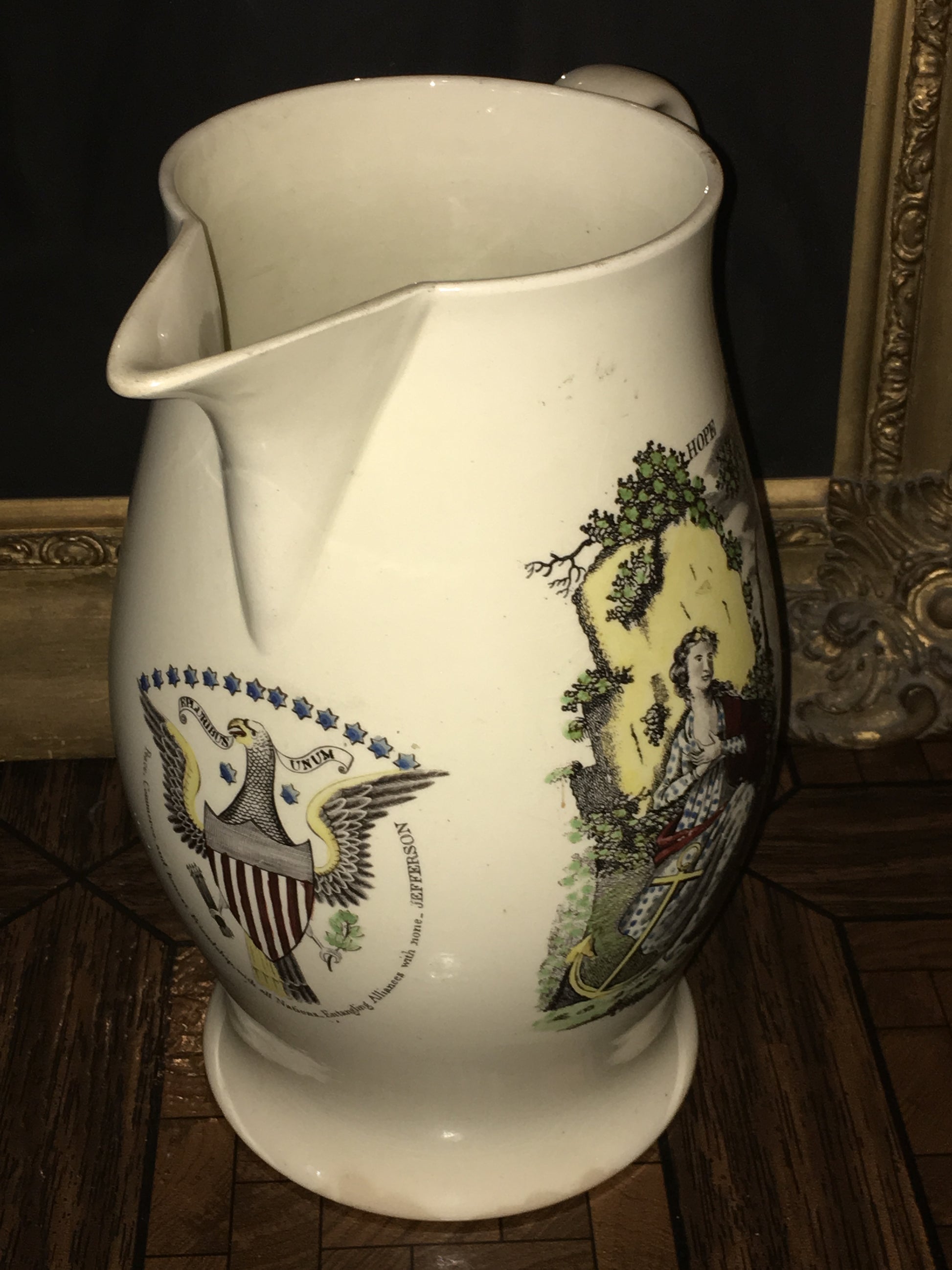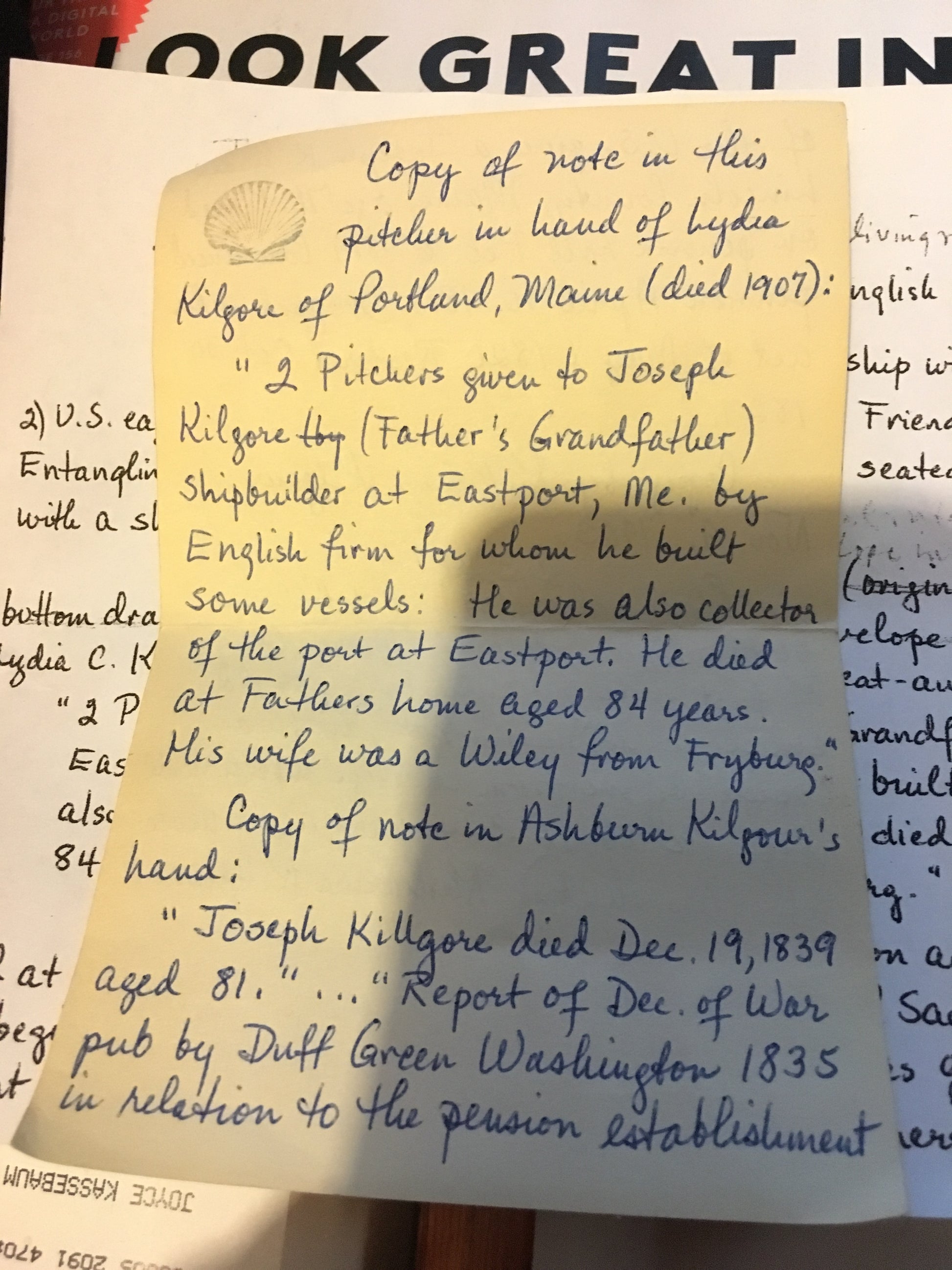 CIRCA EARLY 1800'S SHIP BUILDER PASTEL PORTRAIT SHOWING SHIP IN BACKGROUND ALONG WITH HIS LIVERPOOL PITCHER AND PILLAR AND SCROLL CLOCK AND COMPLETE WITH HIS BIOGRAPHY FROM FAMILY MEMBER. JOSEPH KILGORE WAS A SHIP BUILDER AT EASTPORT MAINE WHO DIED IN 1839. WONDERFUL GROUP! CALL, TEXT, OR E-MAIL FOR MORE INFORMATION!