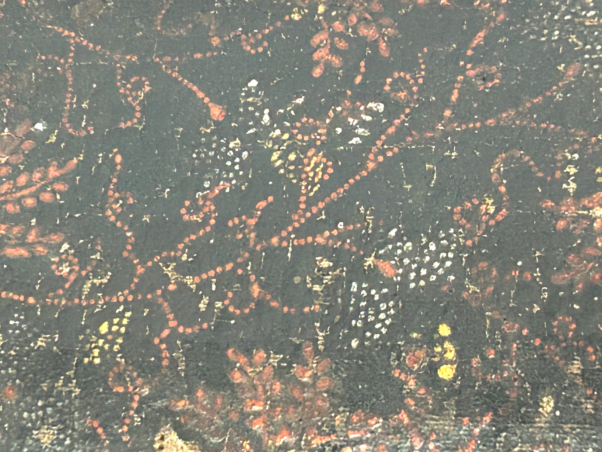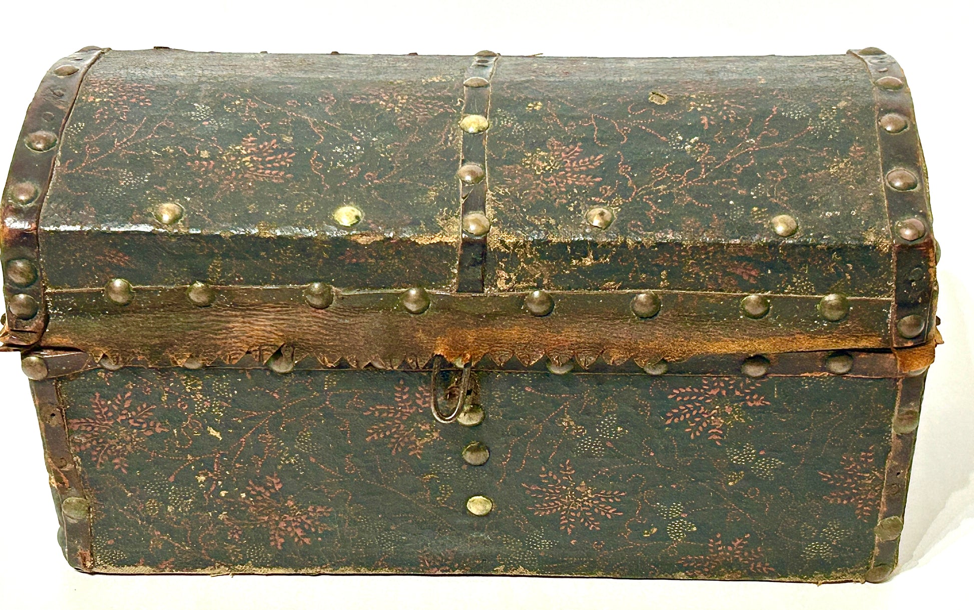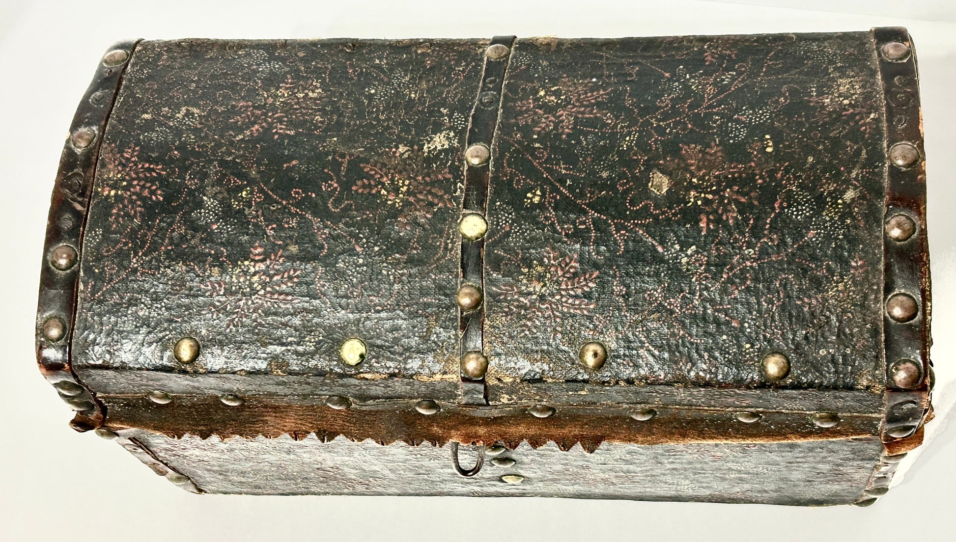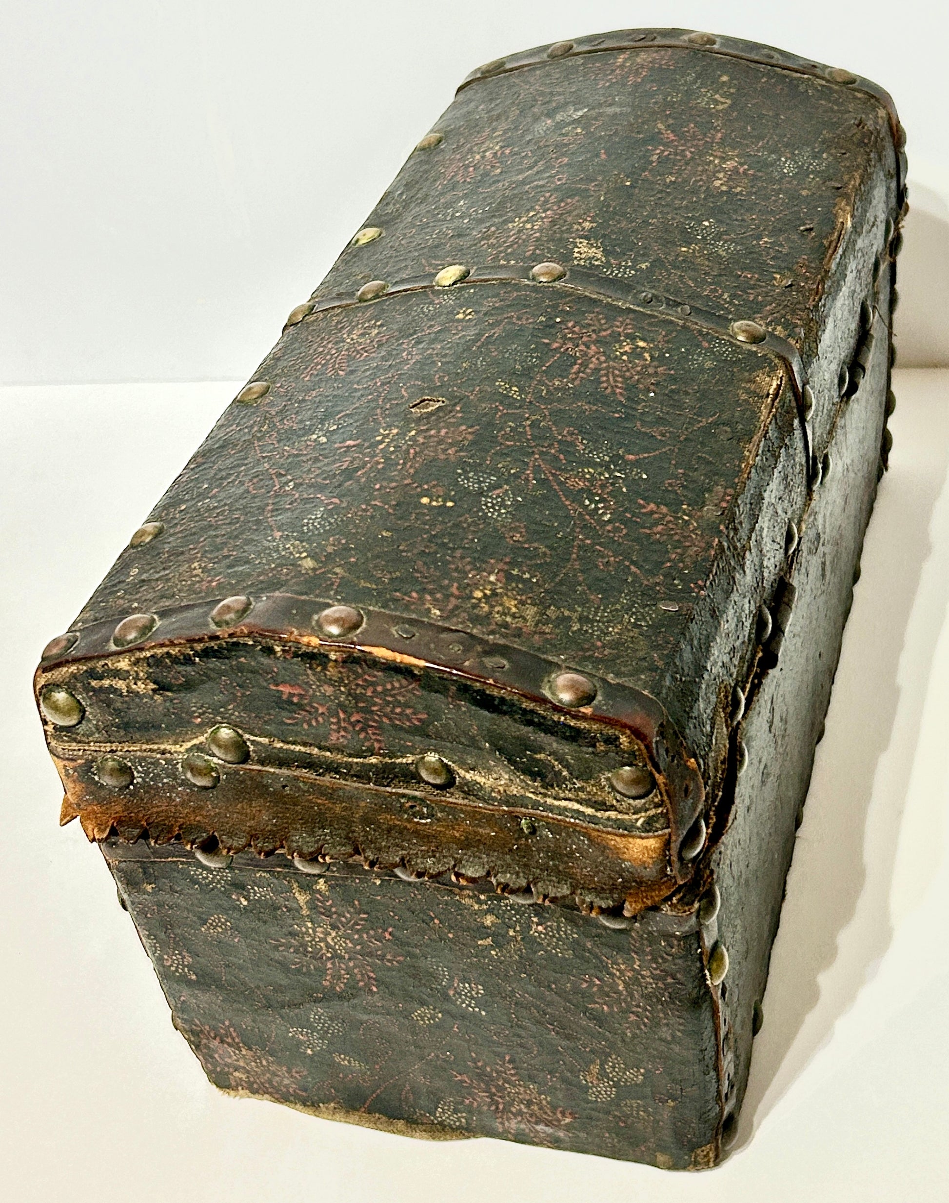 ANTIQUE EARLY LEATHER FLORAL PAINTED TRUNK