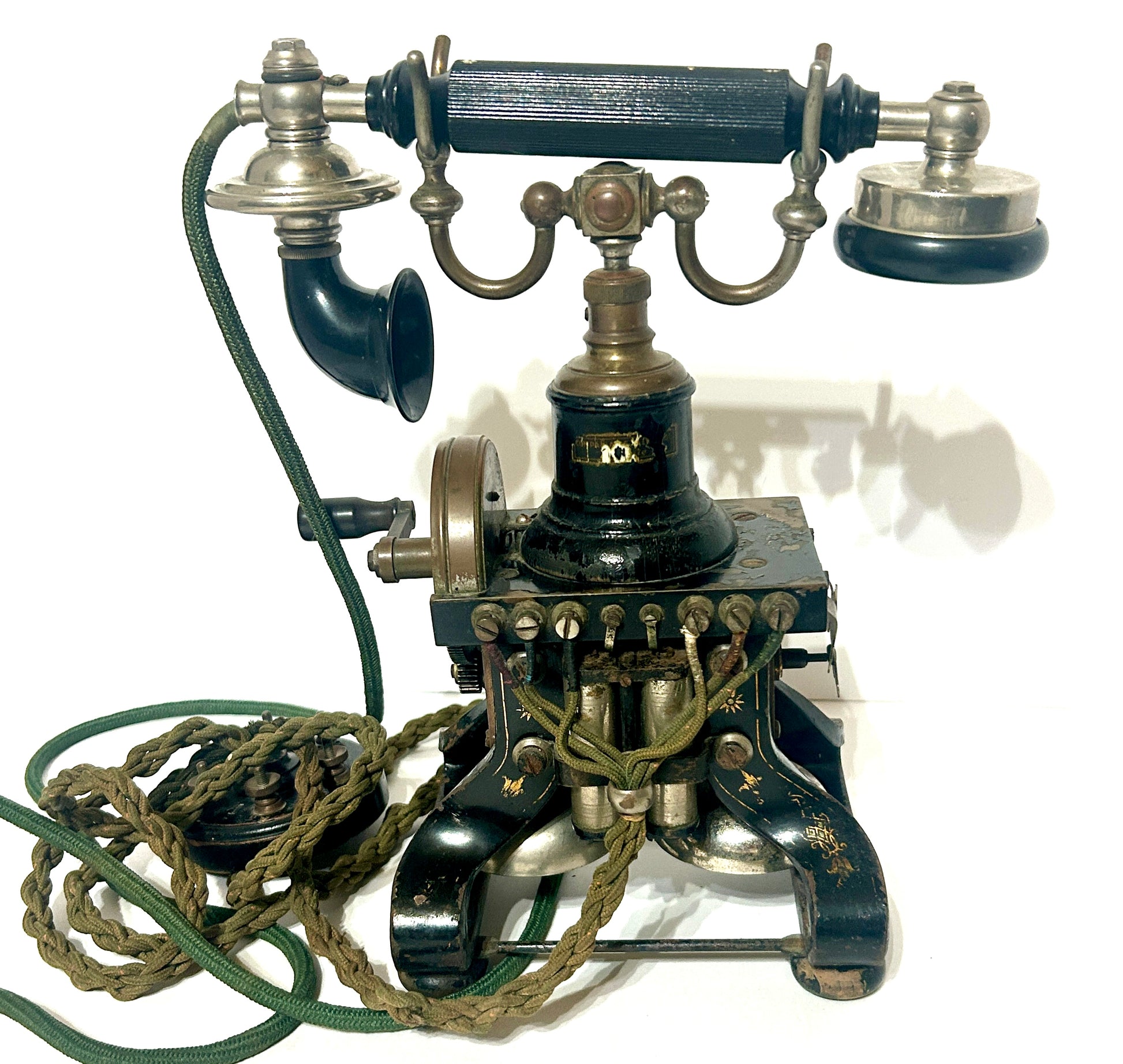ANTIQUE EIFFEL TOWER TELEPHONE ALL ORIGINAL WITH CORDS 12" TALL X 6 1/2" WIDE. SHIPPING IS EXTRA SO CALL OR TEXT TO FIND OUT HOW MUCH SHIPPING WILL COST