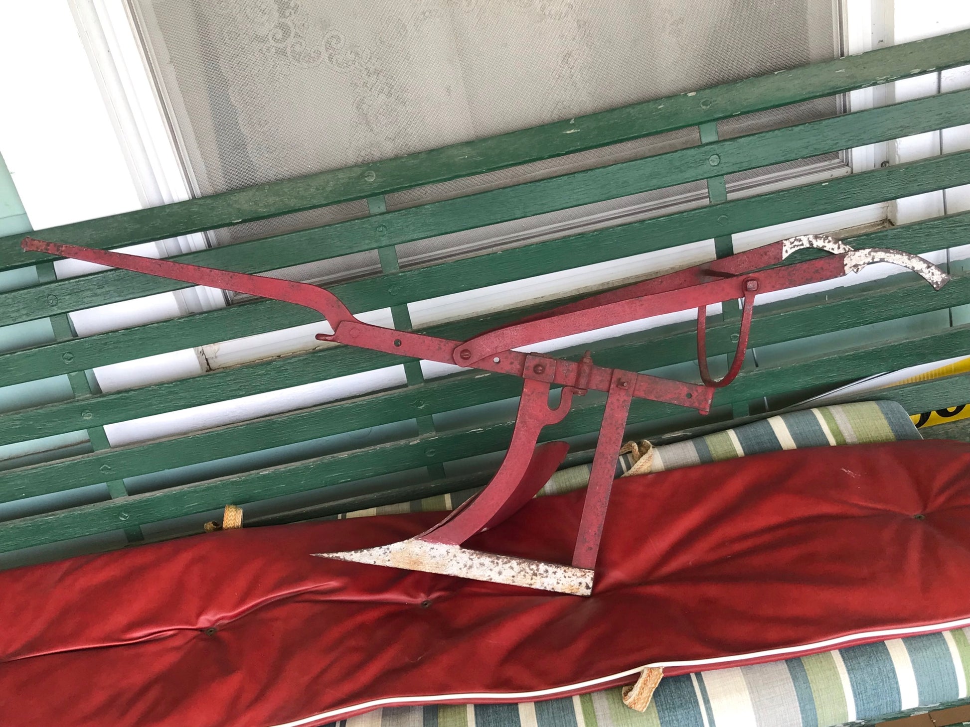 ANTIQUE IRON FIGURAL PLOW SIGN 36" X 17" TALL. CALL, TEXT, OR E-MAIL FOR MORE INFORMATION