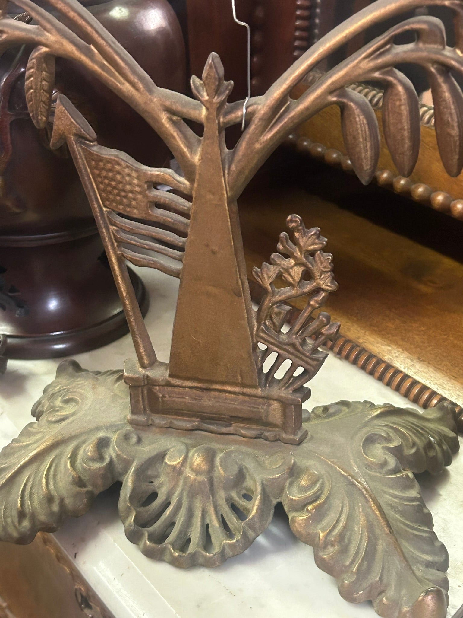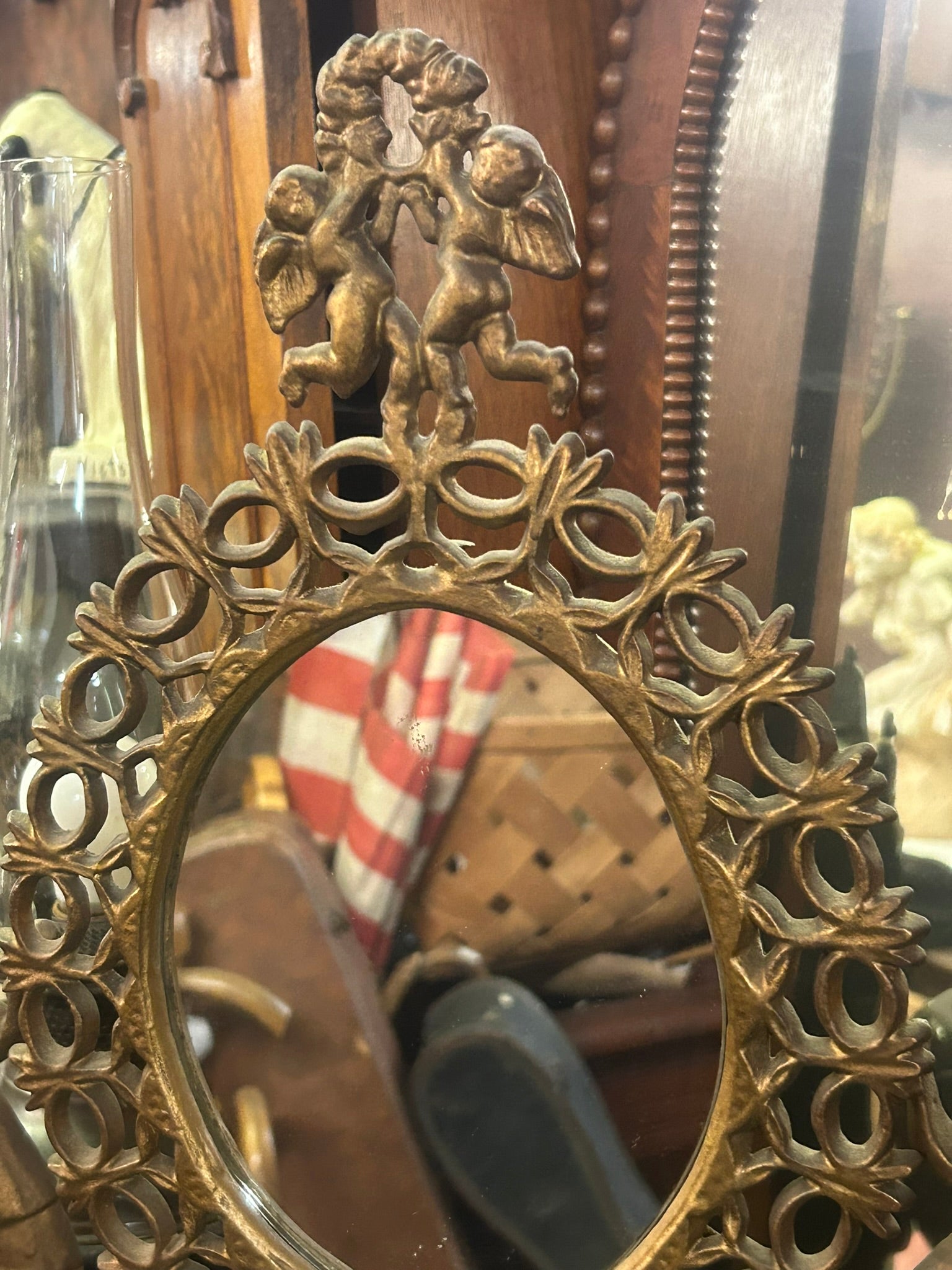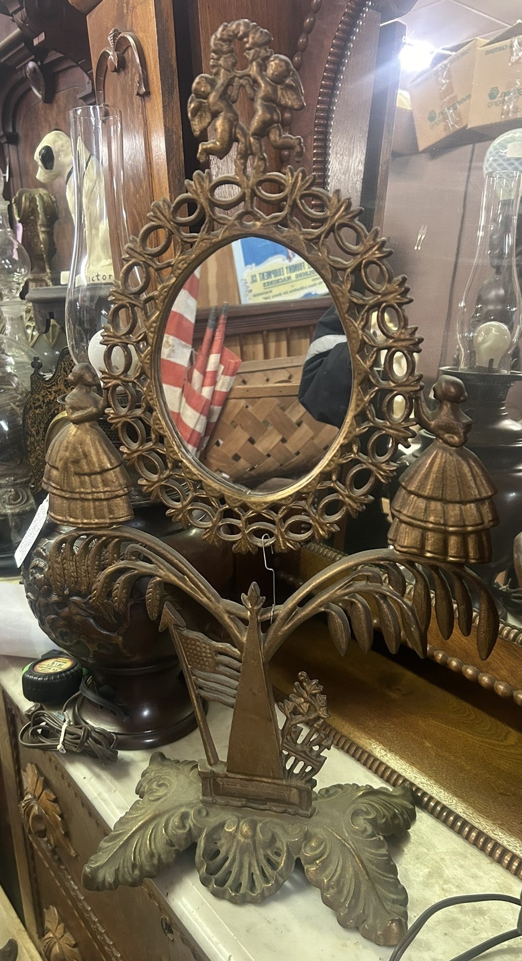 ANTIQUE FIGURAL JENNY LIND PATRIOTIC IRON TABLE TOP MIRROR