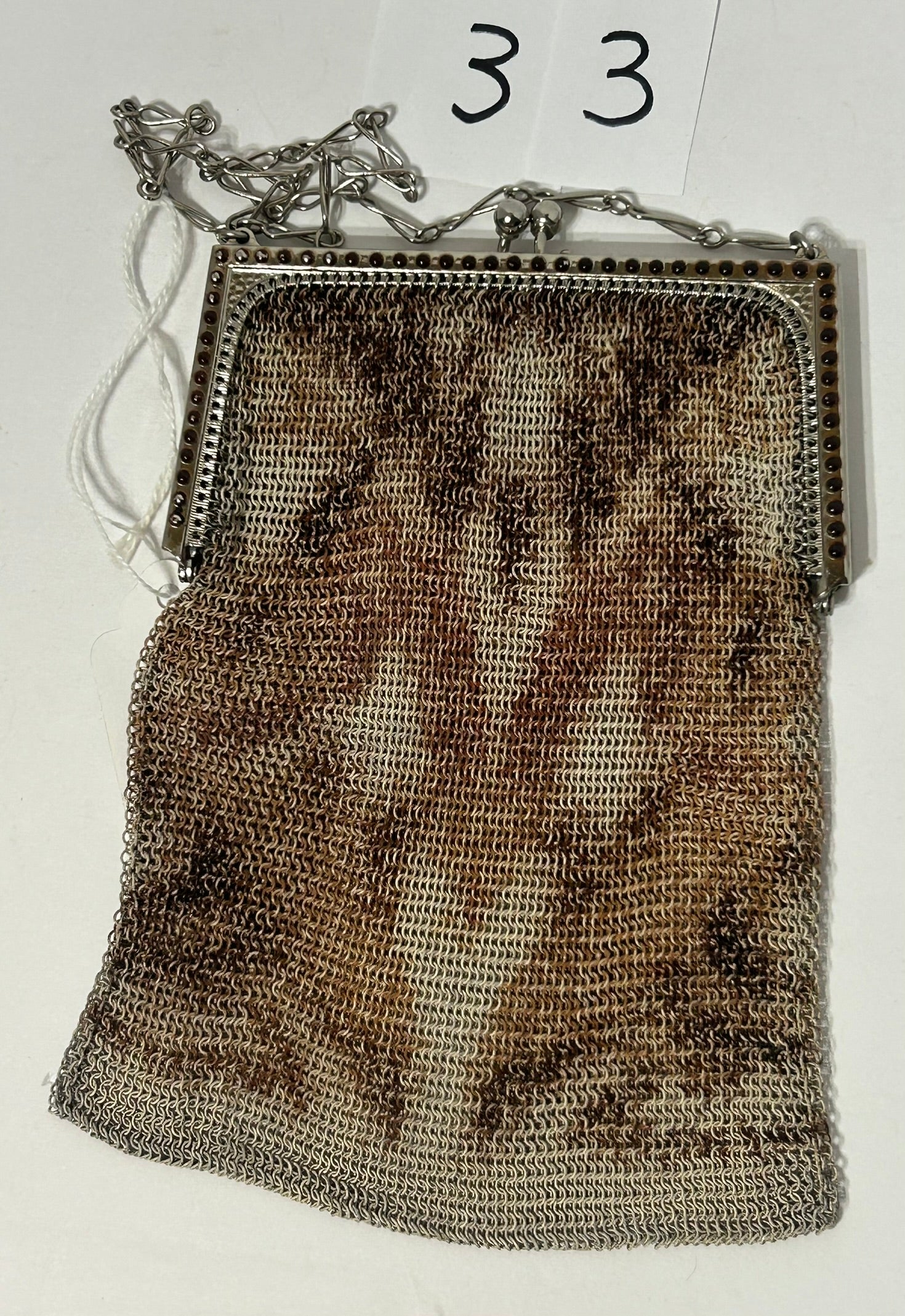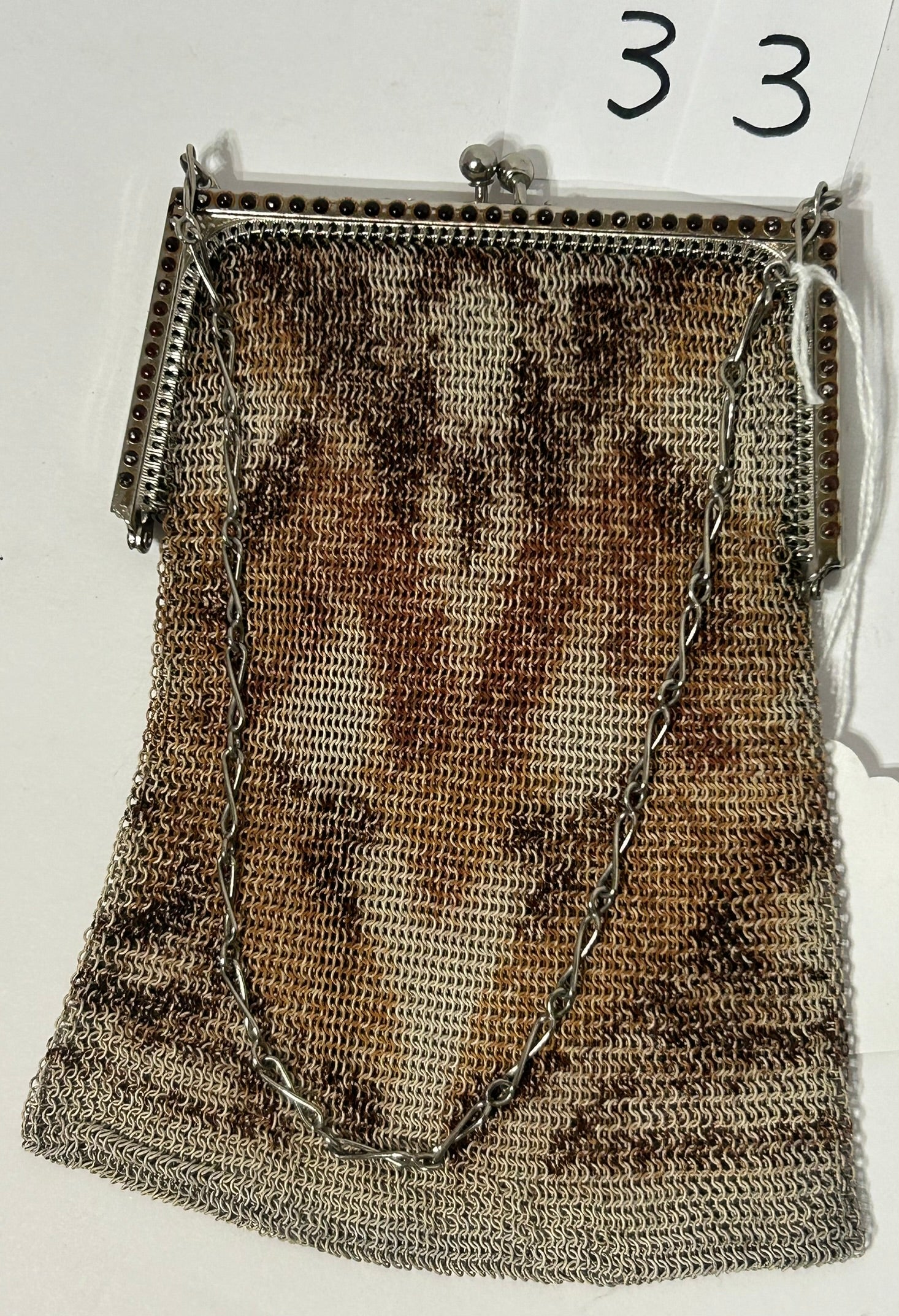 ANTIQUE BROWN DECORATED FINE MESH PURSE 6" LONG. CALL OR TEXT FOR MORE INFORMATION