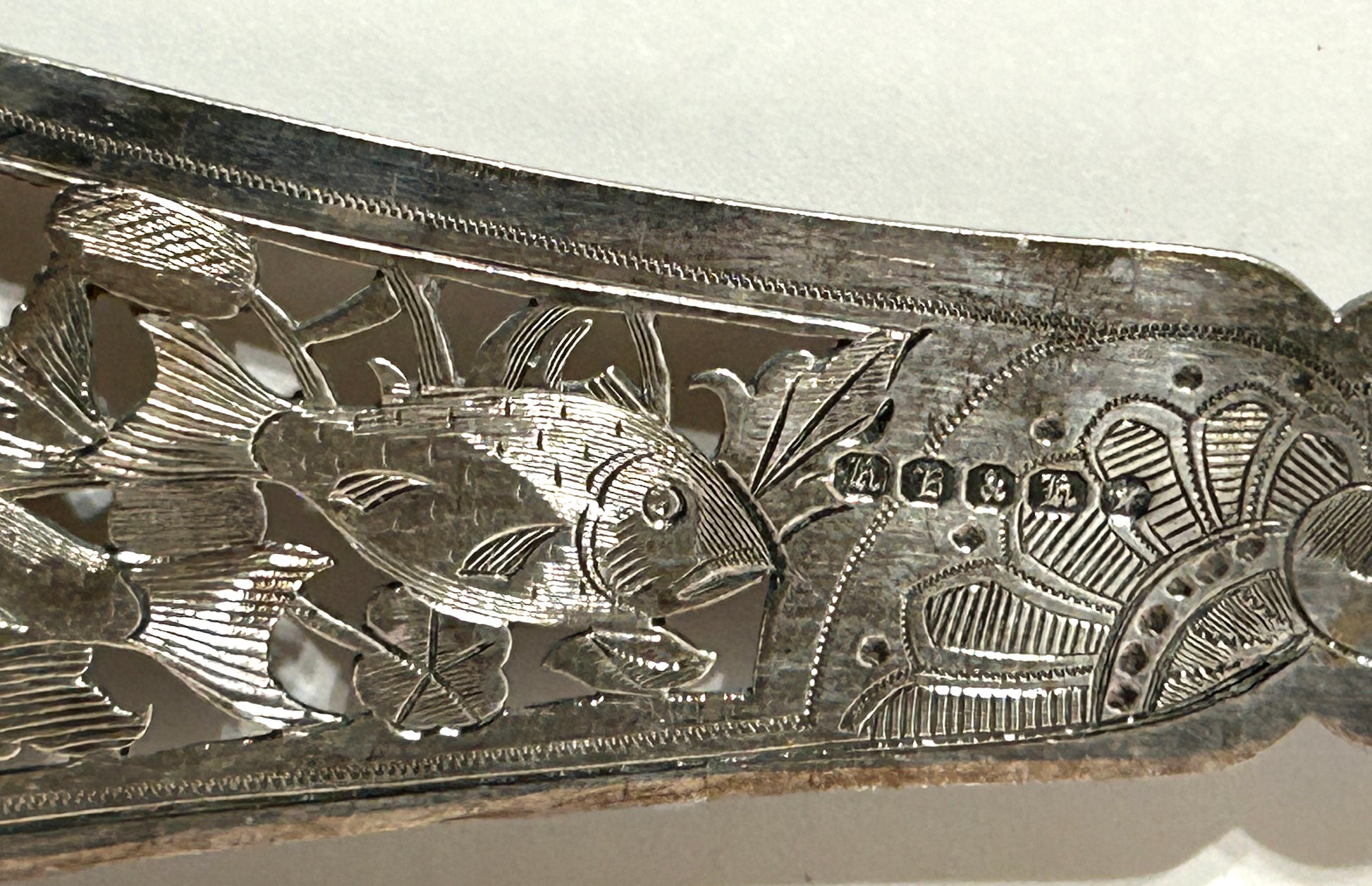 ANTIQUE FISH SERVER AND FORK WITH STERLING AND ANTLER HANDLES AND VERY FANCY CUT OUT BLADE DESIGN ON SERVER, SERVER IS 13 1/2" LONG. SHIPPING IS EXTRA SO CALL OR TEXT TO FIND OUT HOW MUCH SHIPPING WILL COST