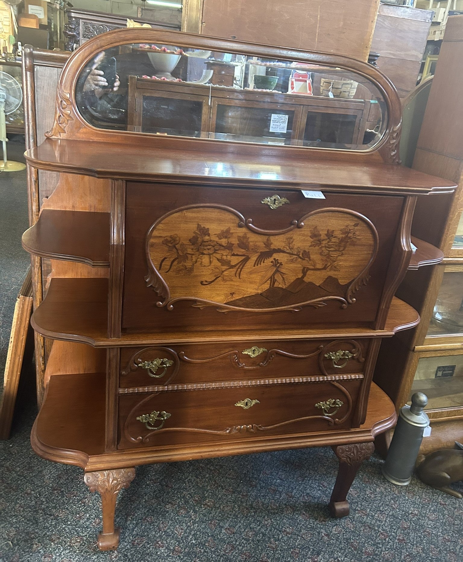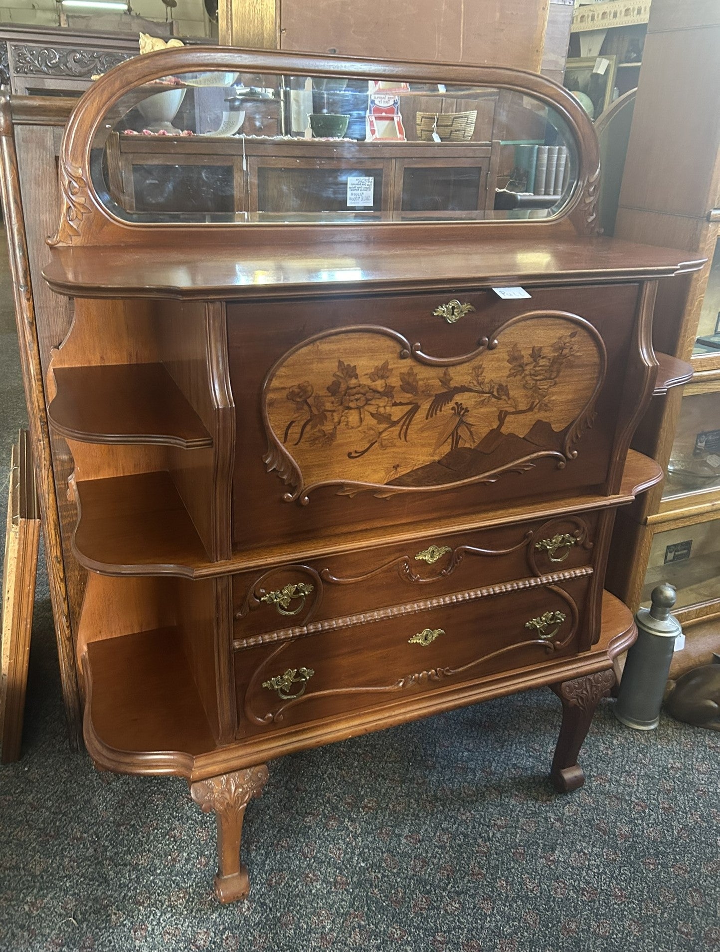ANTIQUE FRENCH INLAID DROP FRONT DESK