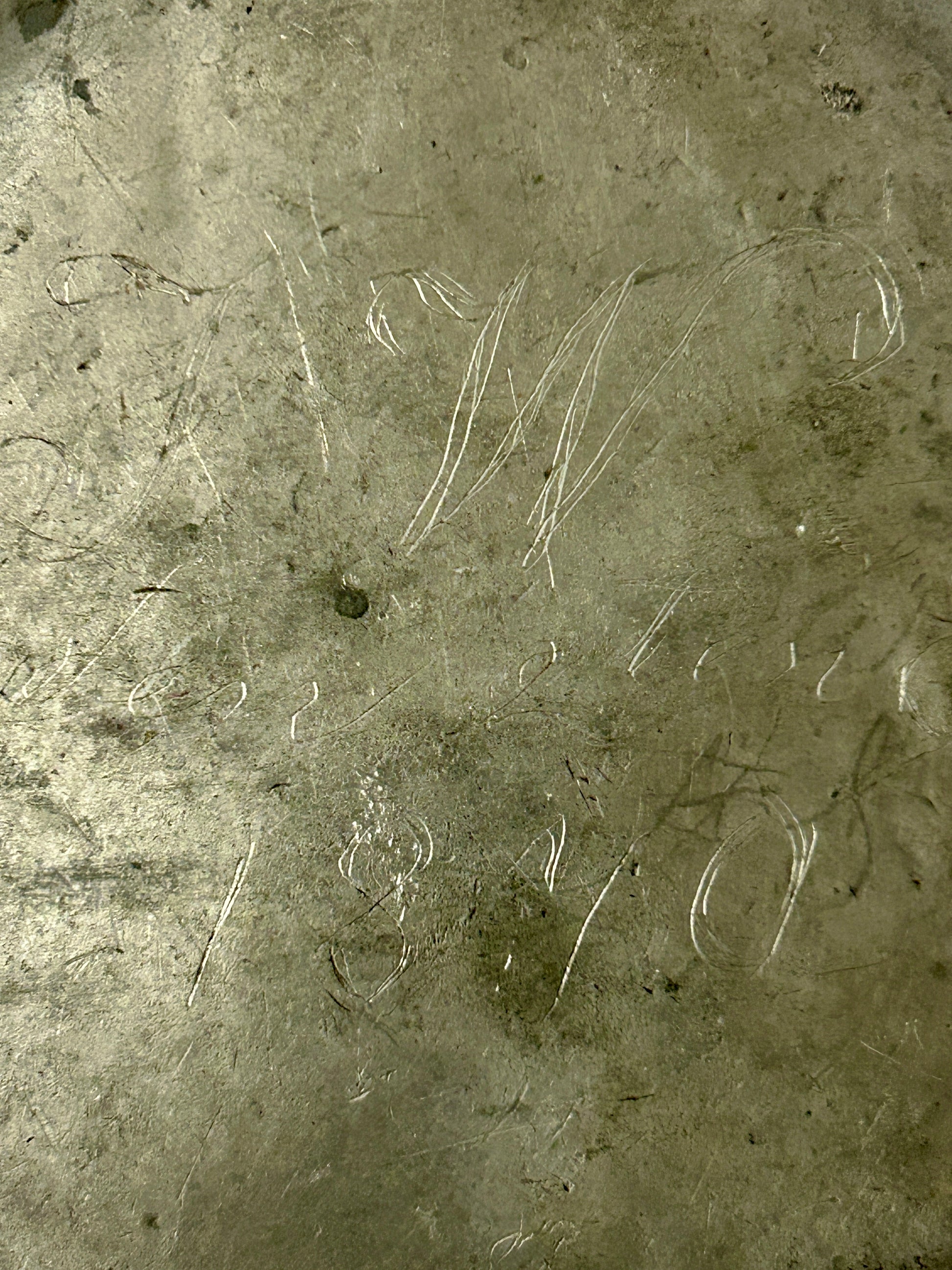 ANTIQUE FRENCH TIN MILITARY CANTEEN DATED 1870 WITH SOLDIER ID ON IT, 8 1/4" X 6 1/2" X 3" DEEP. CALL OR TEXT FOR MORE INFORMATION