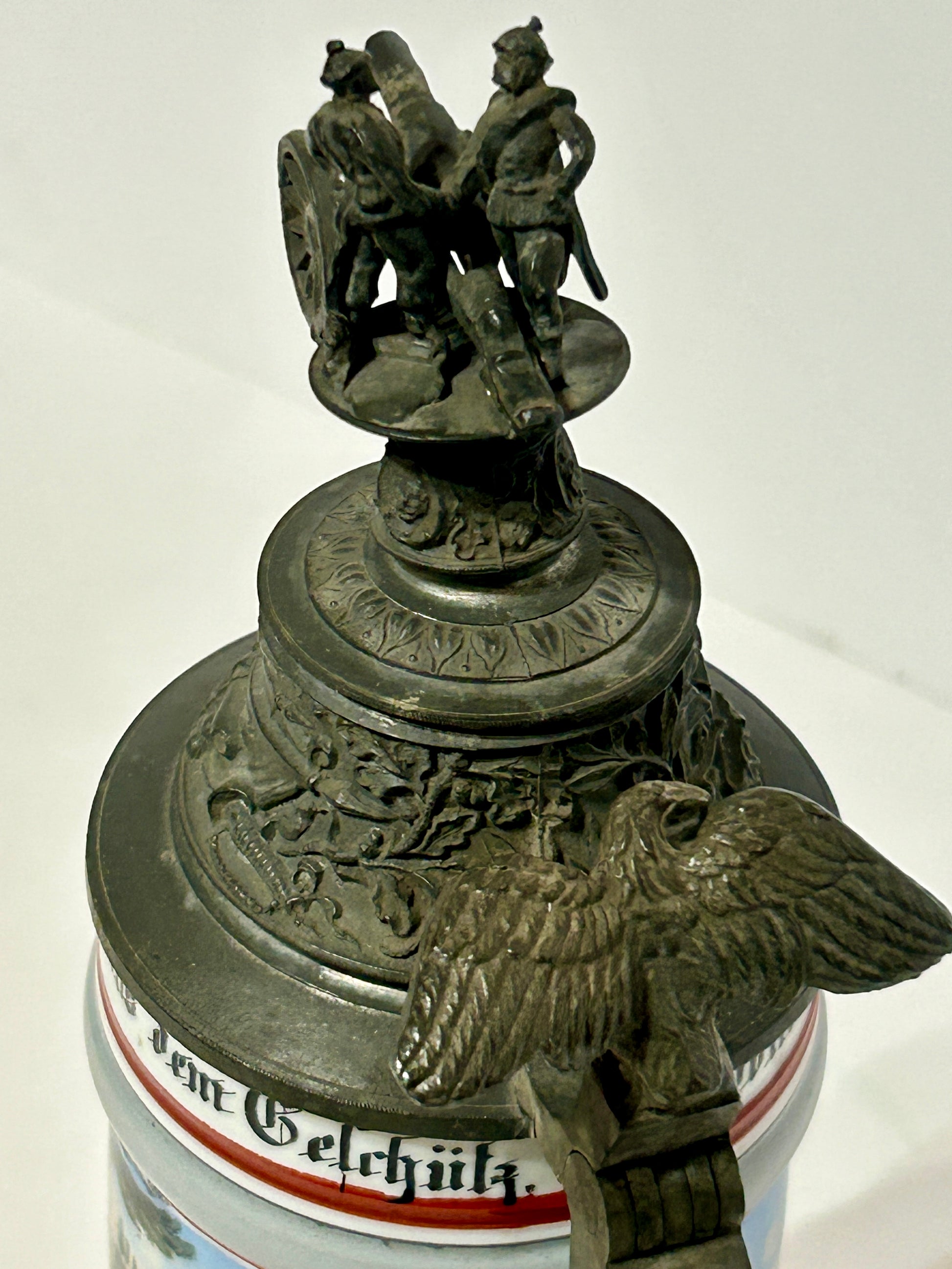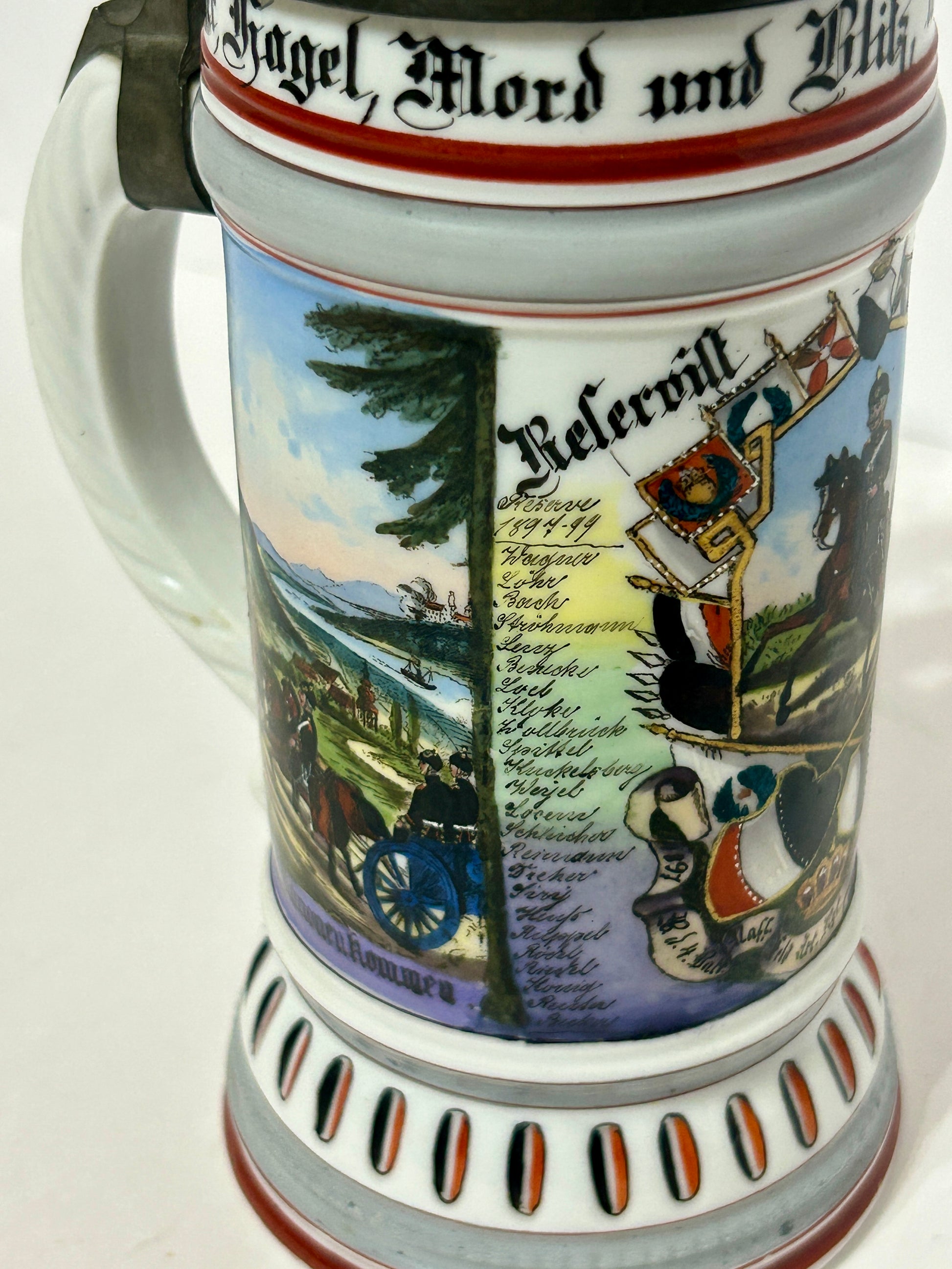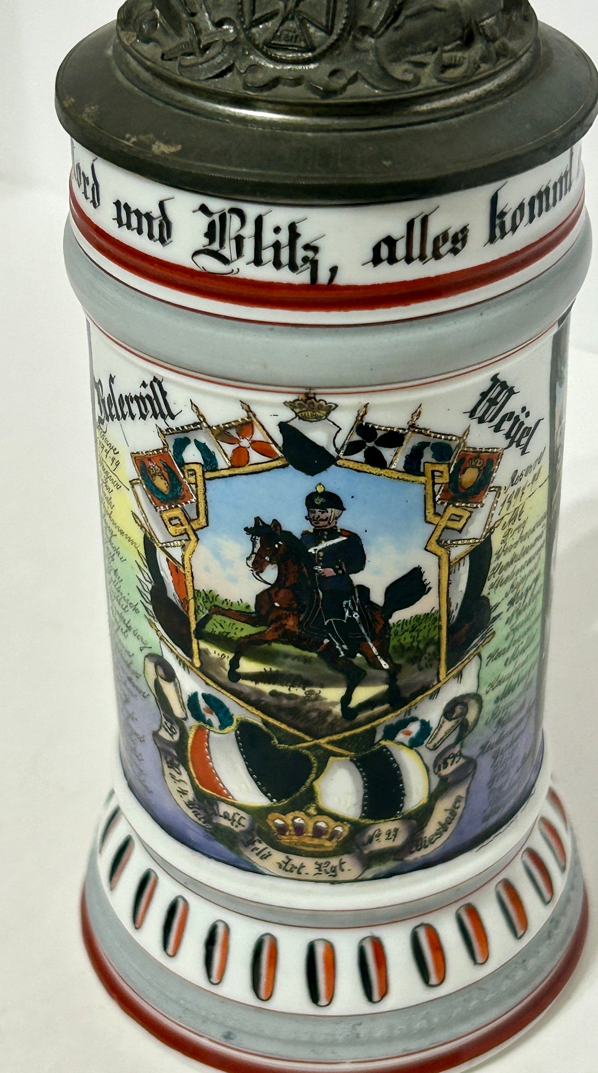 ANTIQUE GERMAN REGIMENTAL BEER STEIN WITH LITHOPANE BOTTOM