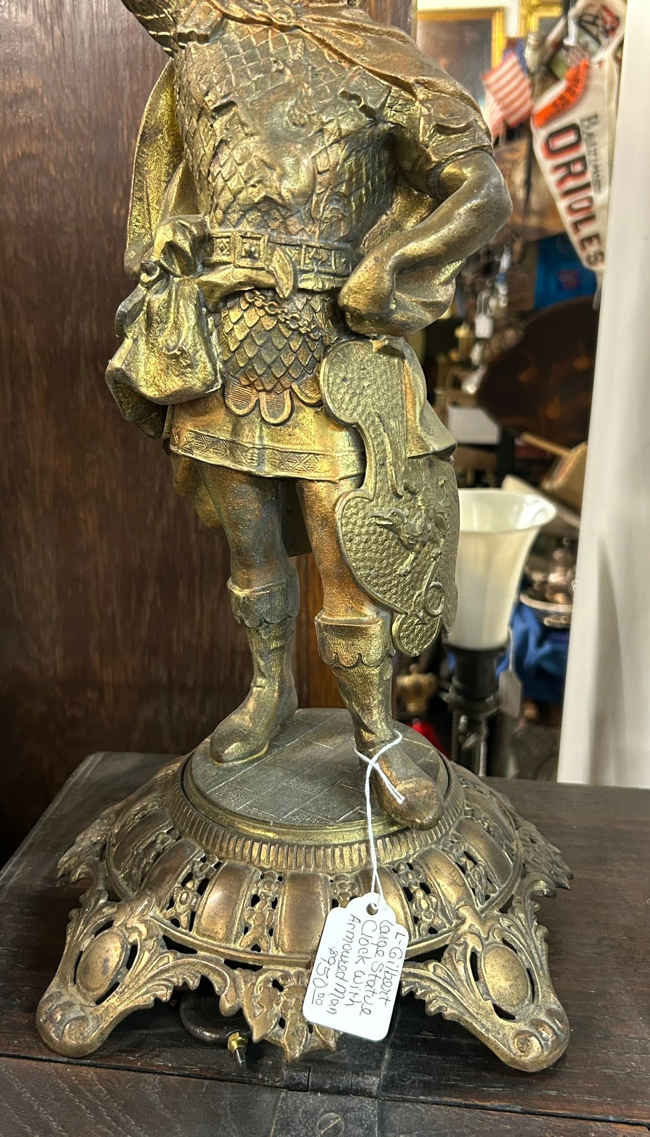 ANTIQUE GILBERT CLOCK CO. STATUE CLOCK OF MAN IN ARMOUR
