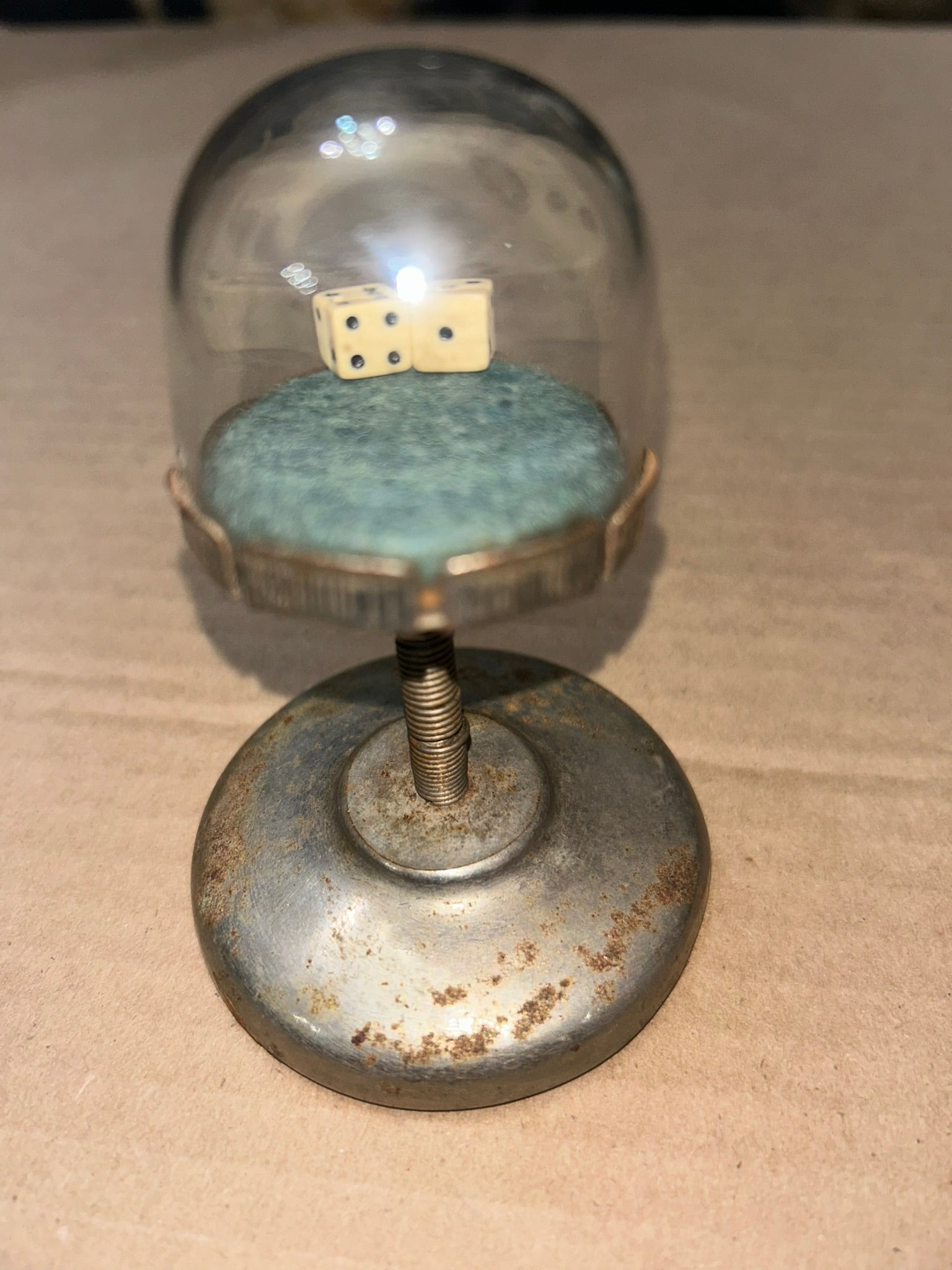 ANTIQUE 2 1/2" TALL GLASS DOME DICE SCRAPER. CALL OR TEXT FOR MORE INFORMATION