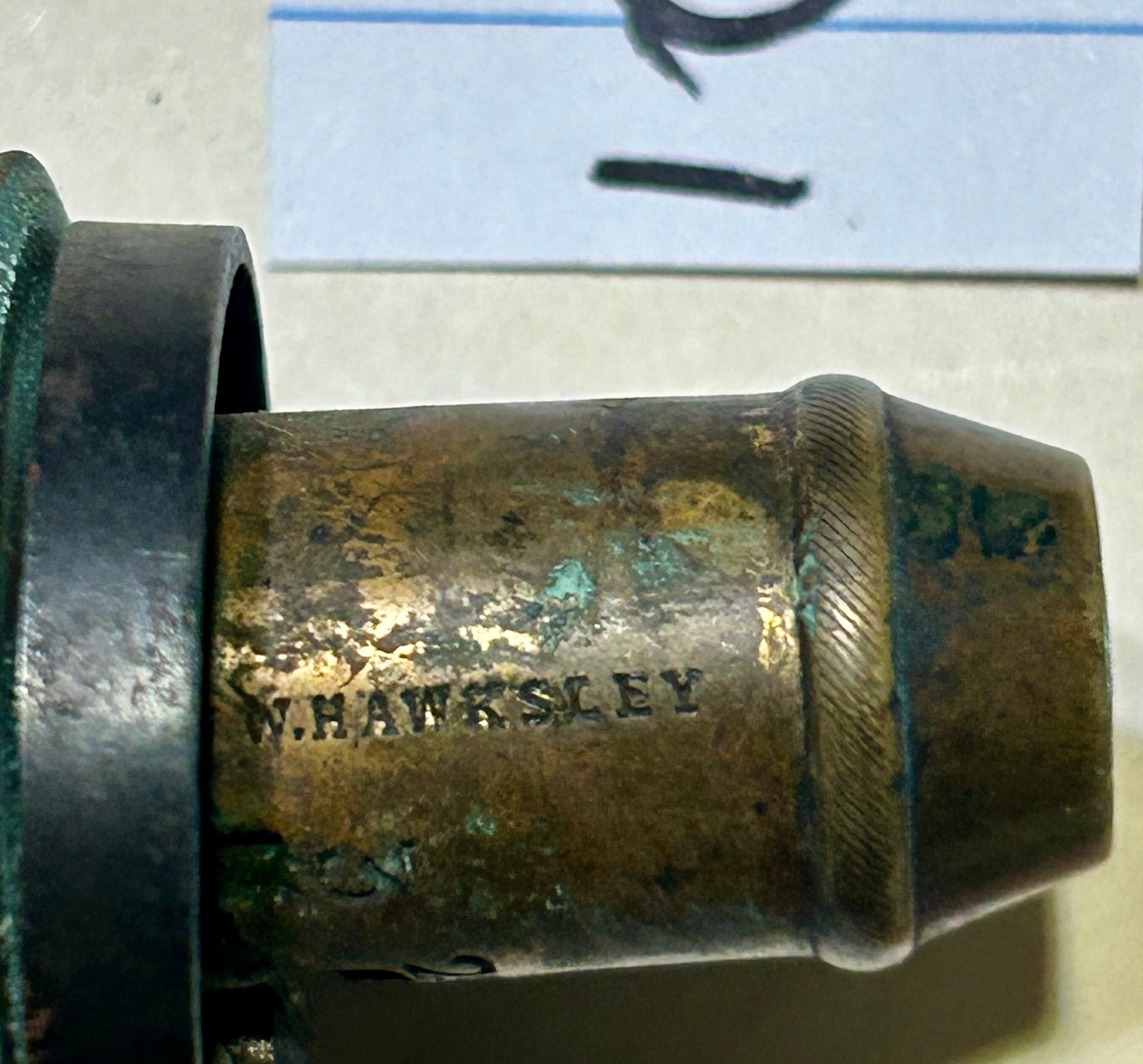 ANTIQUE HAWKSLEY BASKET WEAVE POWDER FLASK. CALL OR TEXT FOR MORE INFORMATION