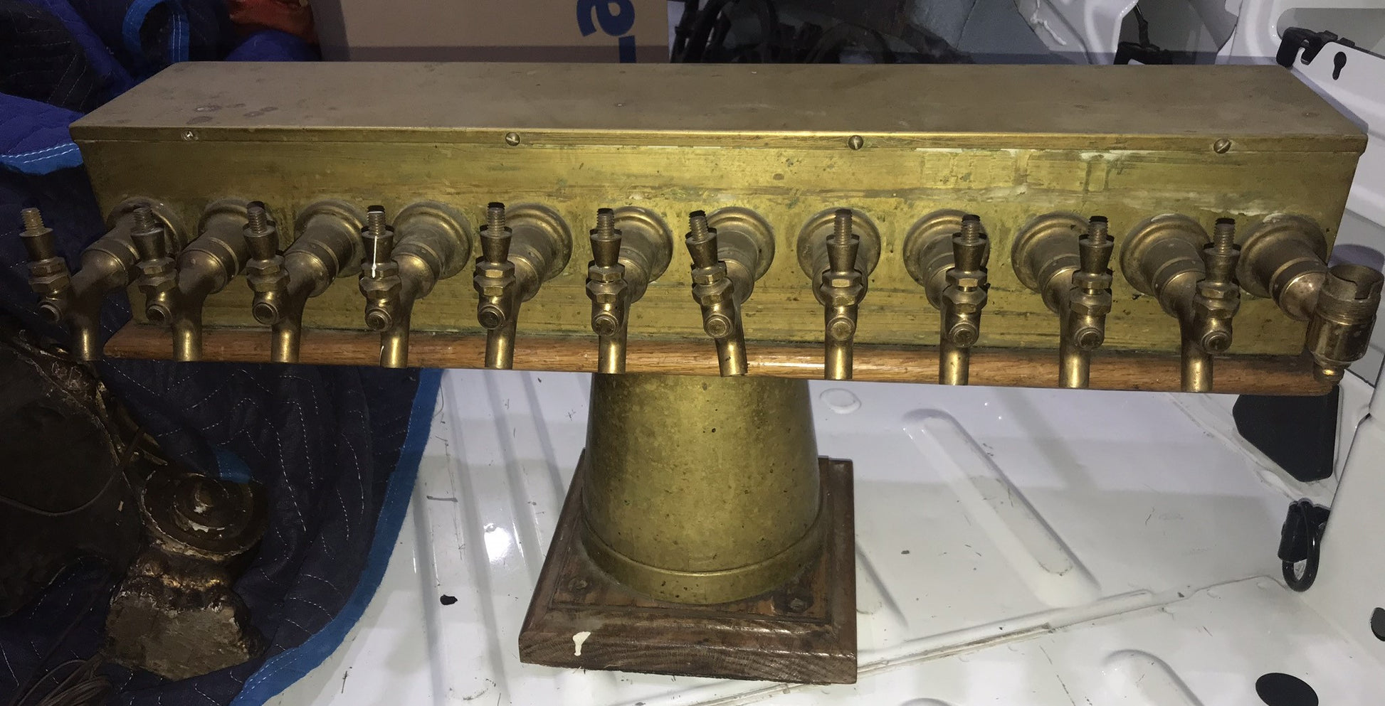 ANTIQUE LARGE BRASS TWELVE SPITOT BEER TAP BY BANNER EQUIPTMENT, CHICAGO. CALL OR TEXT FOR MORE INFORMATION