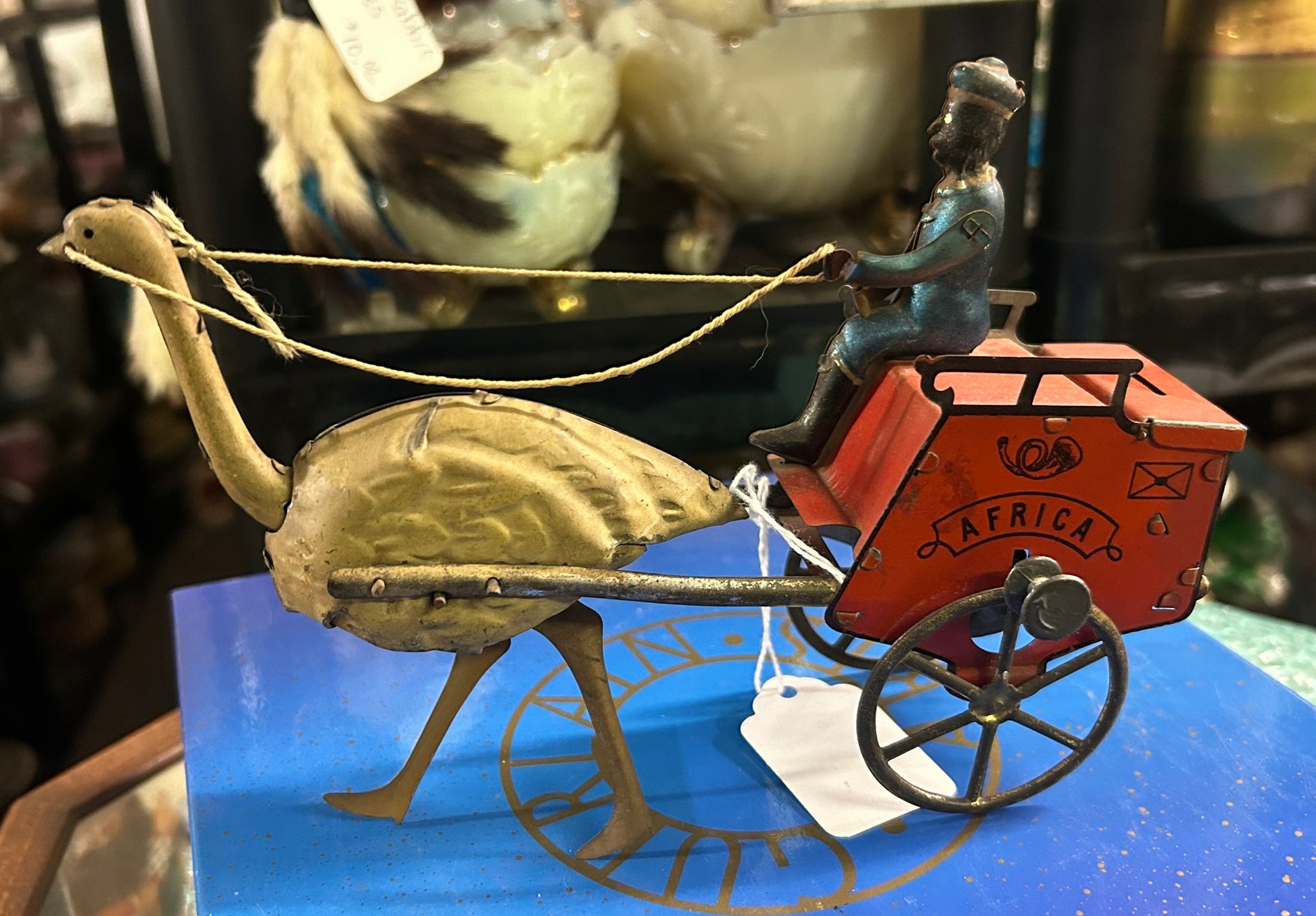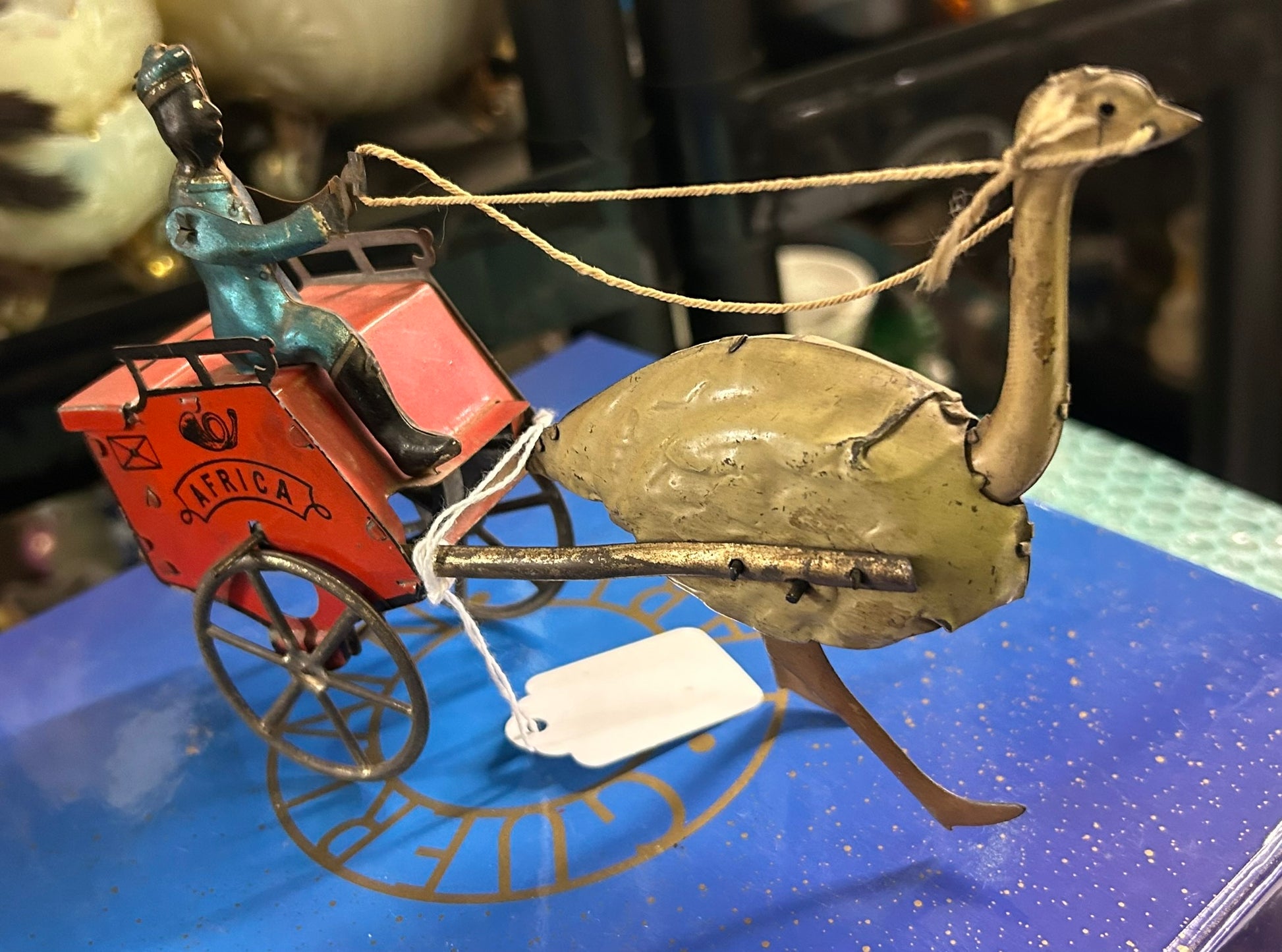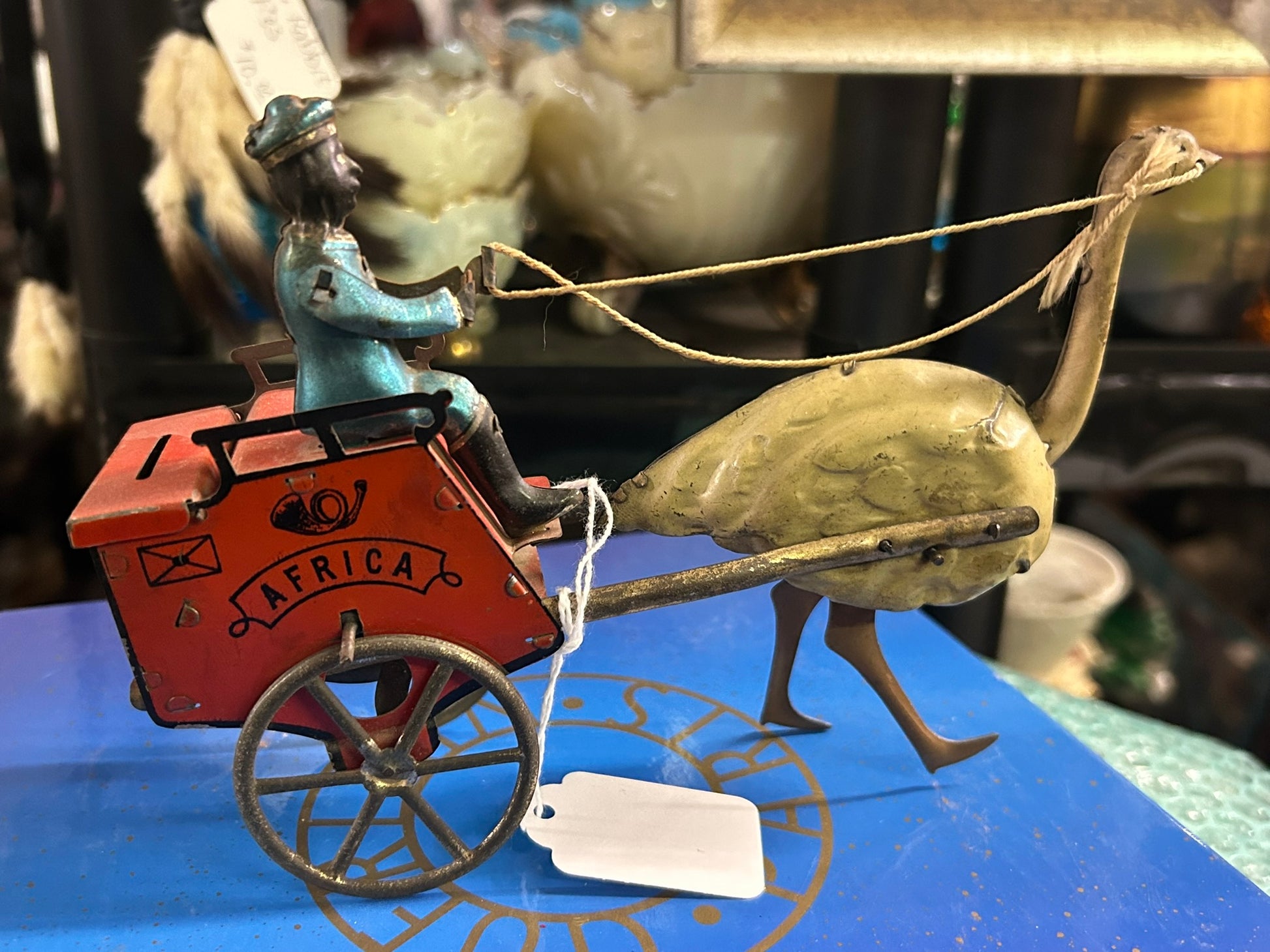 ANTIQUE LEHMAN WIND UP TOY "AFRICA" IN NEAR MINT CONDITION 7 1/2" LONG BY 5" TALL. CALL OR TEXT FOR MORE INFORMATION