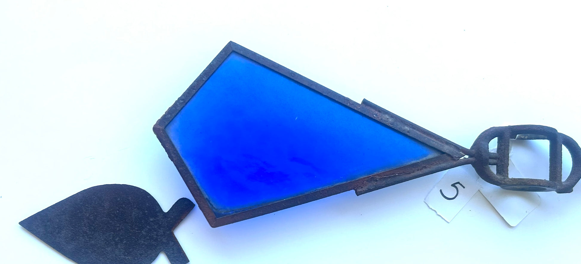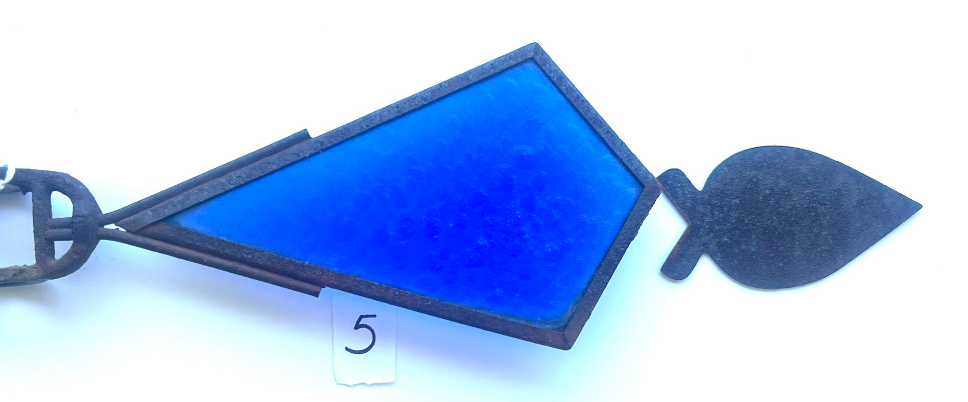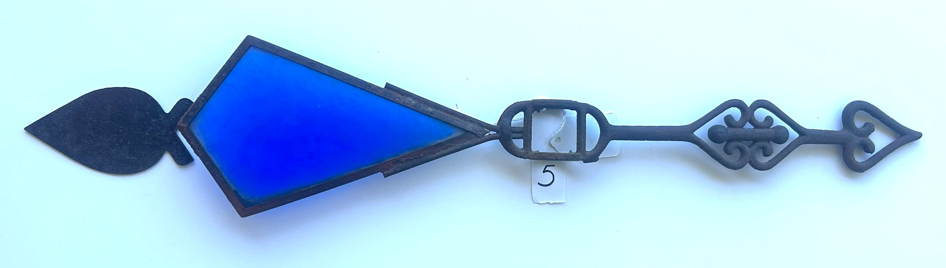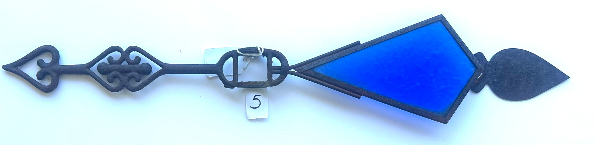 ANTIQUE LIGHTNING ROD "KITE" TAIL ARROW WITH BLUE GLASS 22" LONG- NOTE NEEDS TIN TAIL END SOLDERED ON. CALL OR TEXT FOR MORE INFORMATION