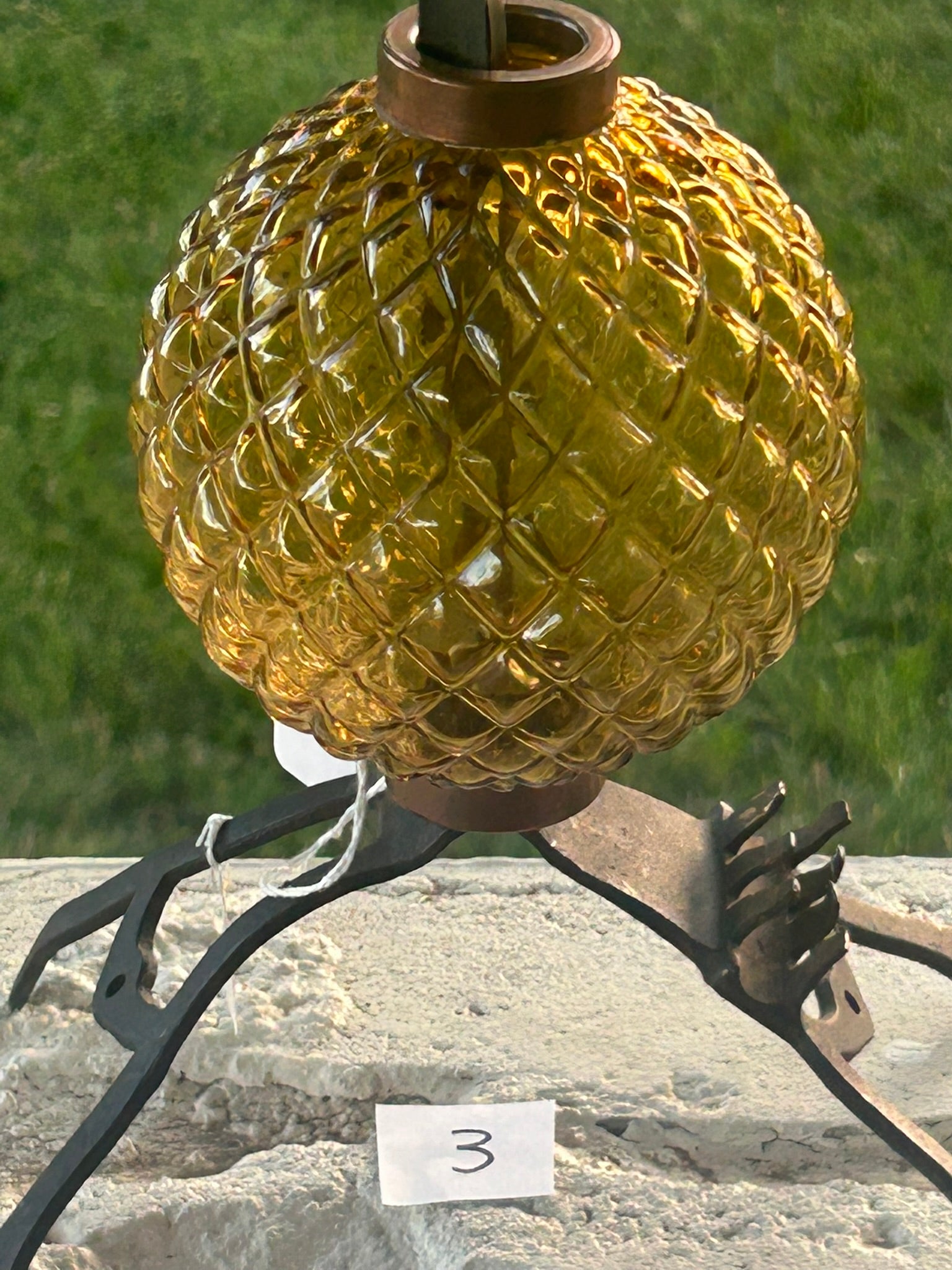 ANTIQUE RAISED DIAMOND QUILTED AMBER GLASS LIGHTNING ROD BALL 5" DIA. CALL OR TEXT FOR MORE INFORMATION