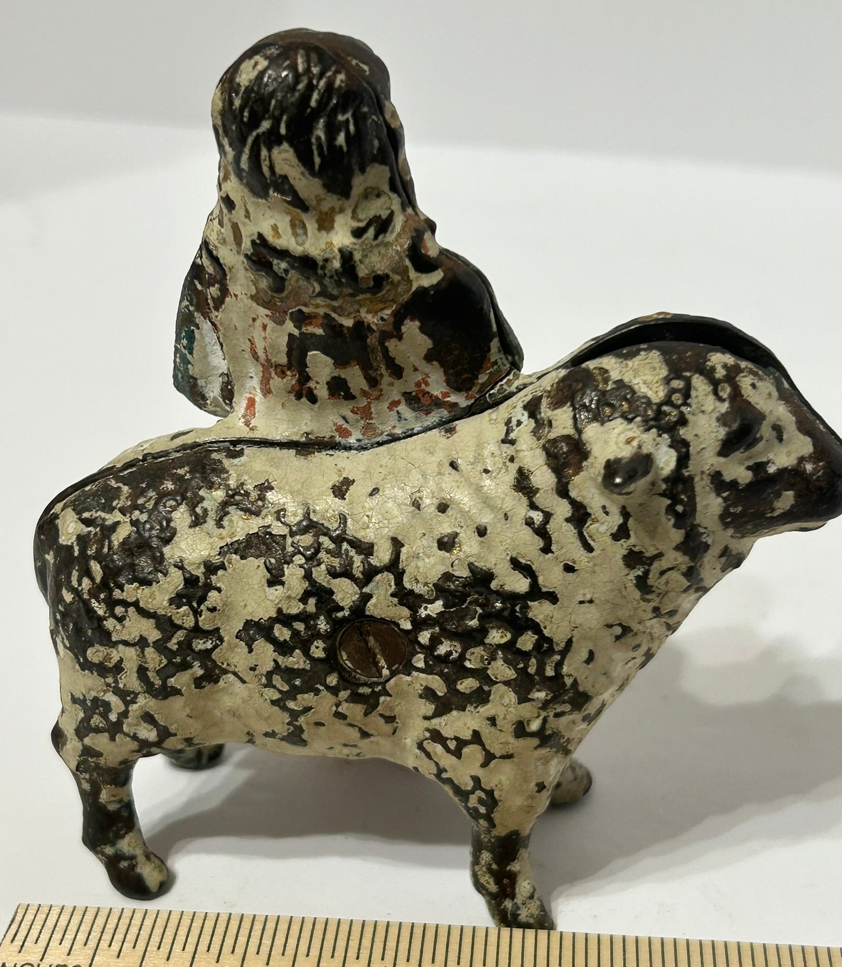 ANTIQUE MARY AND LITTLE LAMB IRON STILL BANK 4 1/2". CALL OR TEXT FOR MORE INFORMATION