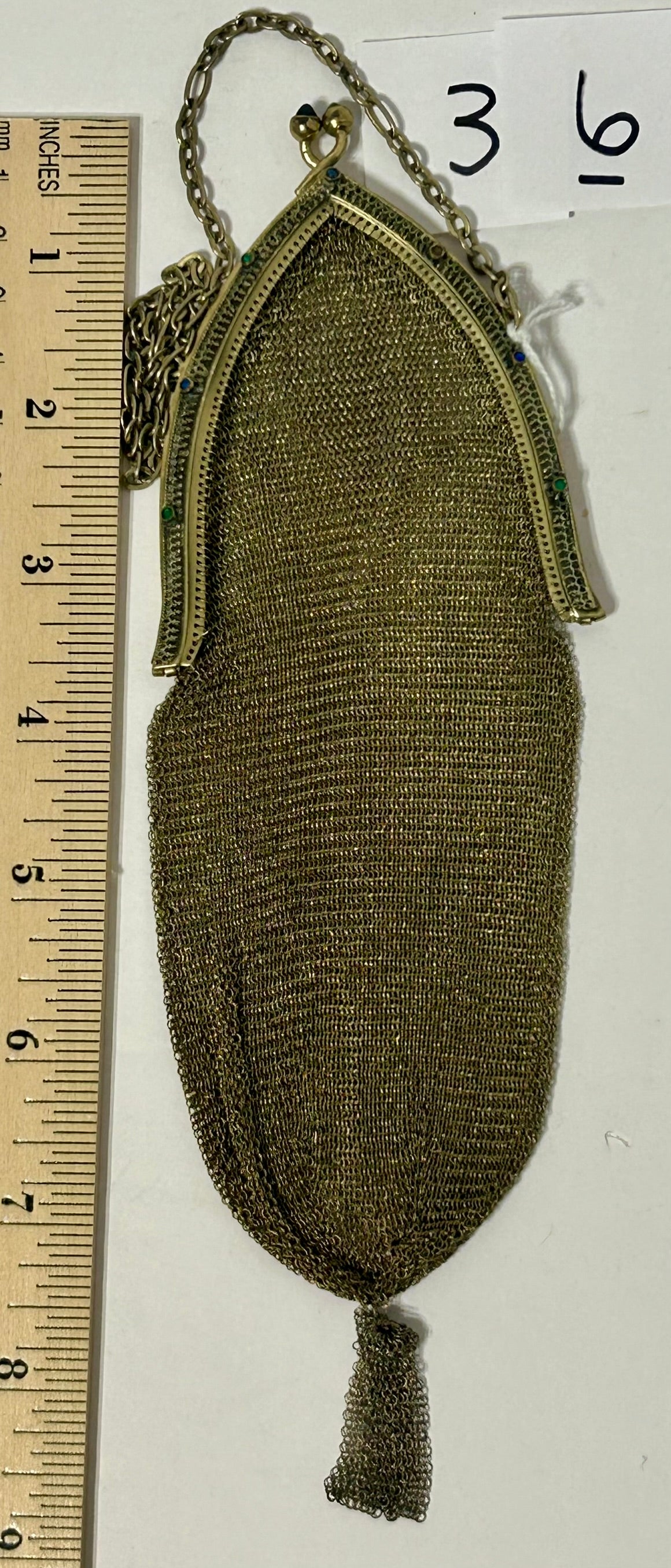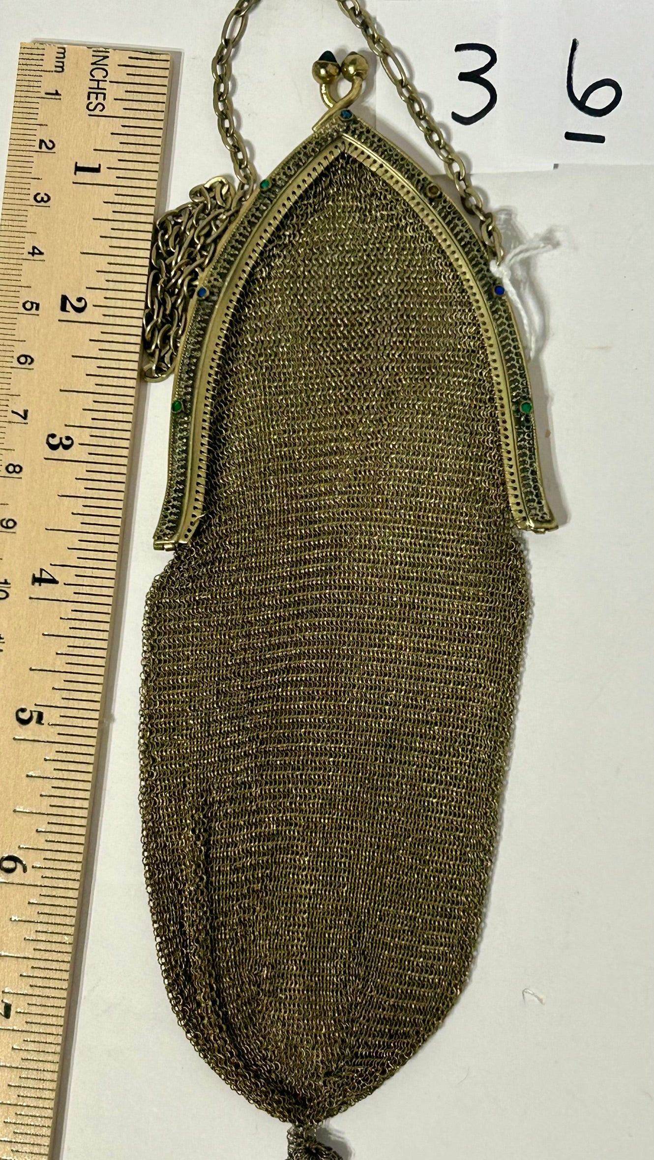 ANTIQUE WHITING & DAVIS MESH PURSE WITH JEWELED FRAME 9" LONG. CALL OR TEXT FOR MORE INFORMATION