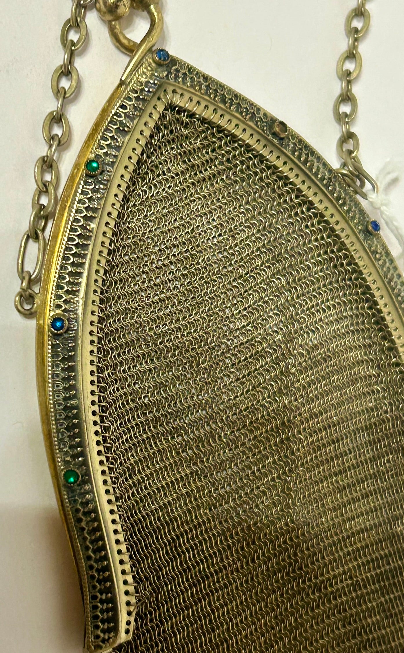 ANTIQUE MESH PURSE BY WHITING & DAVIS WITH JEWELED FRAME