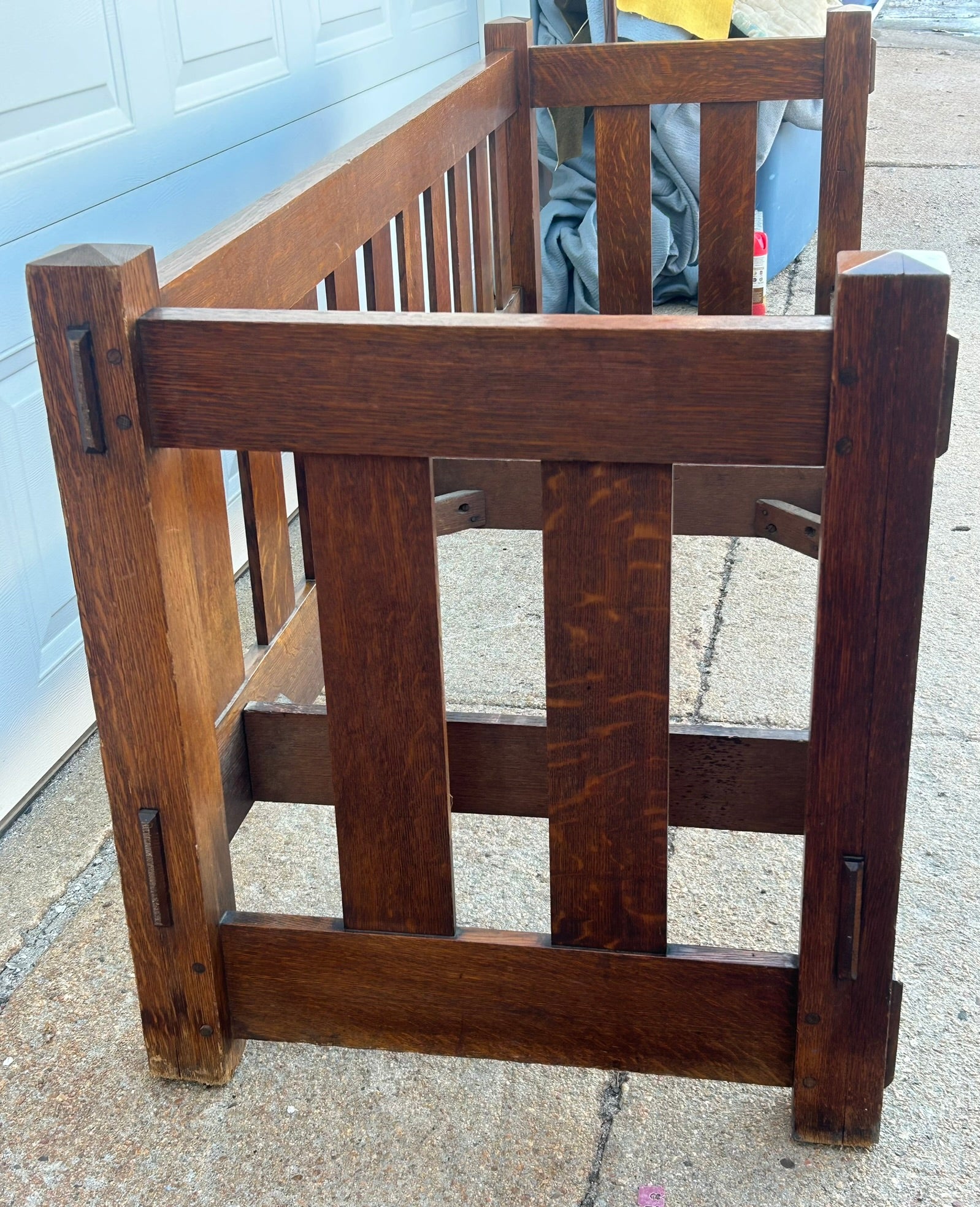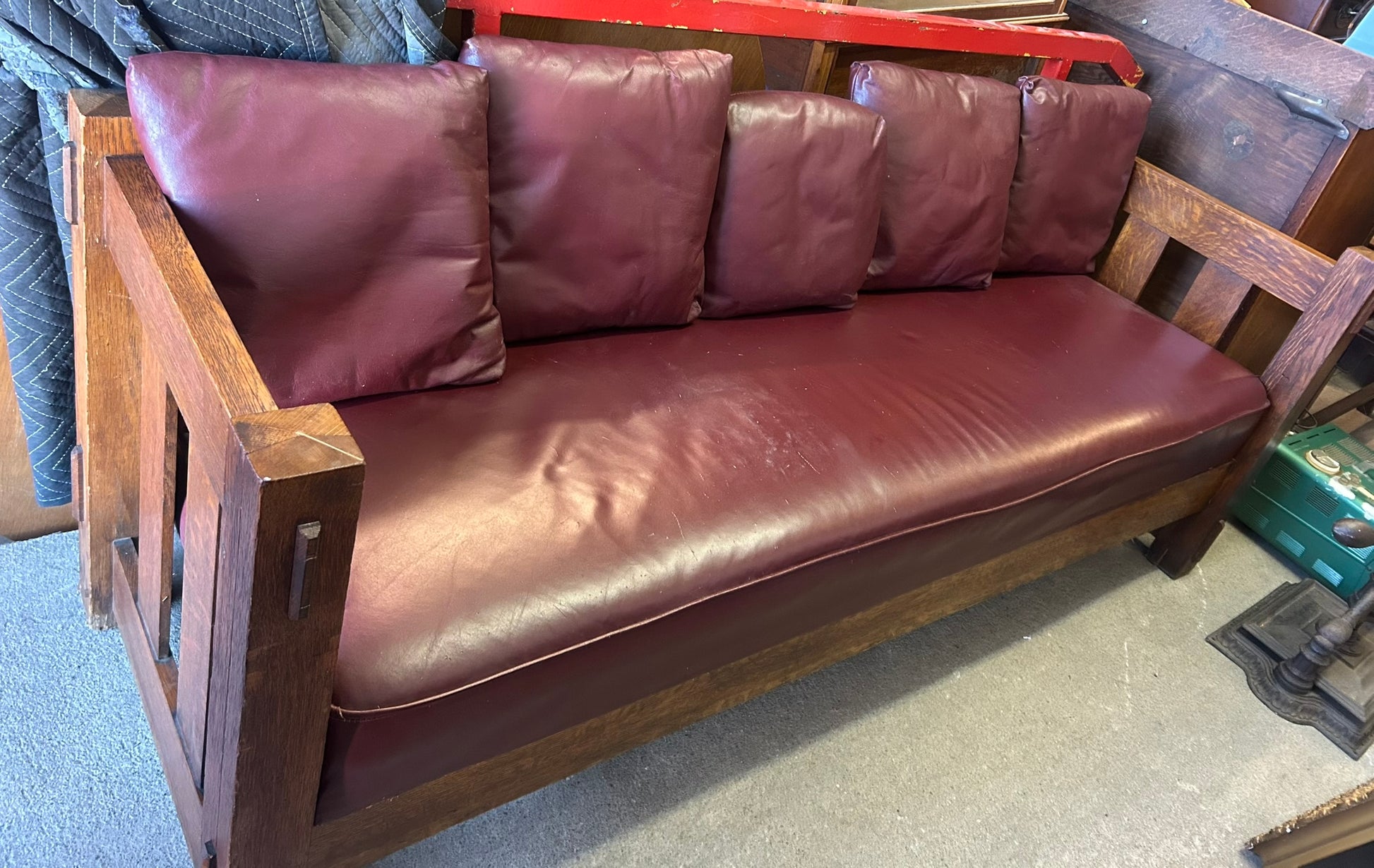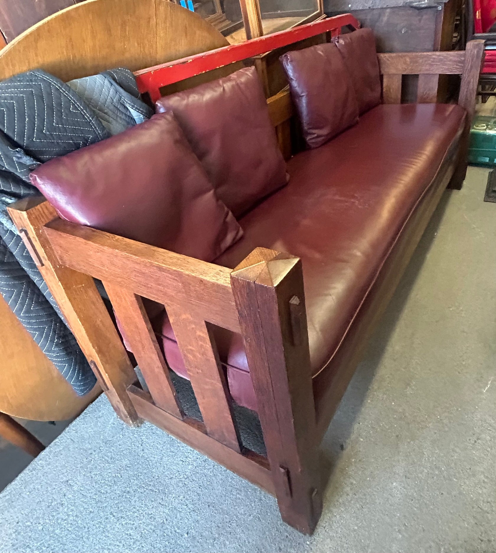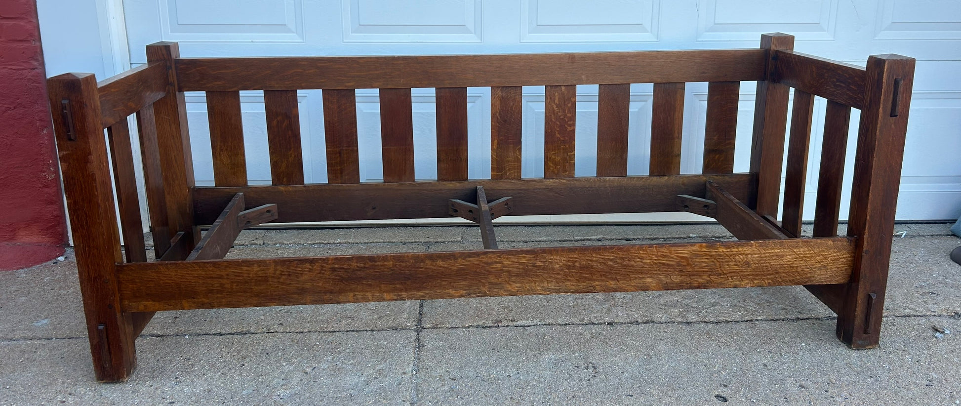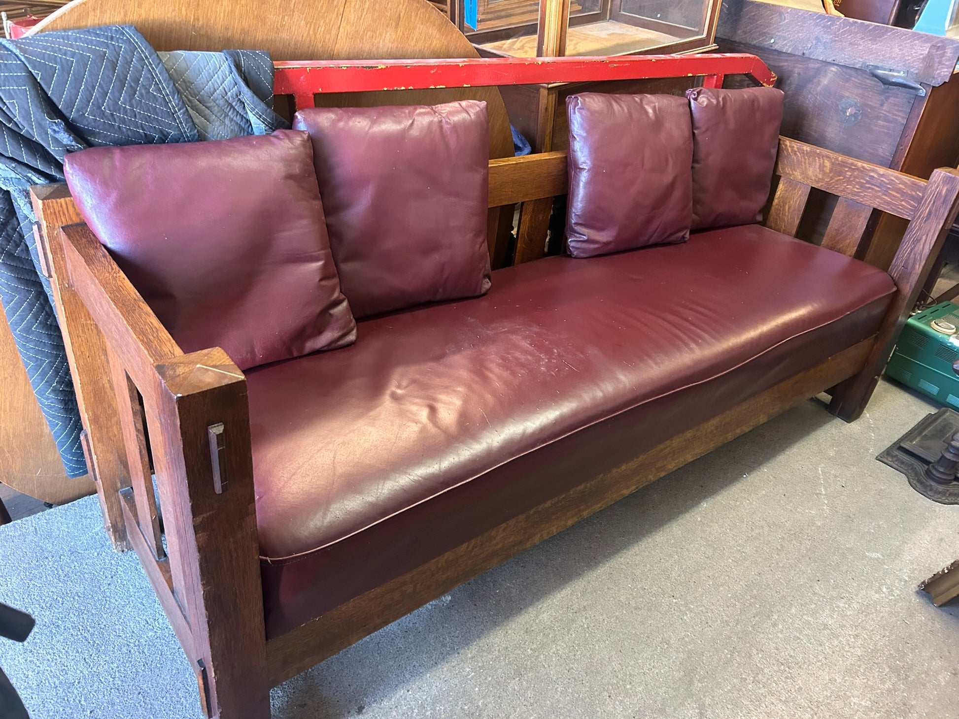 ANTIQUE MISSION OAK EVEN ARM SETTLE COUCH BY OAK CRAFT