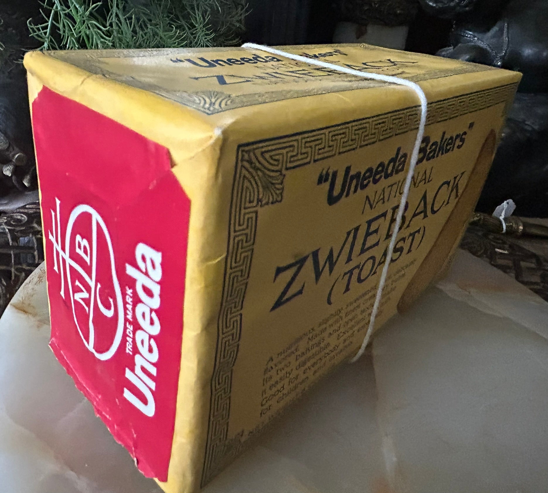 ANTIQUE NATIONAL BISCUIT COMPANY DEALERS DISPLAY BOX FOR ZWIEBACK TOAST 7" X 3". CALL OR TEXT FOR MORE INFORMATION