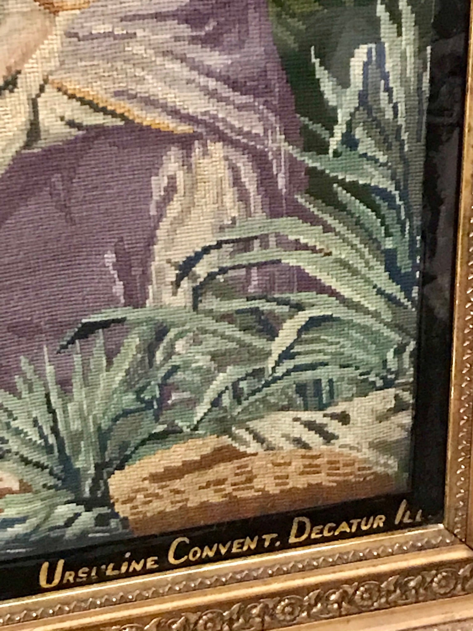 ANTIQUE NEEDLEPOINT FROM URSULINE CONVENT, DECATUR, ILLINOIS