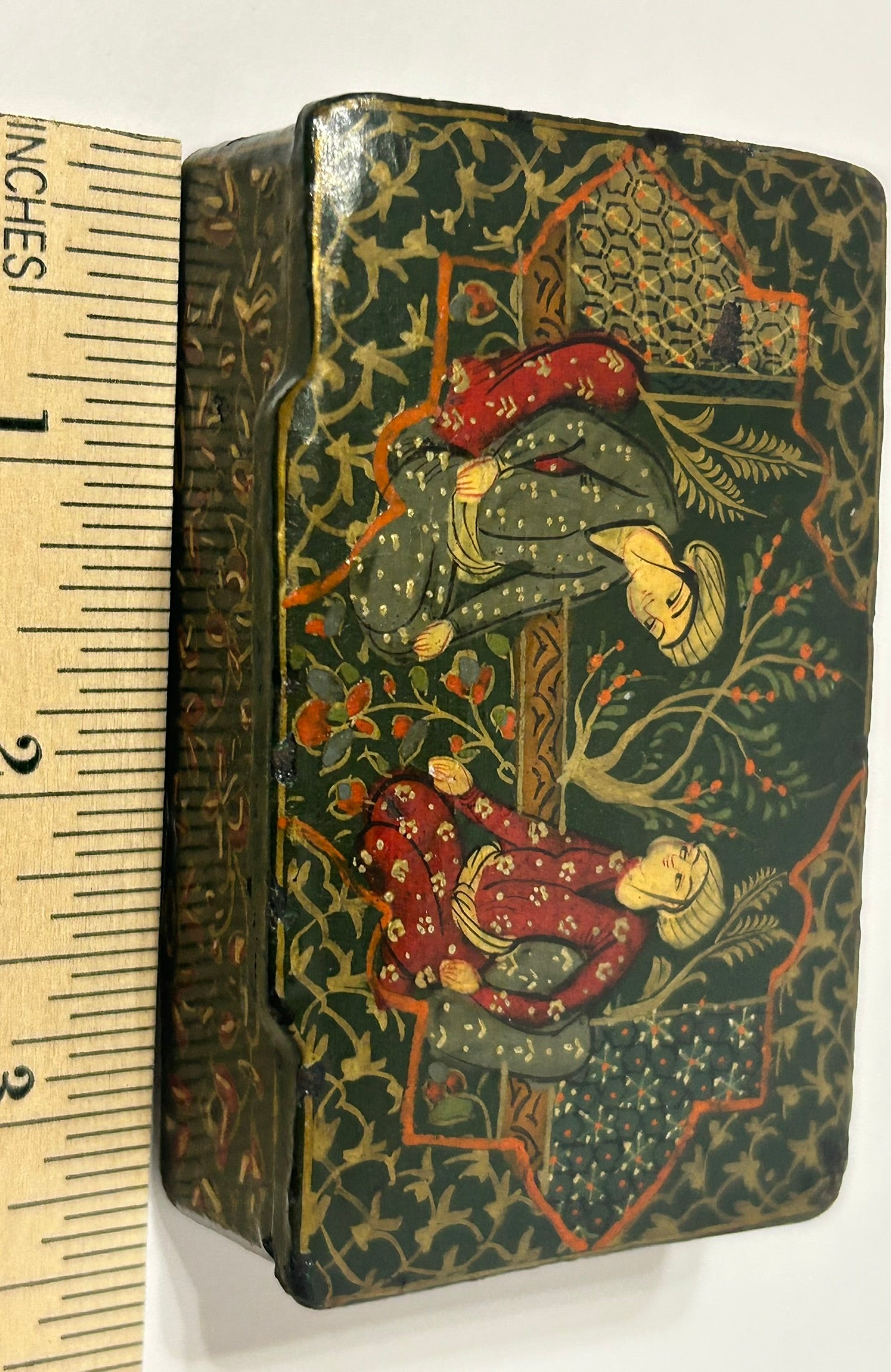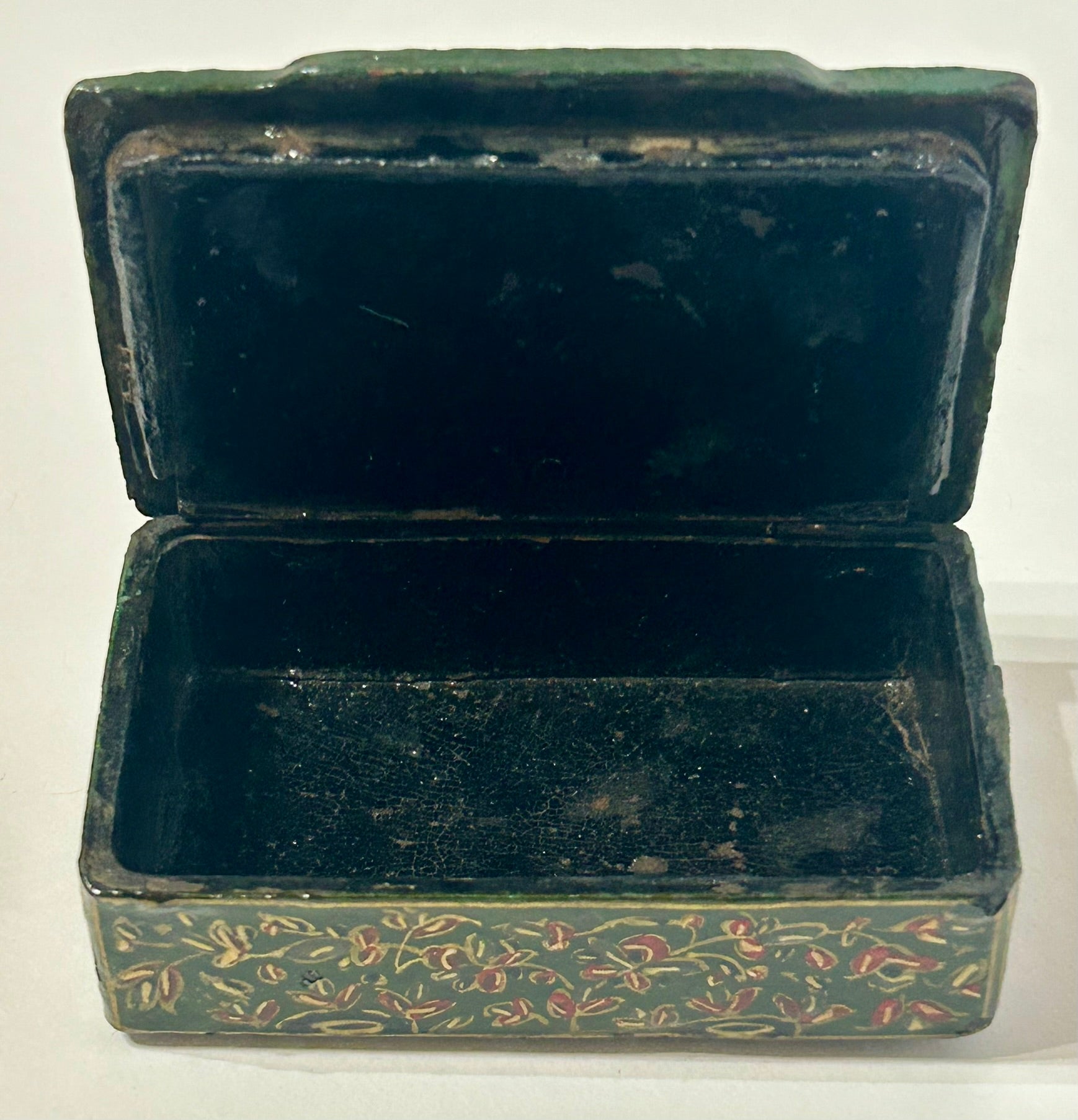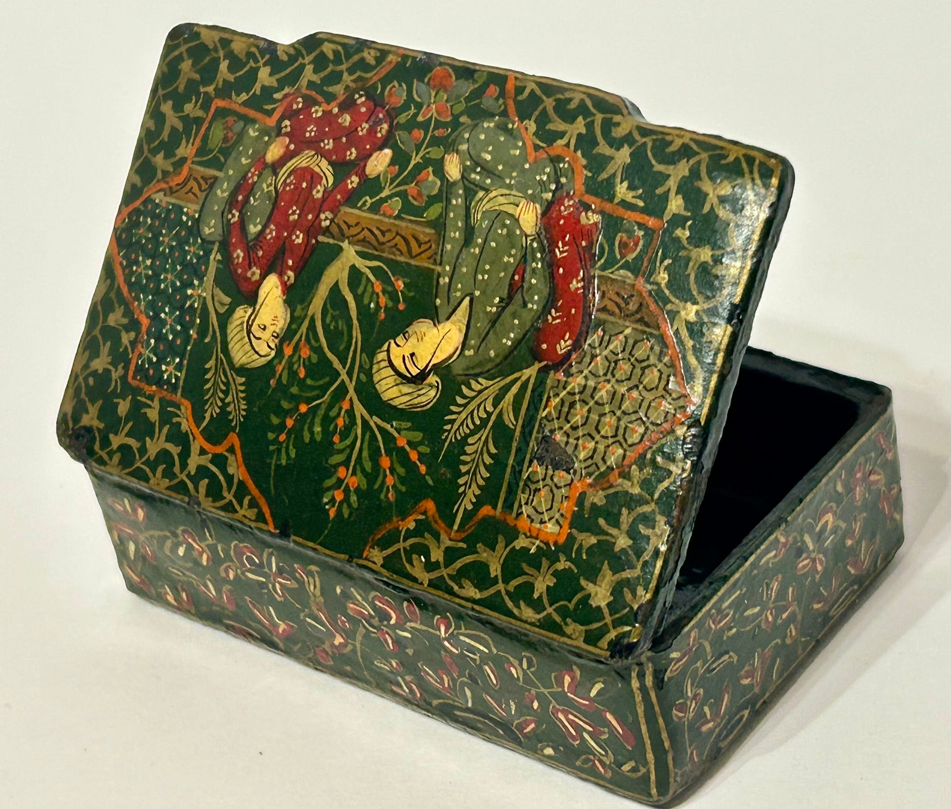 ANTIQUE PERSIAN DESIGN LACQUER SNUFF BOX
