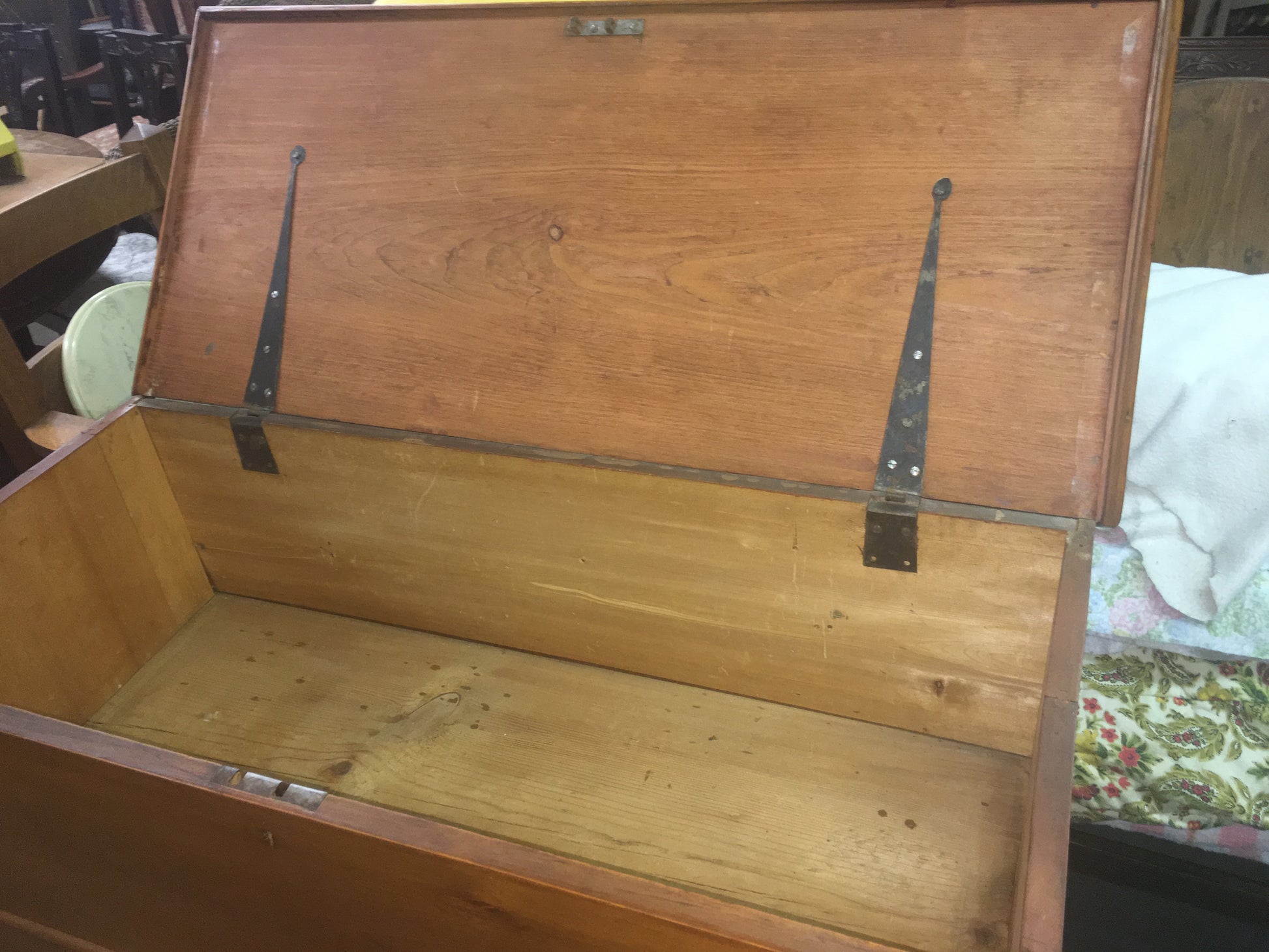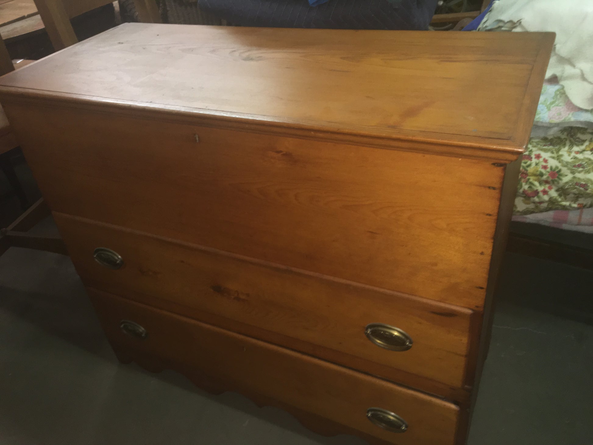 ANTIQUE PINE WOOD TRUNK WITH LIFT TOP AND DRAWERS. CALL OR TEXT FOR MORE INFORMATION