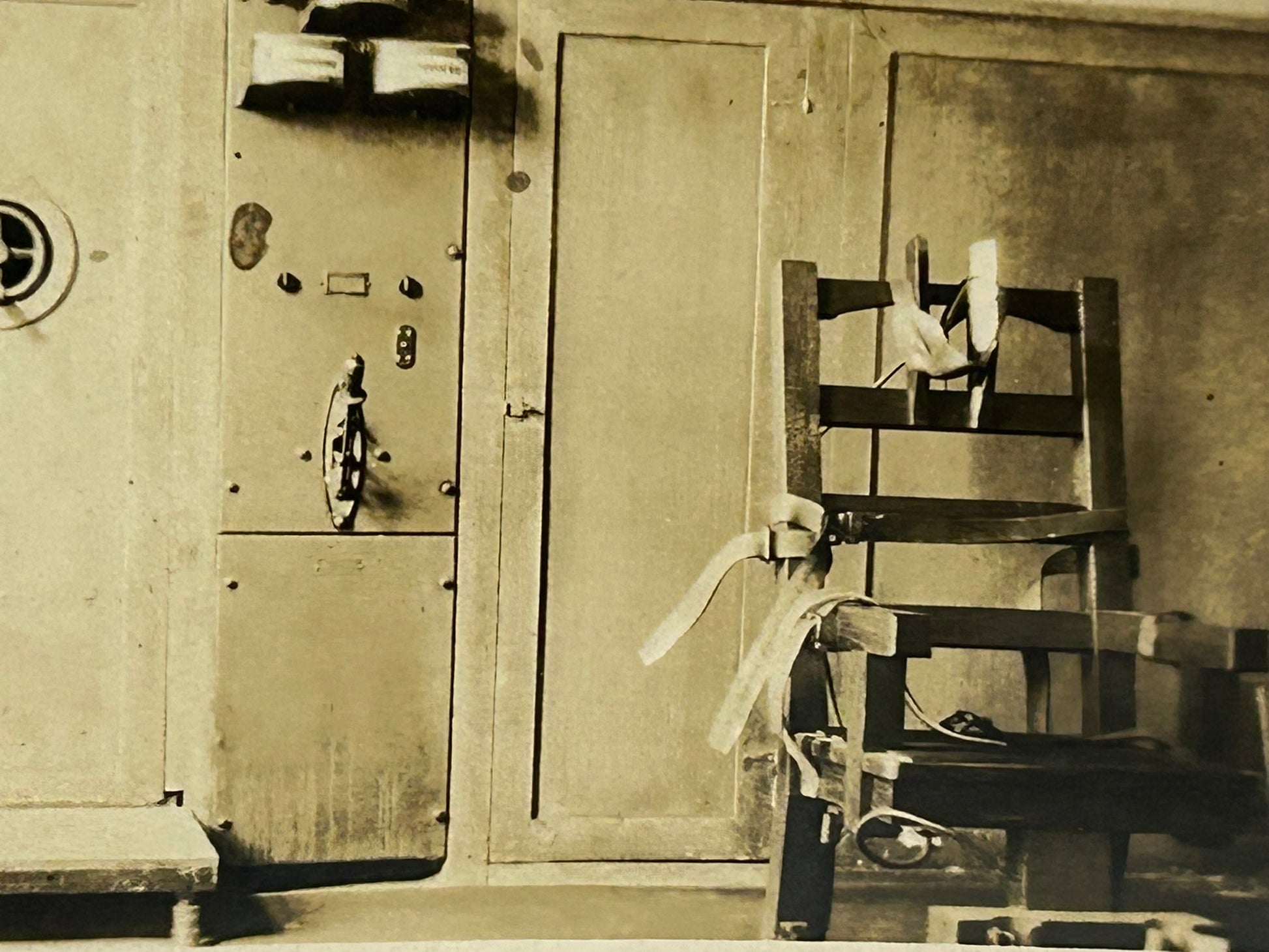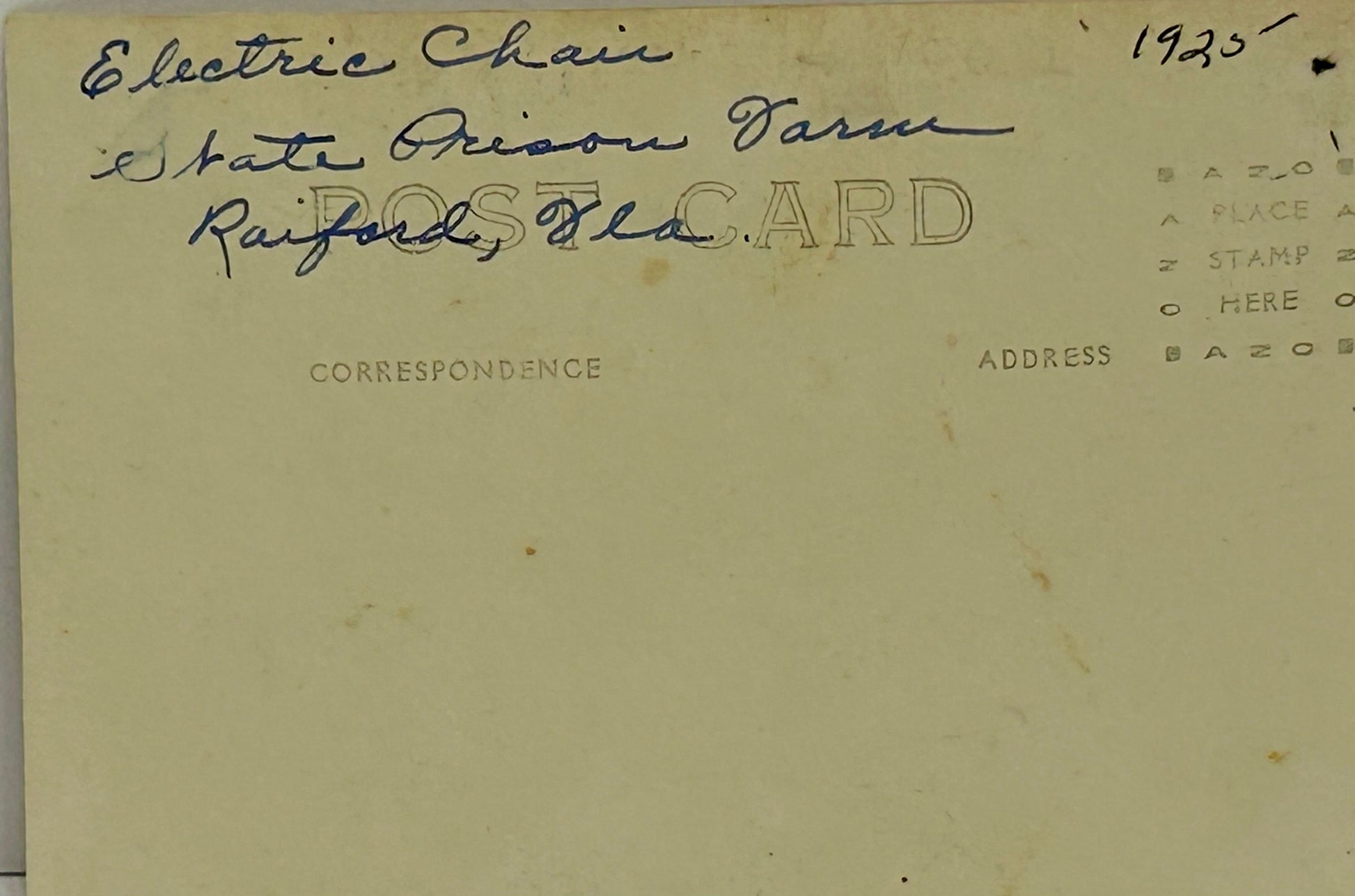 ANTIQUE REAL PHOTO POSTCARD OF ELECTRIC CHAIR AT STATE PRISION FARM IN RAIFORD FLORIDA. CALL OR TEXT FOR MORE INFORMATION