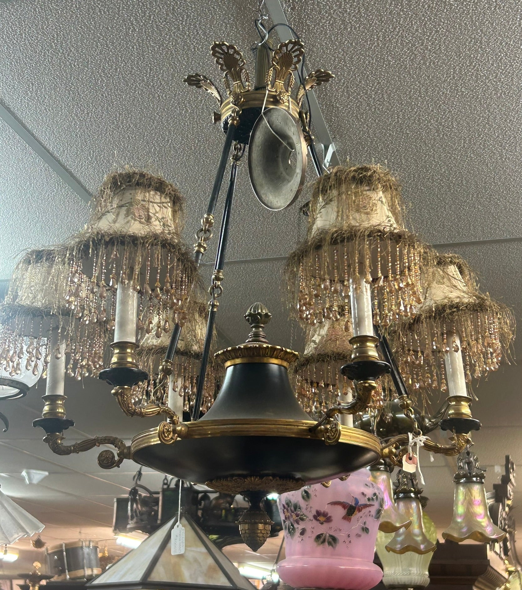 ANTIQUE REGENCY STYLE 6 LIGHT CEILING LIGHT FIXTURE 28" TALL X 28" DIAMETER. CALL, TEXT, OR E-MAIL FOR MORE INFORMATION