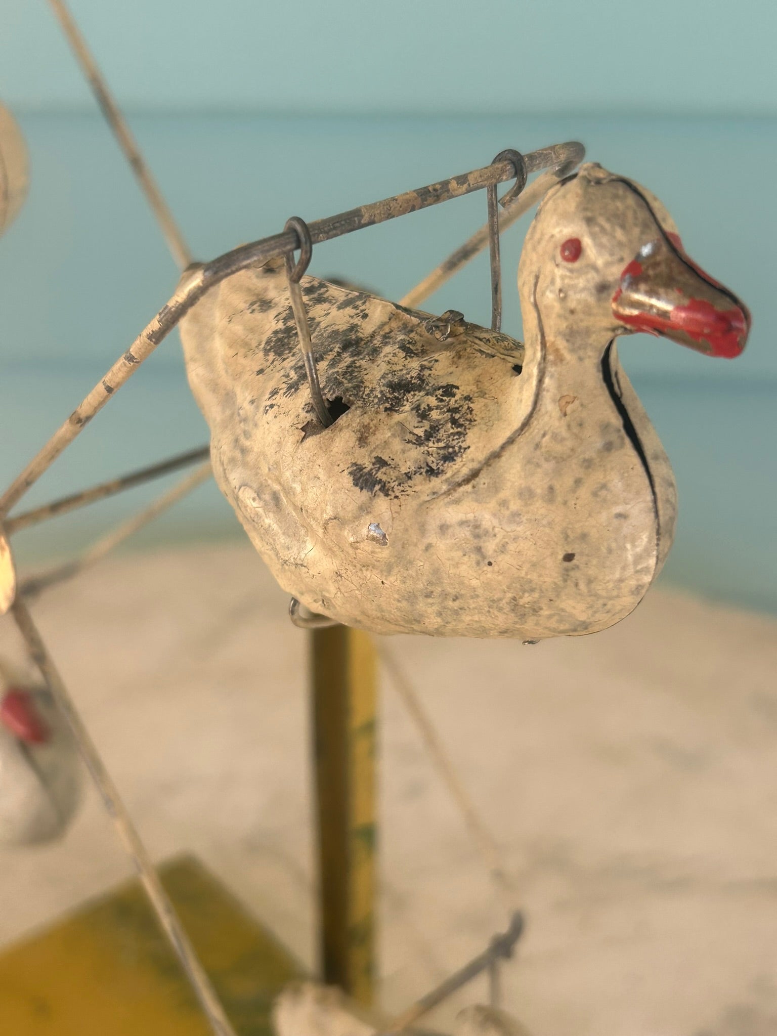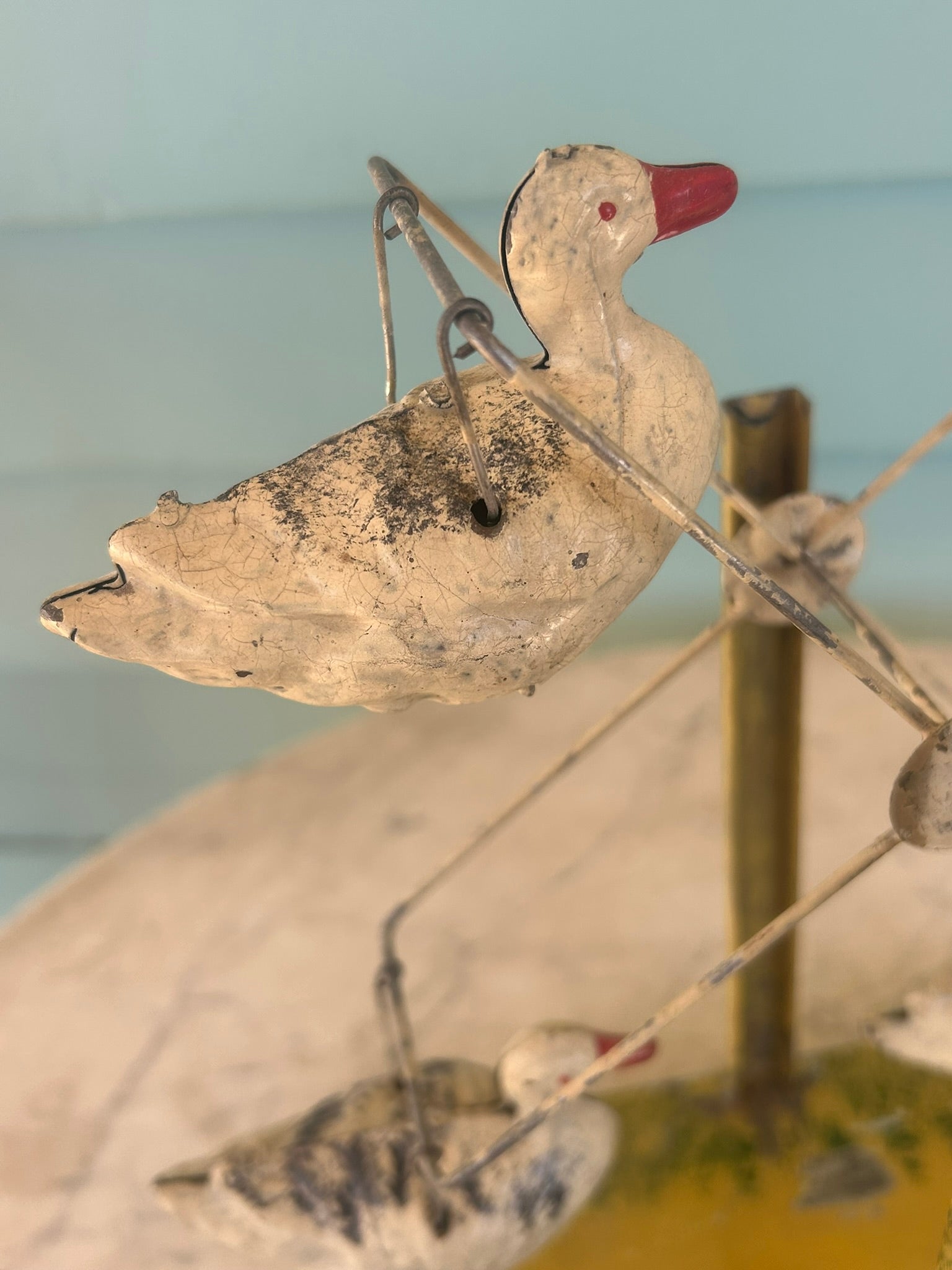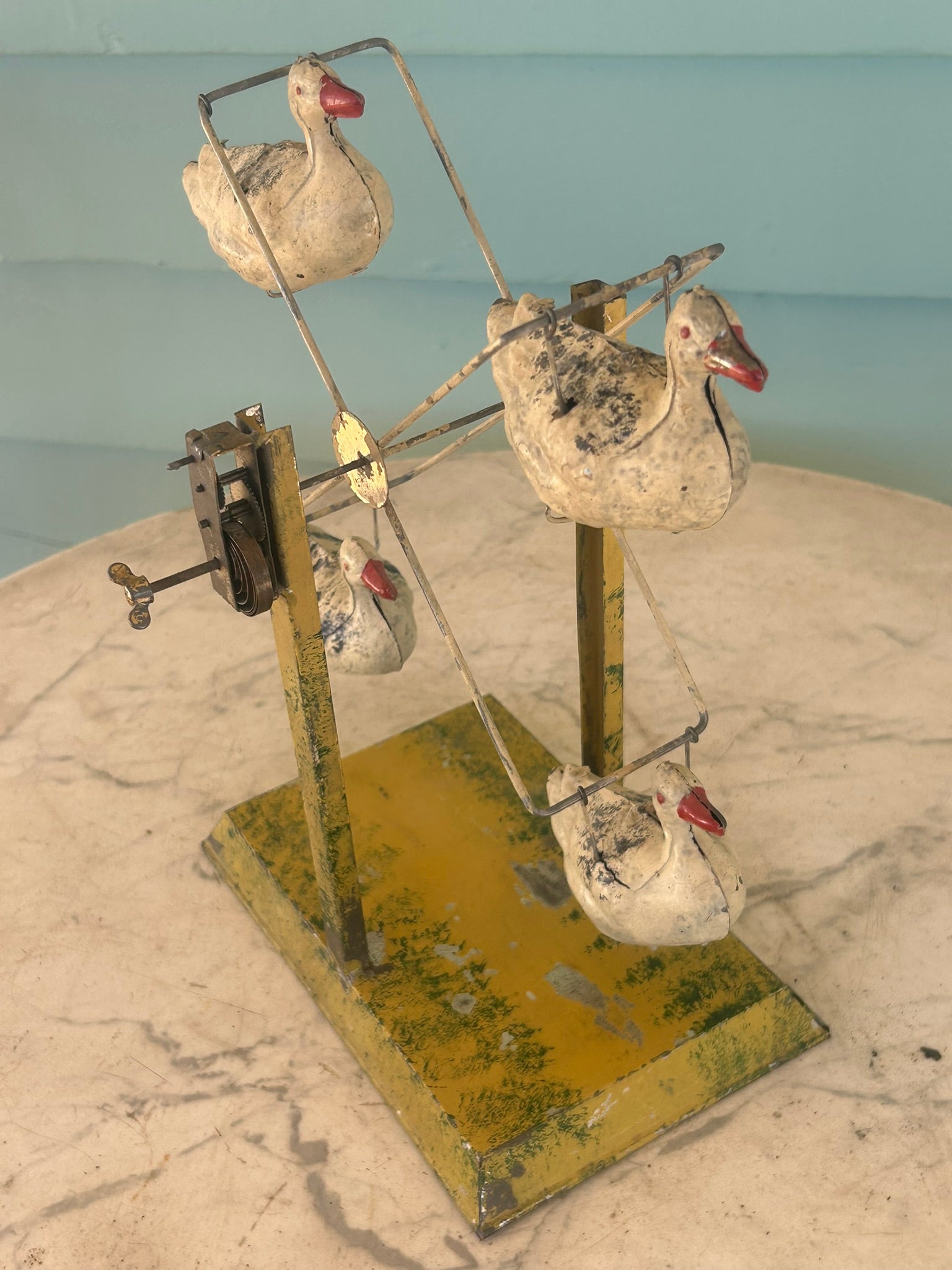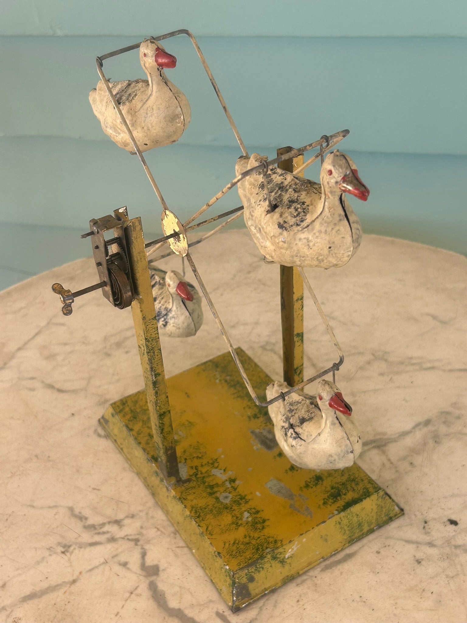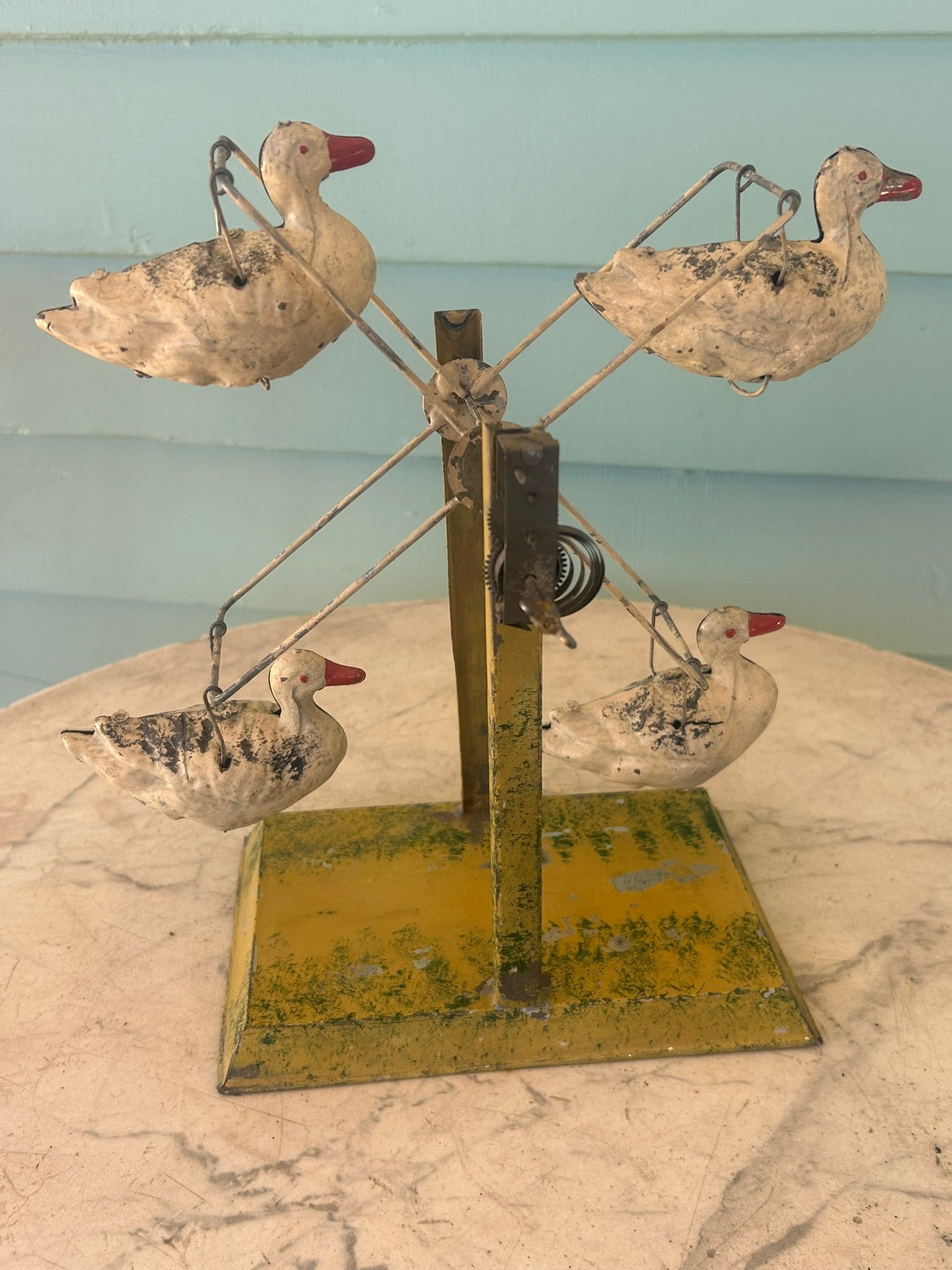 ANTIQUE REVOLVING DUCKS EARLY 1900'S TIN TOY WIND UP