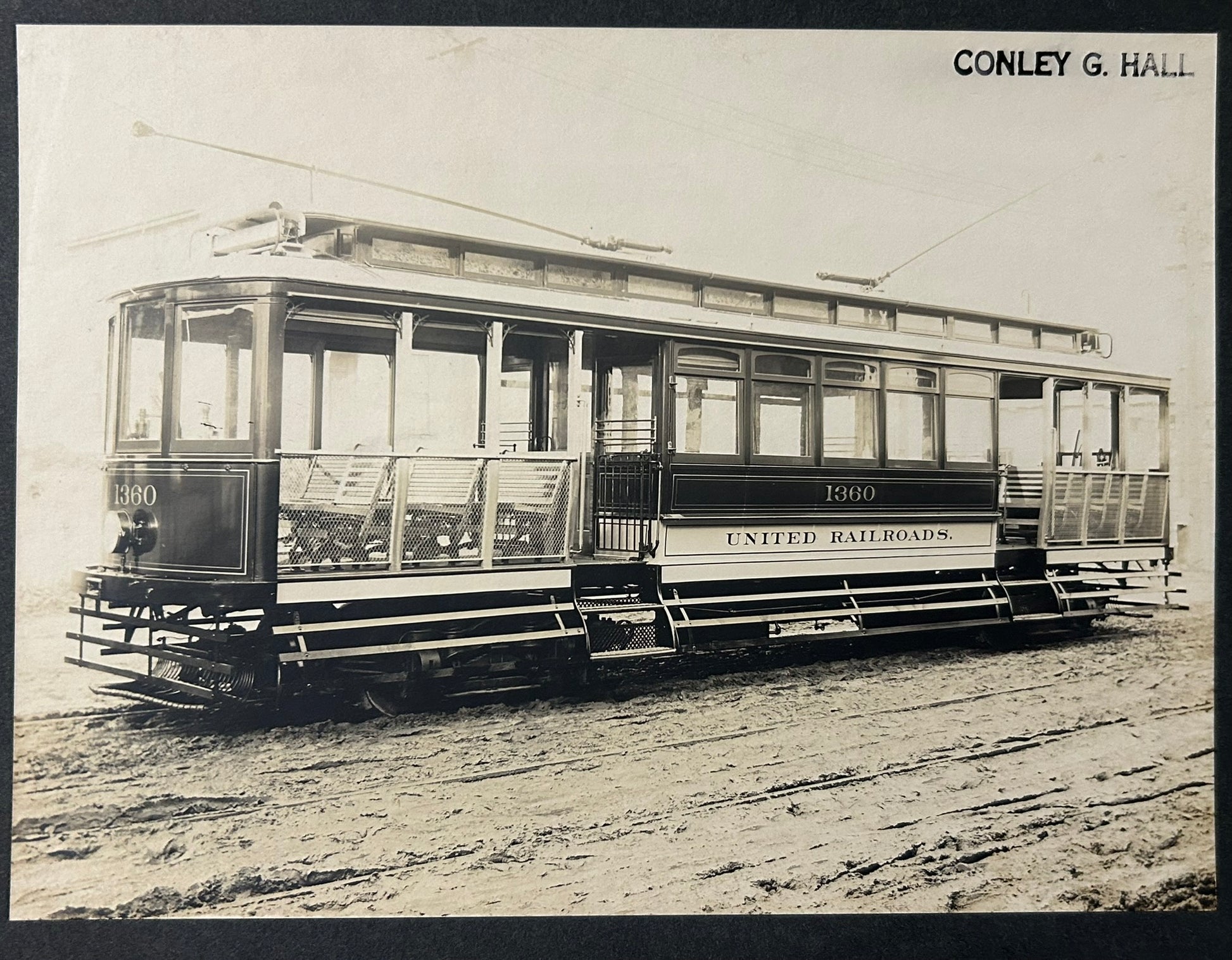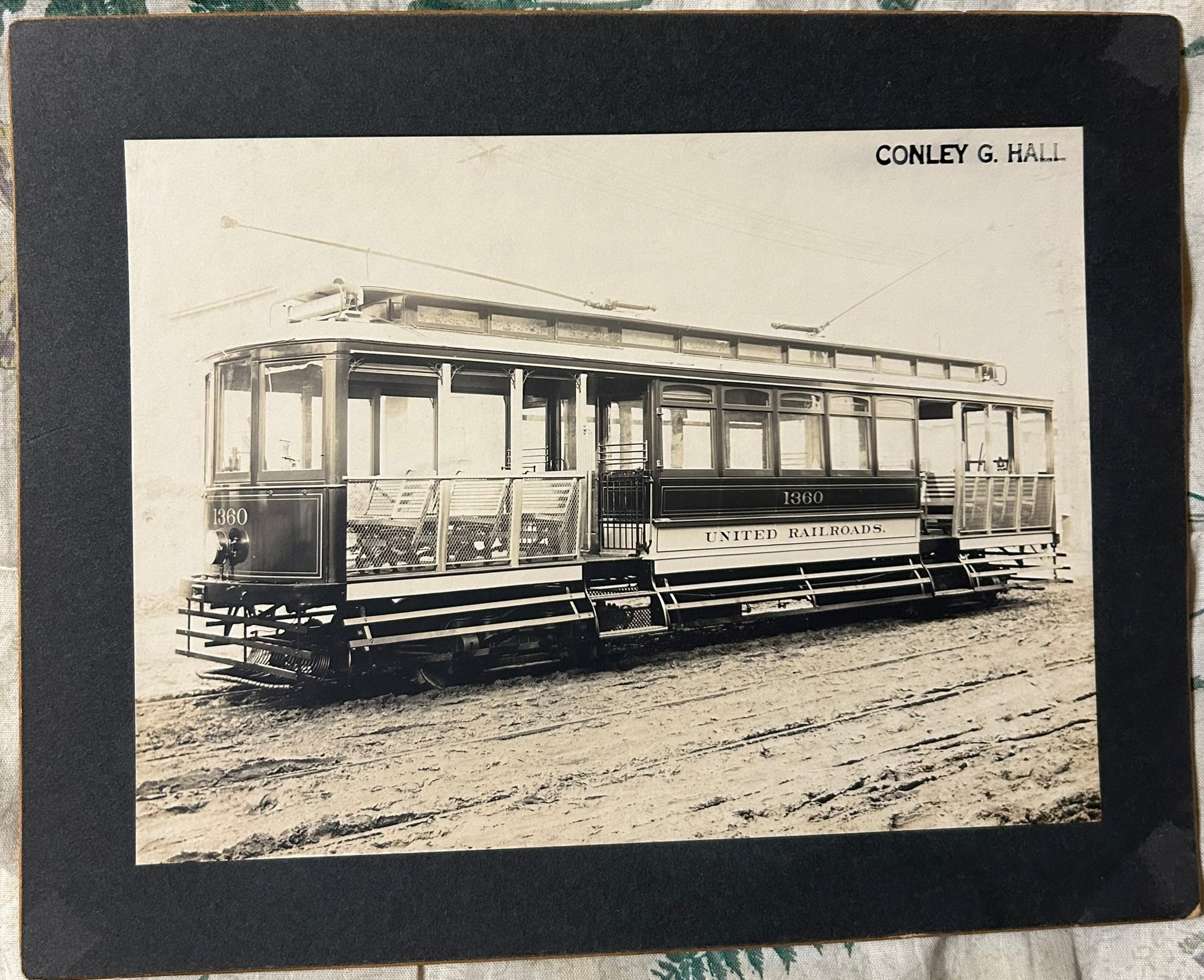 ANTIQUE SAN FRANCISCO CABLE CAR PHOTOGRAPH. UNITED RAILROADS #1360 CABLE CAR, 6" X 8" IMAGE ONLY AND 8" X 10" WITH MOUNT. CALL, TEXT, OR E-MAIL FOR MORE INFORMATION