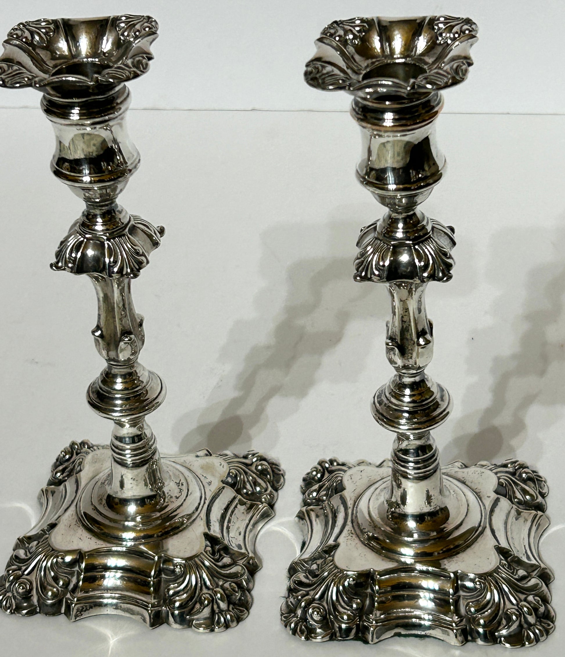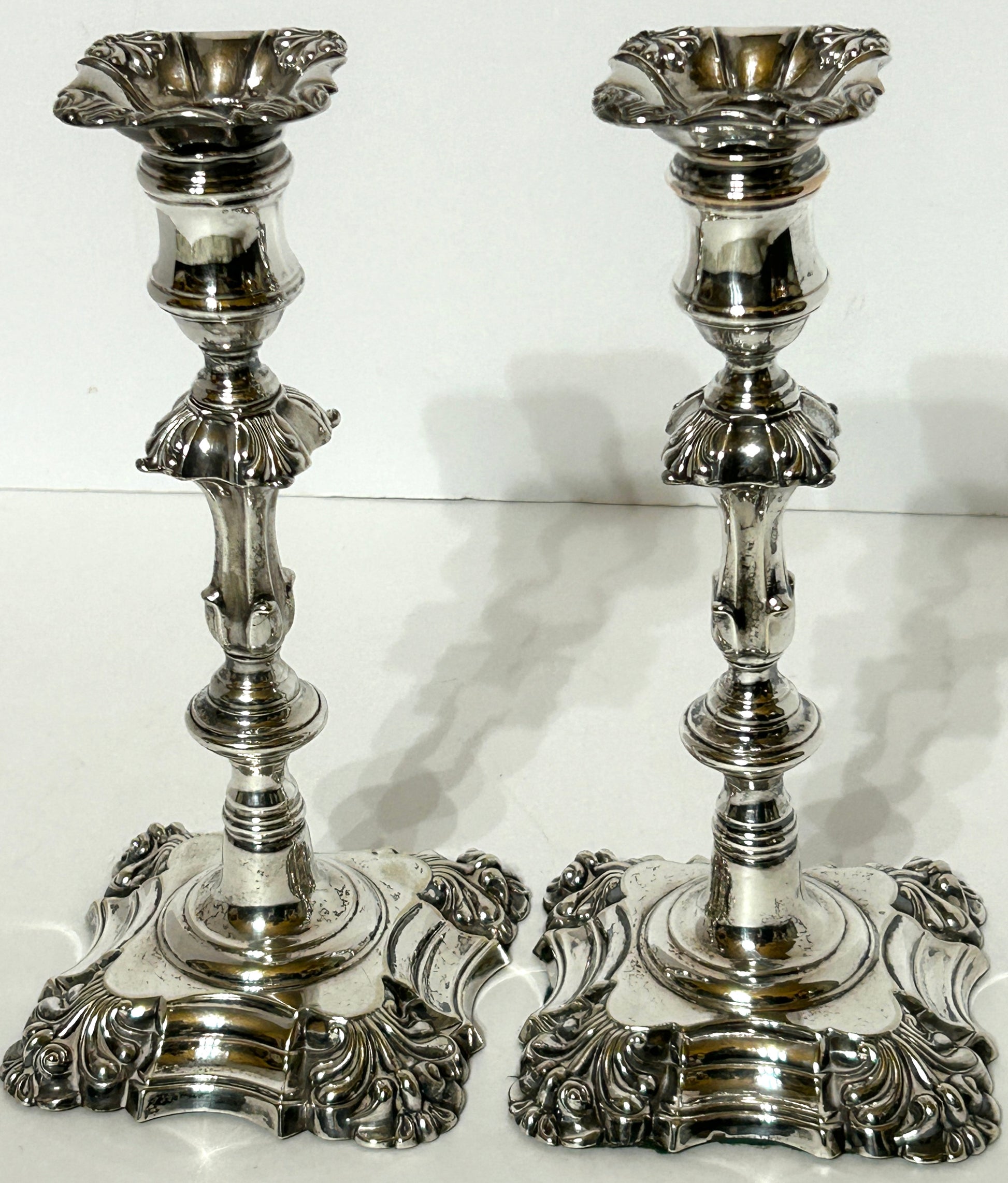 ANTIQUE SHEFFIELD SILVER CANDLESTICKS PAIR BY T. J. CRESWICK