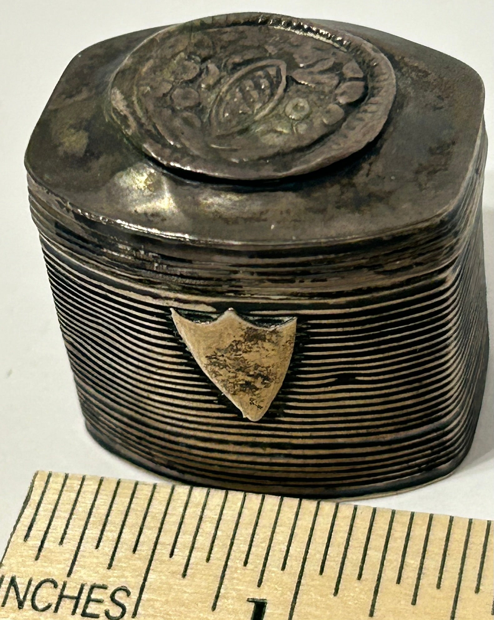 ANTIQUE SILVER SMELLING SALTS BOX CIRCA 1800. CALL OR TEXT FOR MORE INFORMATION