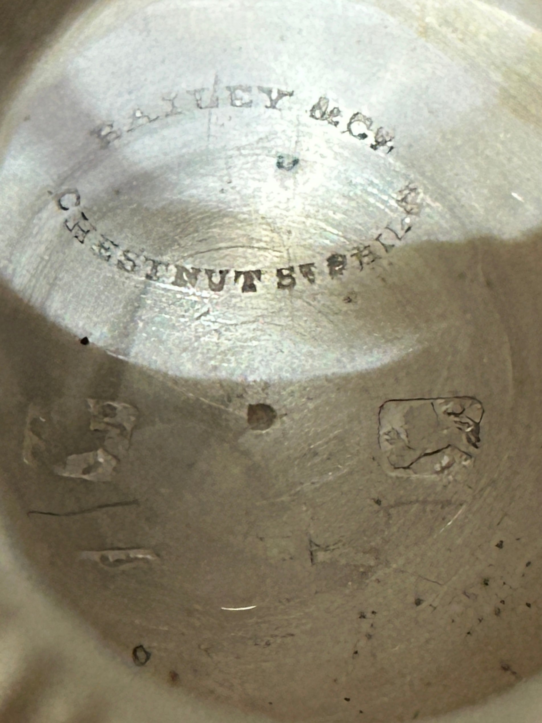 ANTIQUE LARGE SILVER CENTERPIECE BOWL BY PHILADELPHIA MAKER BAILEY & CO. 1852-1862-9 /4" TALL X 12 1/4" DIAMETER AND WEIGHT 44.15 TROY OZ. SHIPPING IS EXTRA SO CALL OR TEXT TO FIND OUT HOW MUCH SHIPPING WILL COST.