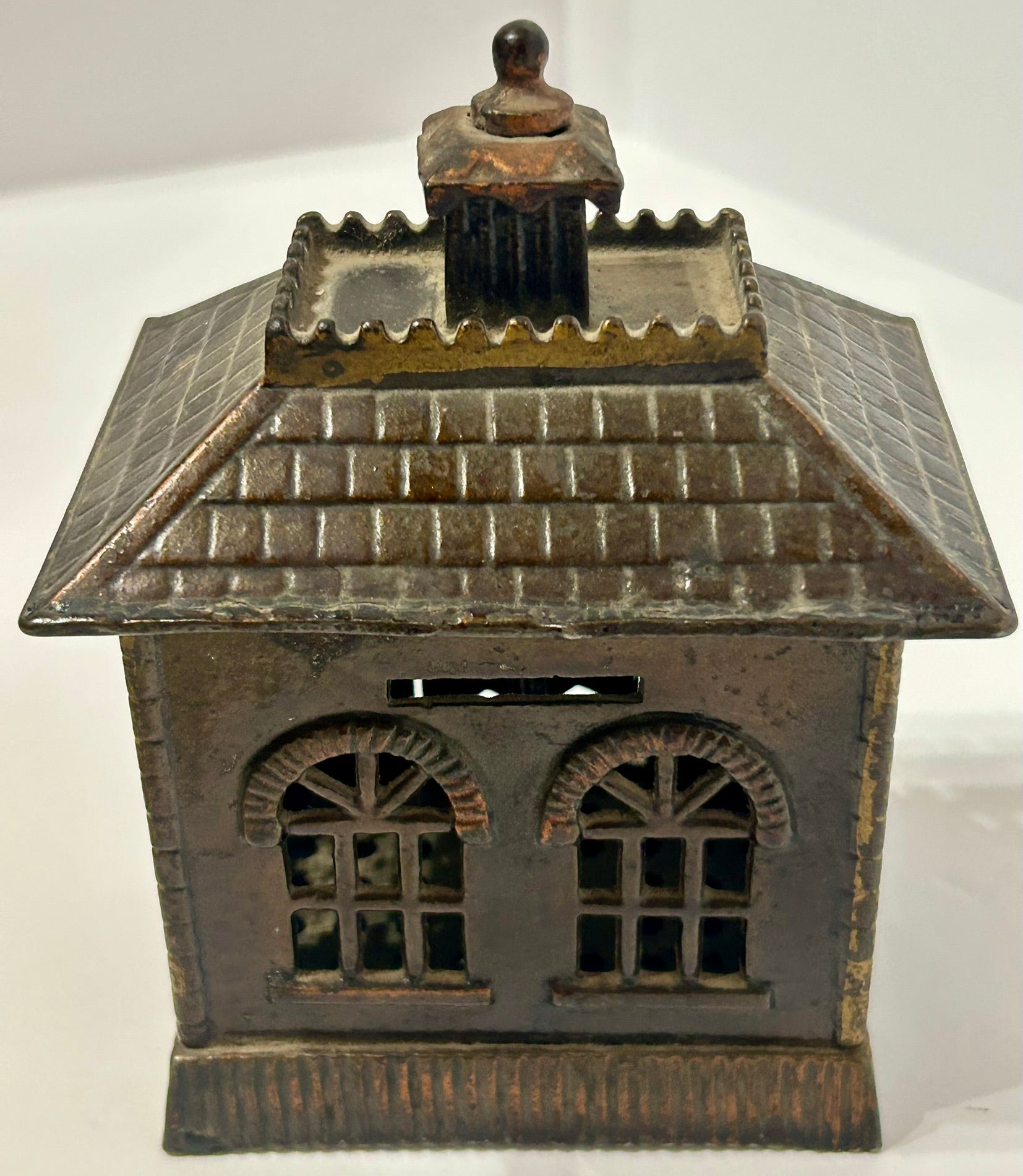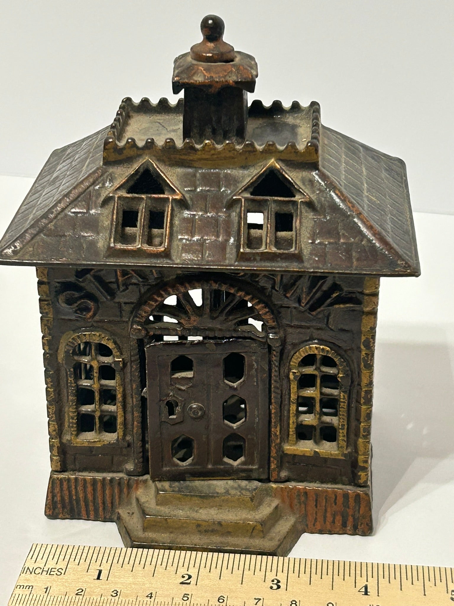 ANTIQUE STATE BANK BUILDING IRON BANK 6" TALL X 4 1/2' WIDE. CALL OR TEXT FOR MORE INFORMATION