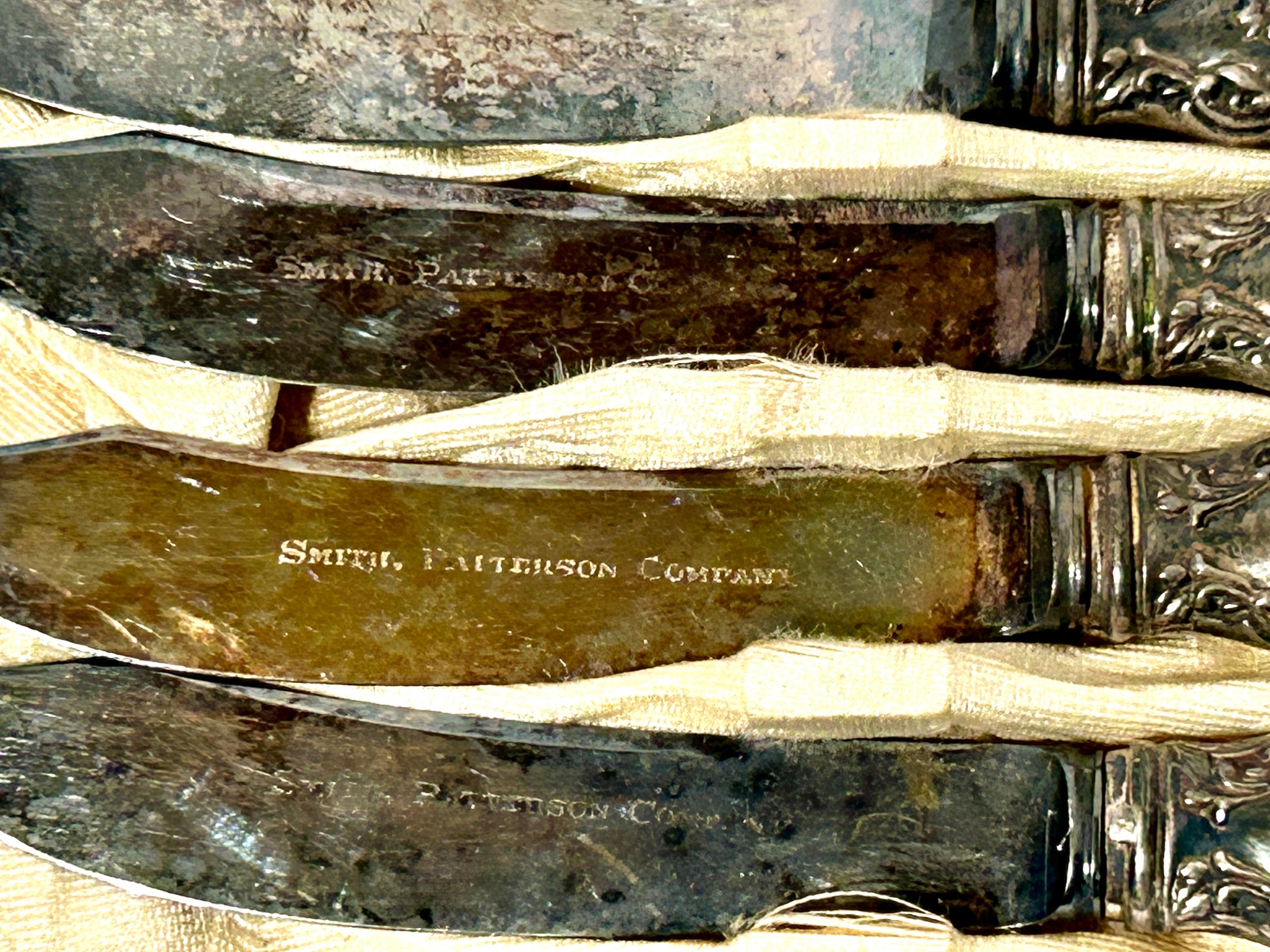 ANTIQUE SET OF SIX STERLING AND MOTHER OF PEARL HANDLE FRUIT KNIVES 6" LONG. SHIPPING IS EXTRA SO CALL OR TEXT TO FIND OUT HOW MUCH SHIPPING WILL COST