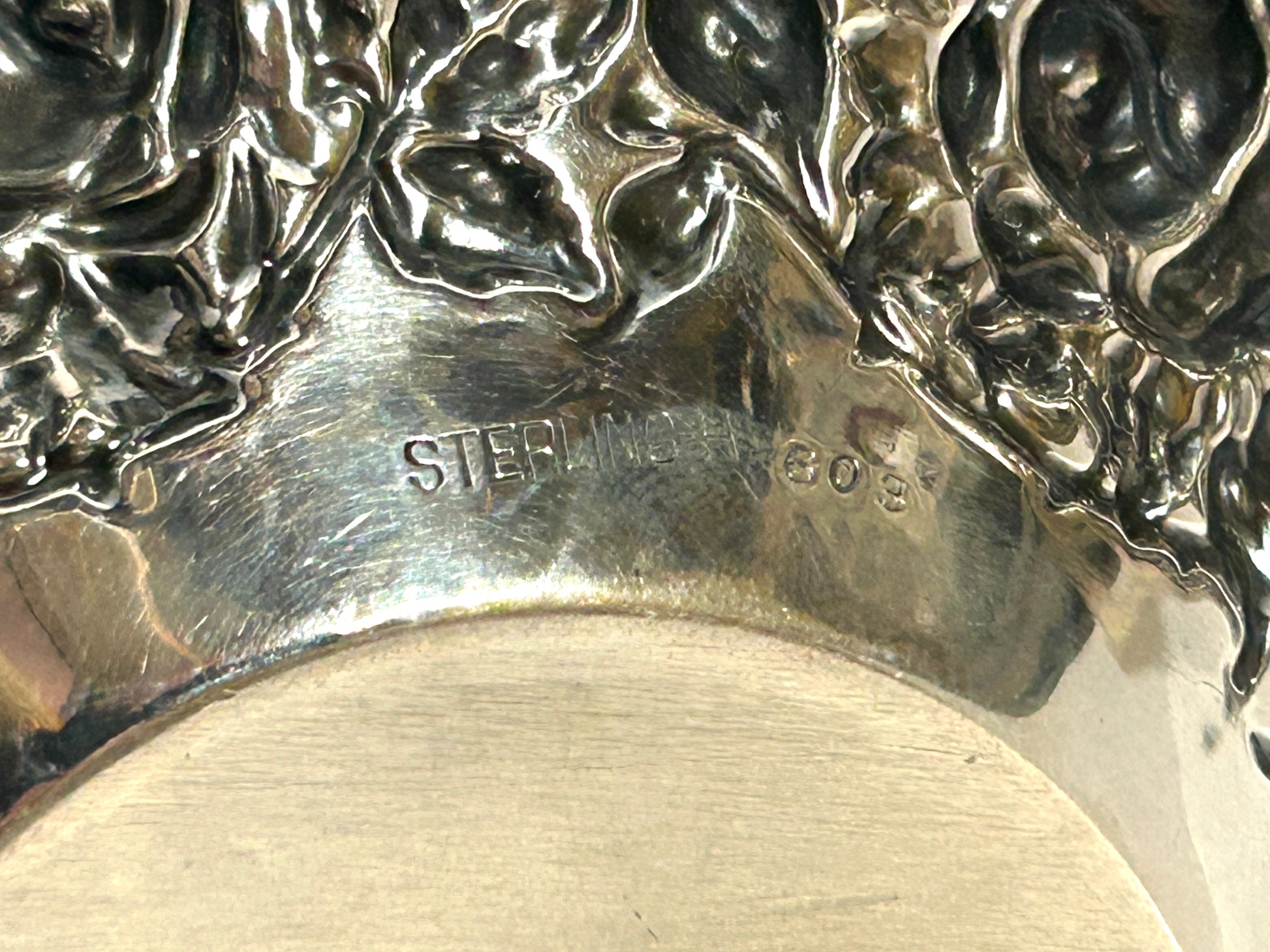 ANTIQUE PAIR OF STERLING BON BON DISHES 5" DIAMETER EACH AND BOTH WEIGH TOTAL OF 99.0 GRAMS. SHIPPING IS EXTRA SO CALL OR TEXT TO FIND OUT WHAT SHIPPING WILL COST TO YOUR LOCATION