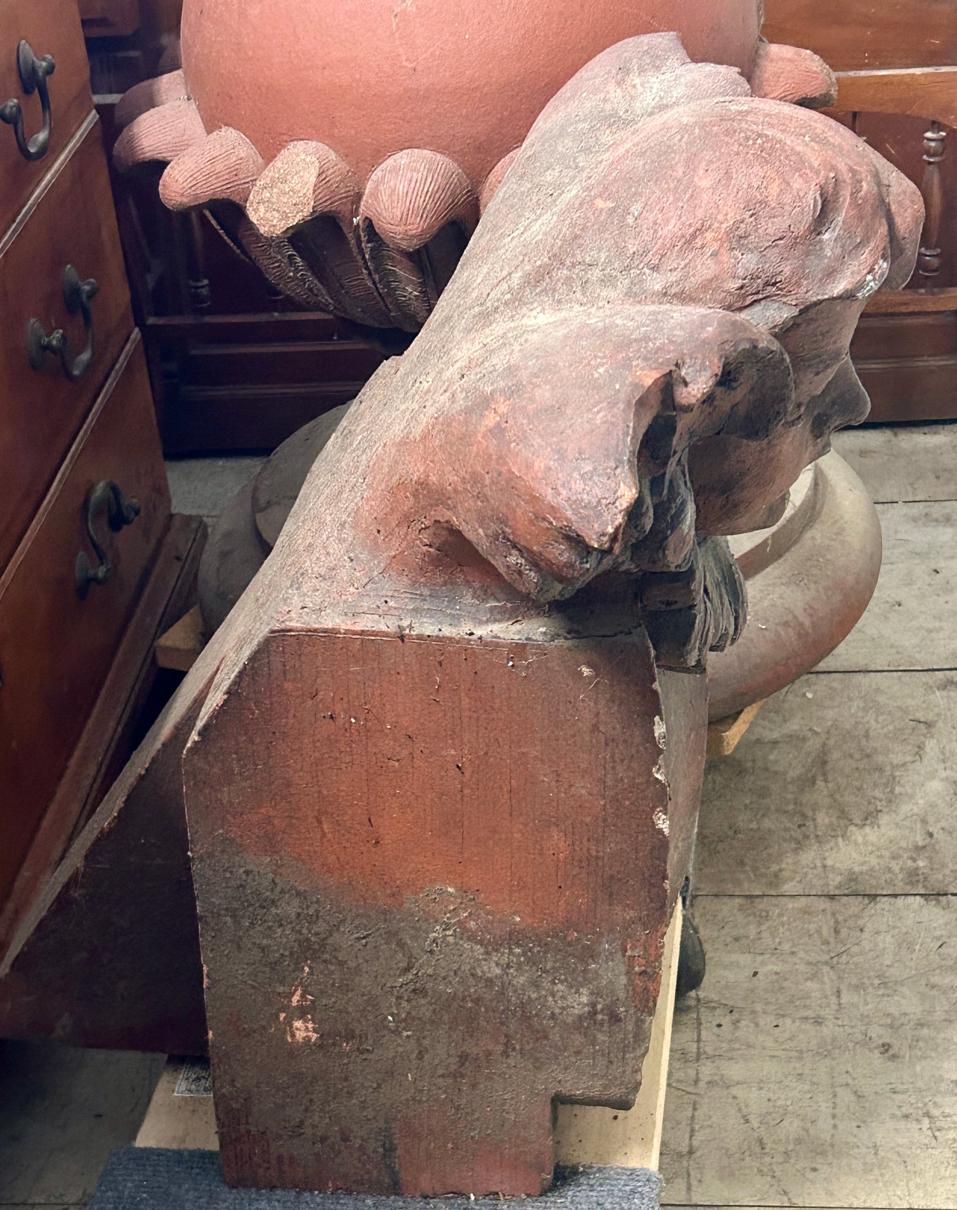 ANTIQUE TERRA COTTA CHERUB FROM EARLY LINCOLN NEBRASKA DOWNTOWN BUILDING 23" TALL X 23" WIDE X 22" DEEP. CALL OR TEXT TRIPLE A ANTIQUES FOR A SHIPPING COST BEFORE YOU PURCHASE THIS ITEM