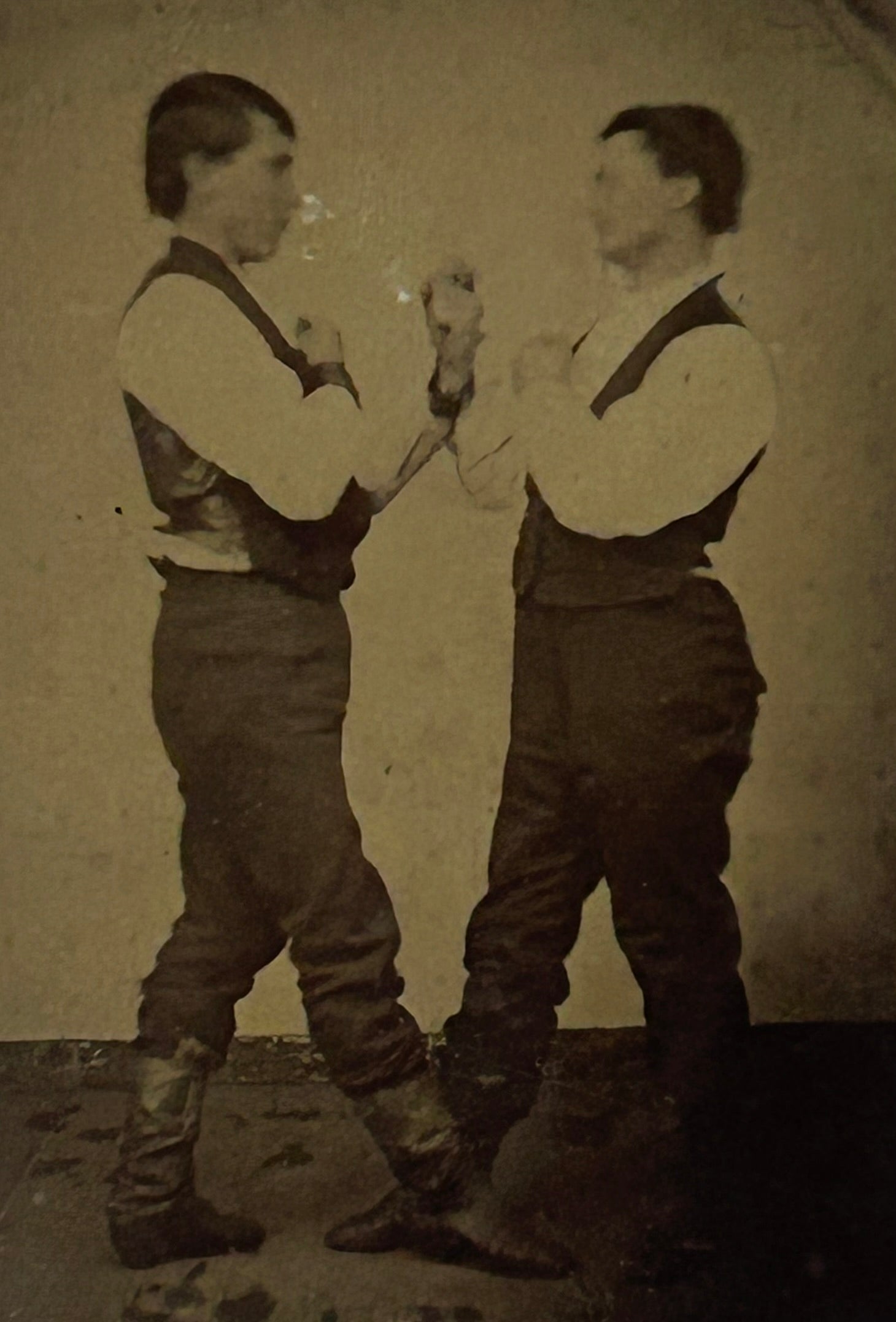 ANTIQUE TINTYPE OF PAIR OF BOXERS