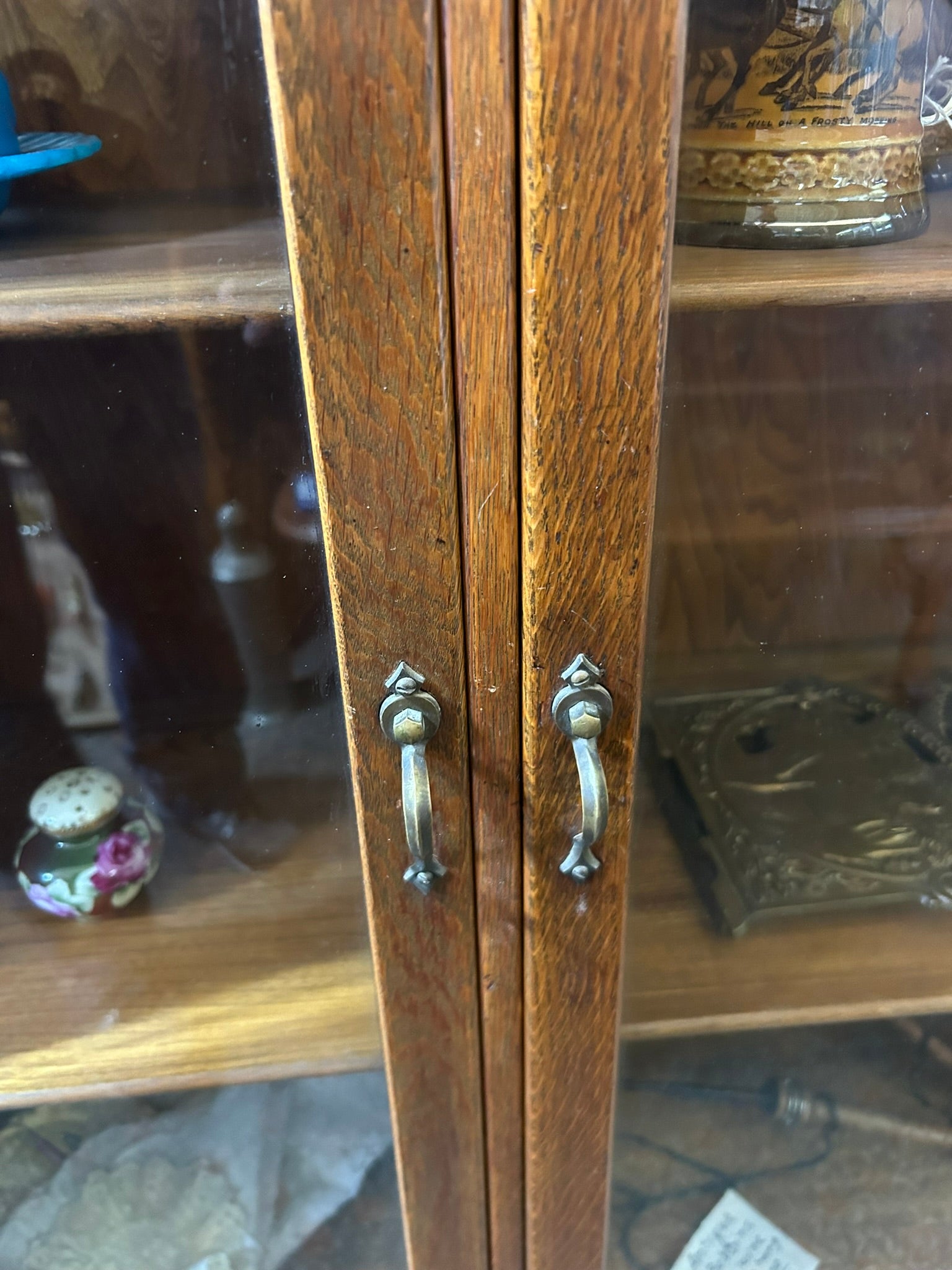 ANTIQUE TRIPLE WIDE OAK MISSION BOOKCASE 59" WIDE X 50" TALL. CALL OR TEXT FOR MORE INFORMATION