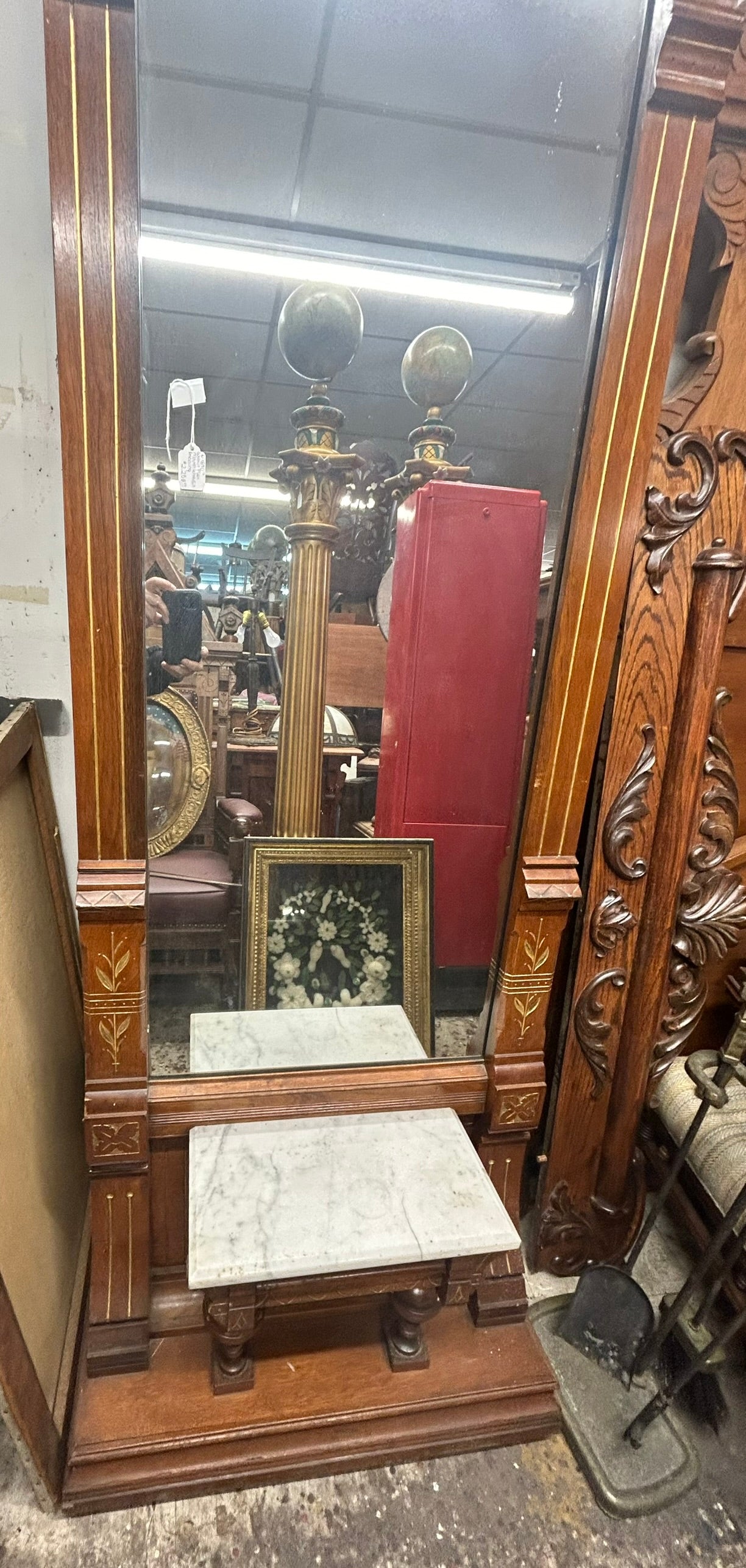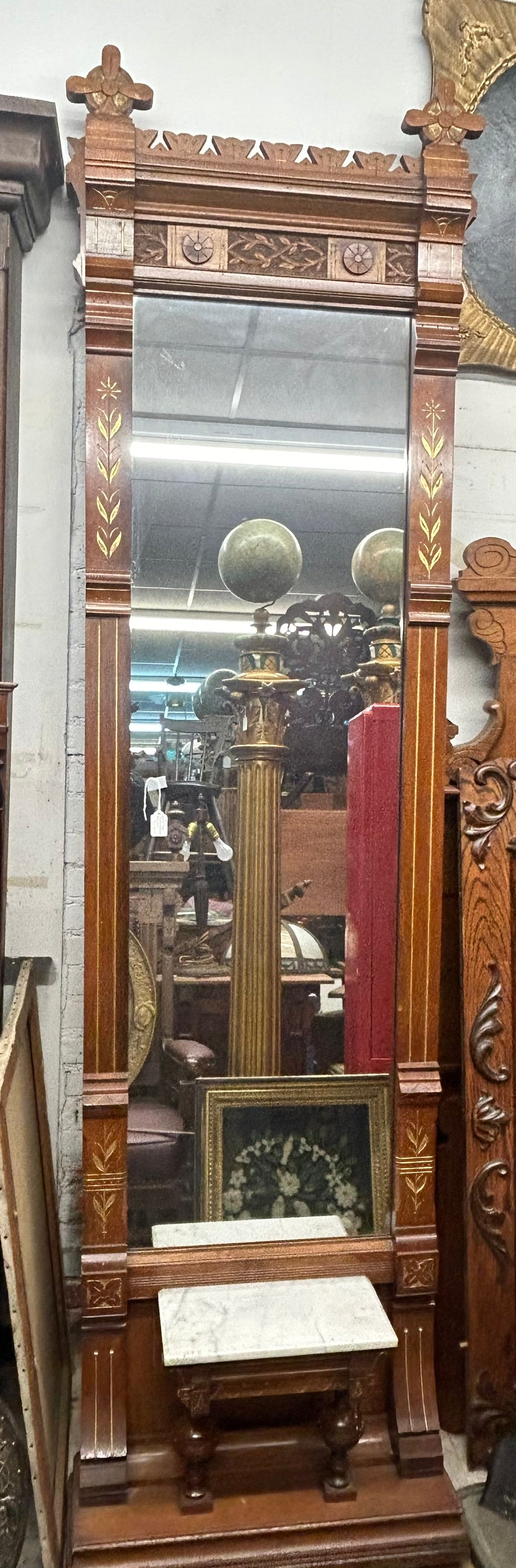 ANTIQUE WALNUT VICTORIAN WALL PIER MIRROR WITH MARBLE SHELF 100" TALL X 24" WIDE. CALL, TEXT, OR E-MAIL FOR MORE INFORMATION