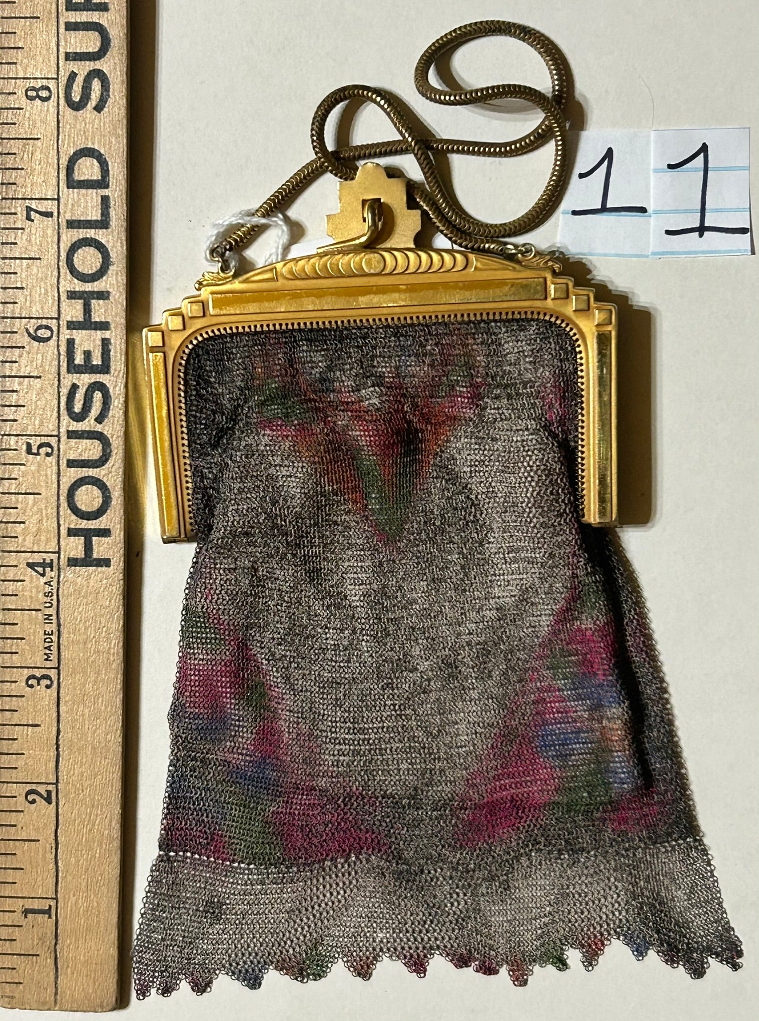 ANTIQUE WHITING AND DAVIS FINE MESH ENAMELED PURSE WITH DECO FRAME. CALL OR TEXT FOR MORE INFORMATION