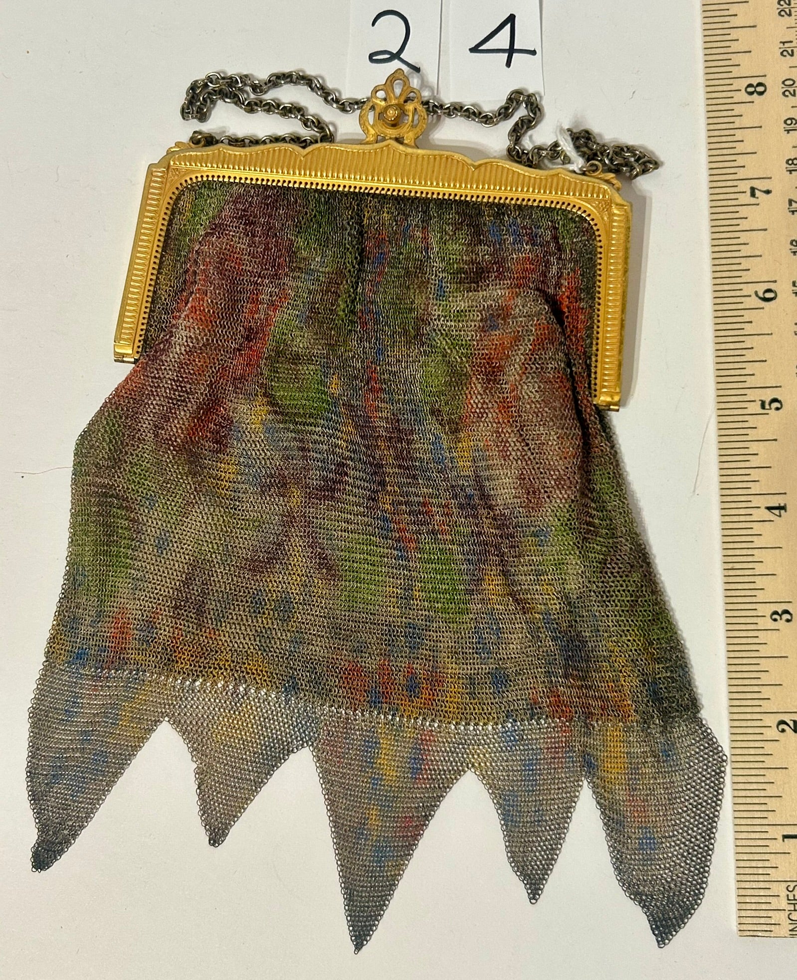 ANTIQUE WHITING & DAVIS FINE MESH FLORAL PURSE