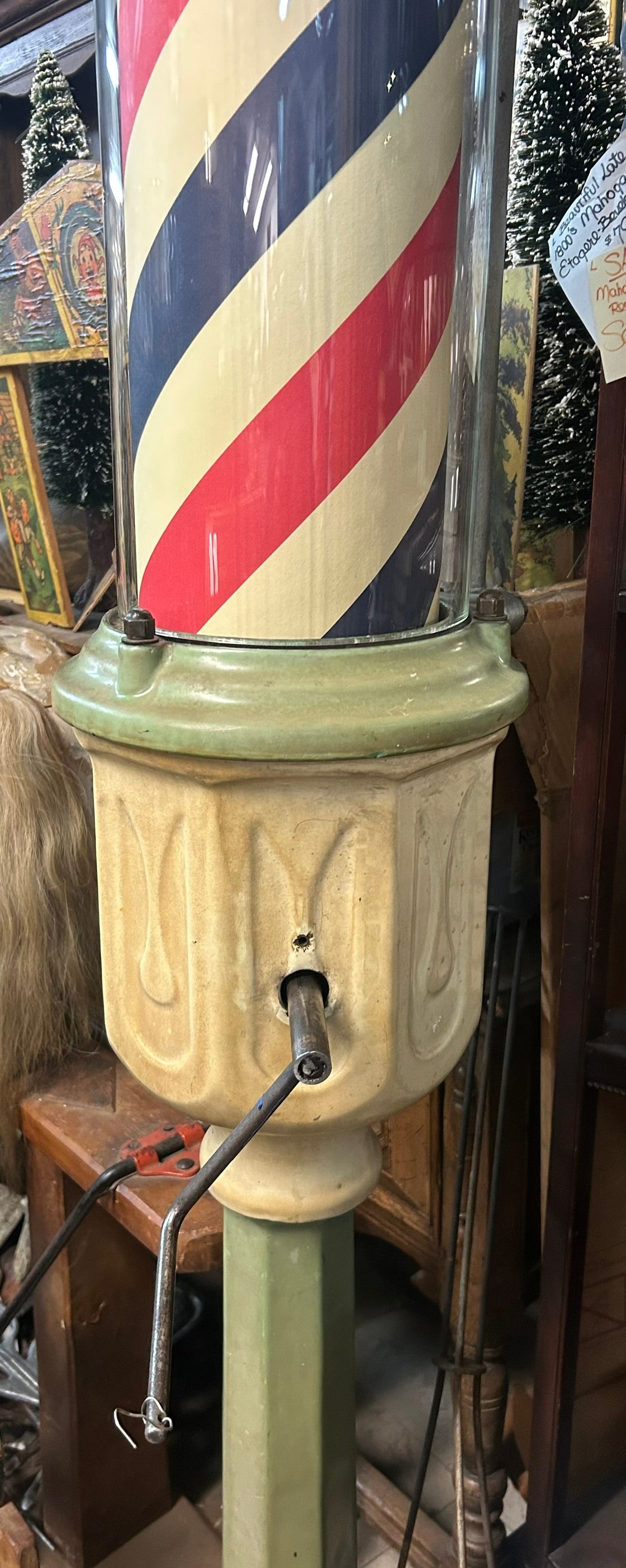 ANTIQUE WIND UP FLOOR MODEL BARBER POLE