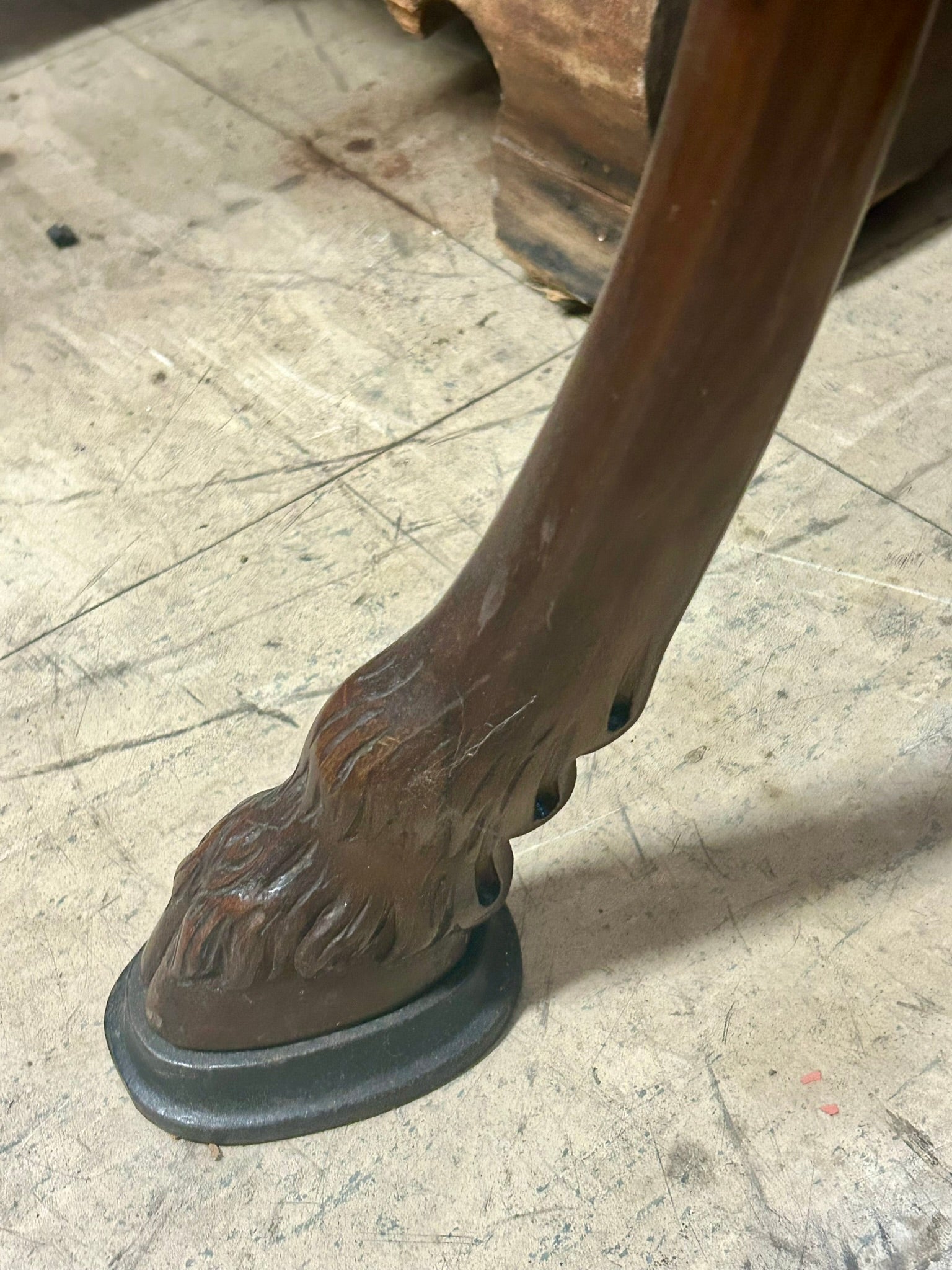 ANTIQUE WOOD STAND WITH RAM'S HEADS AND HOOF FEET 51" TALL. CALL, TEXT, OR E-MAIL FOR MORE INFORMATION