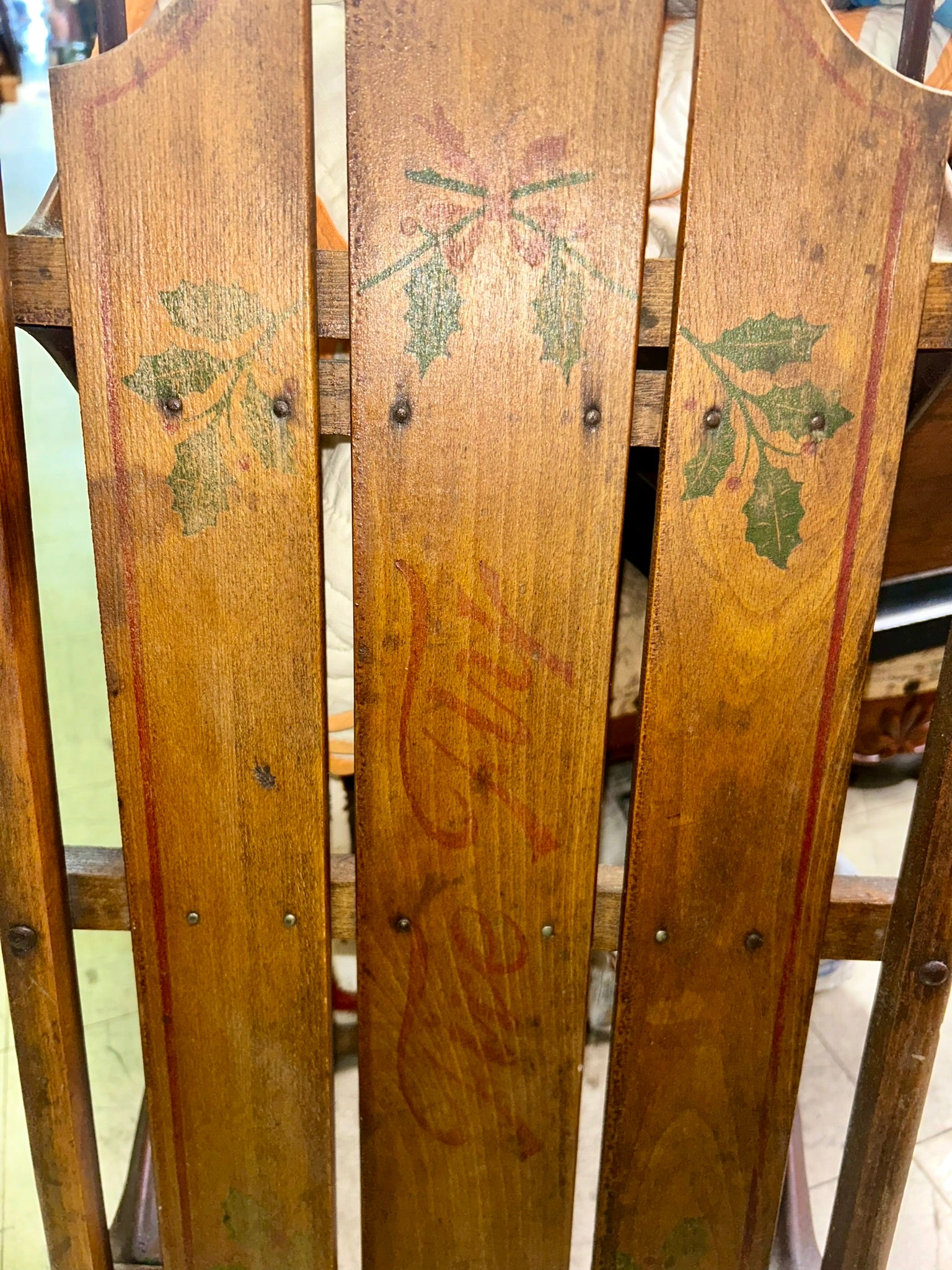 ANTIQUE WOODEN CHILDS "FIEW FLY" SLED DECORATED WITH BERRIES 40" LONG. CALL OR TEXT FOR MORE INFORMATIOM