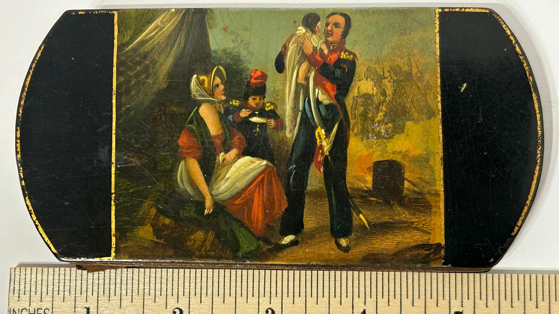 ANTIQUE HAND PAINTED FRENCH CIGAR SPECTACLE PAPER MACHE CASE. CALL OR TEXT FOR MORE INFORMATION