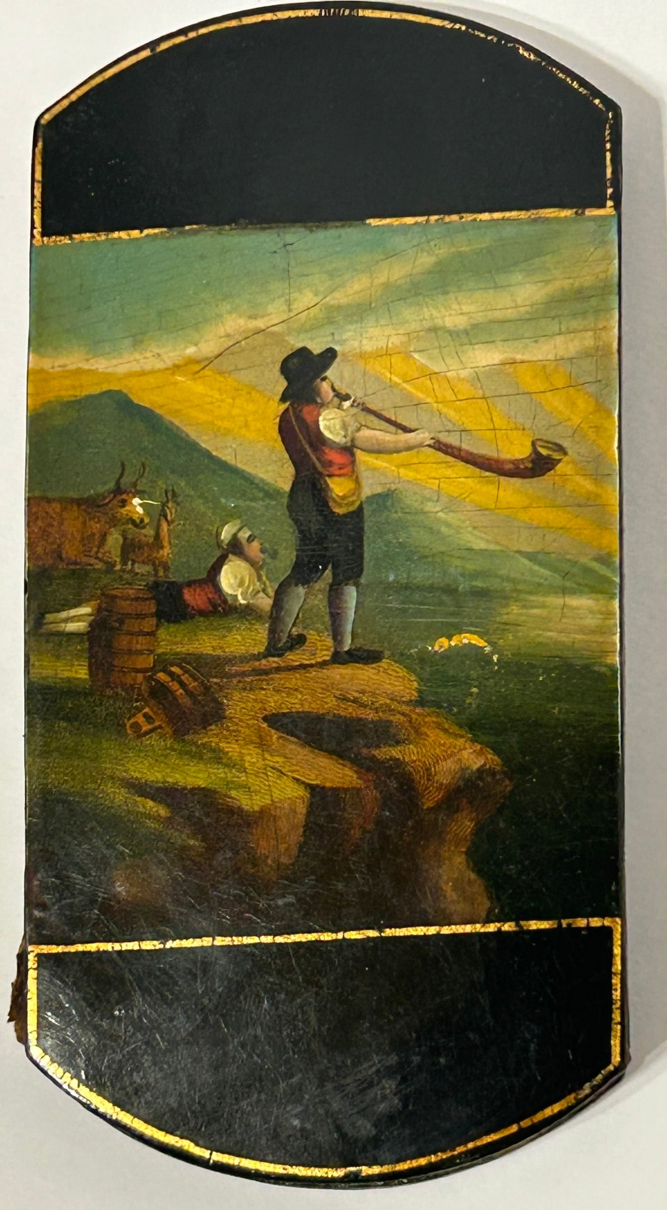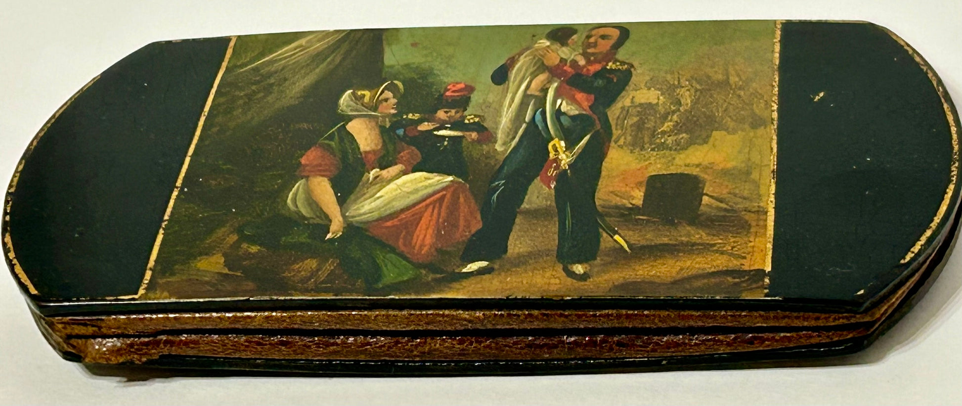 ANTIQUE FRENCH CIGAR SPECTACLE PAPER MACHE CASE HAND PAINTED
